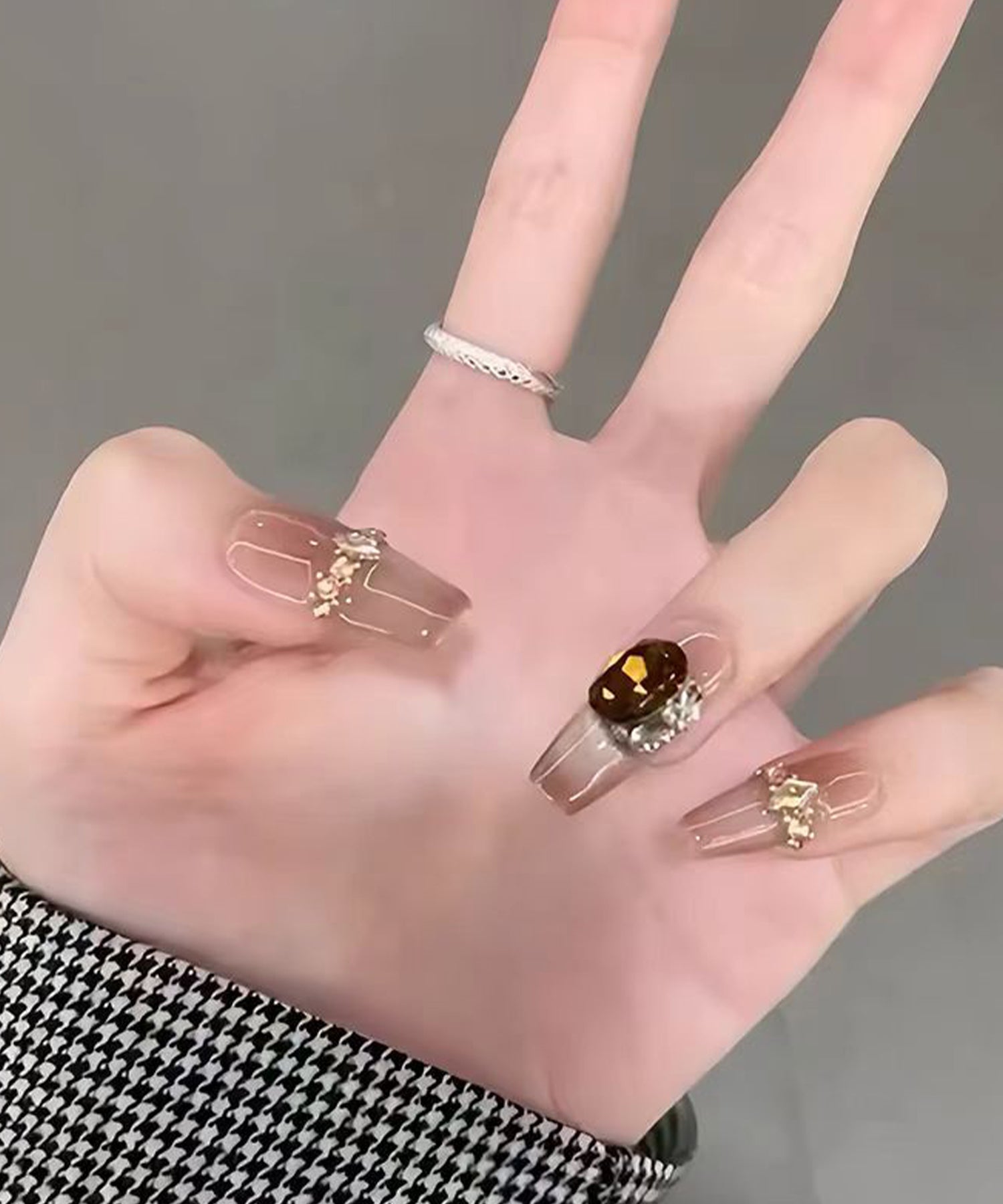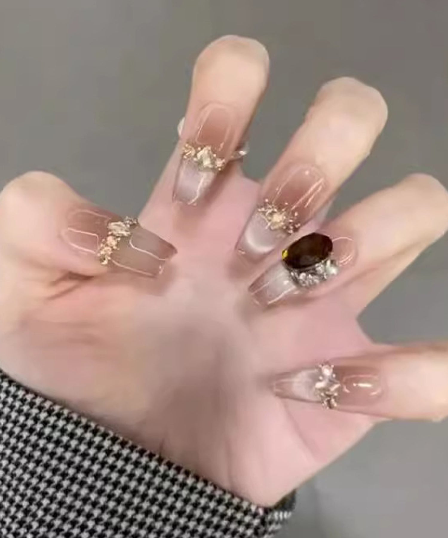 きらめくビジューが目を引くネイルチップ。