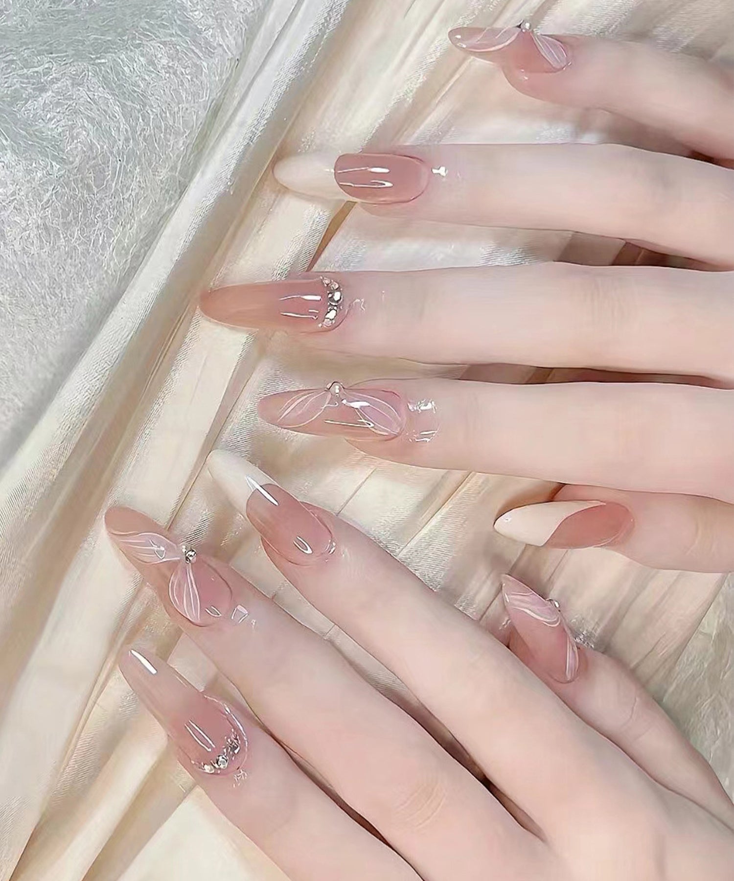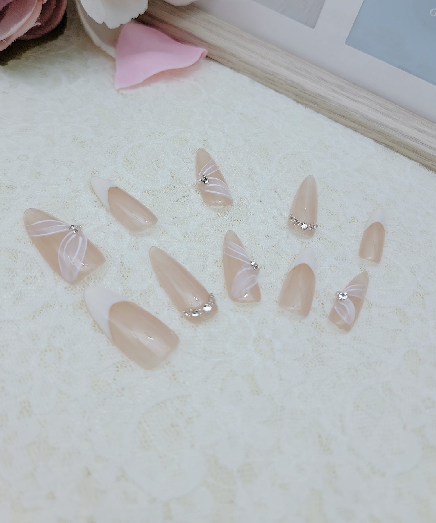 肌馴染みの良いベージュ系カラーをベースに、フレンチデザインをアレンジした使いやすいデザインに仕上げました。