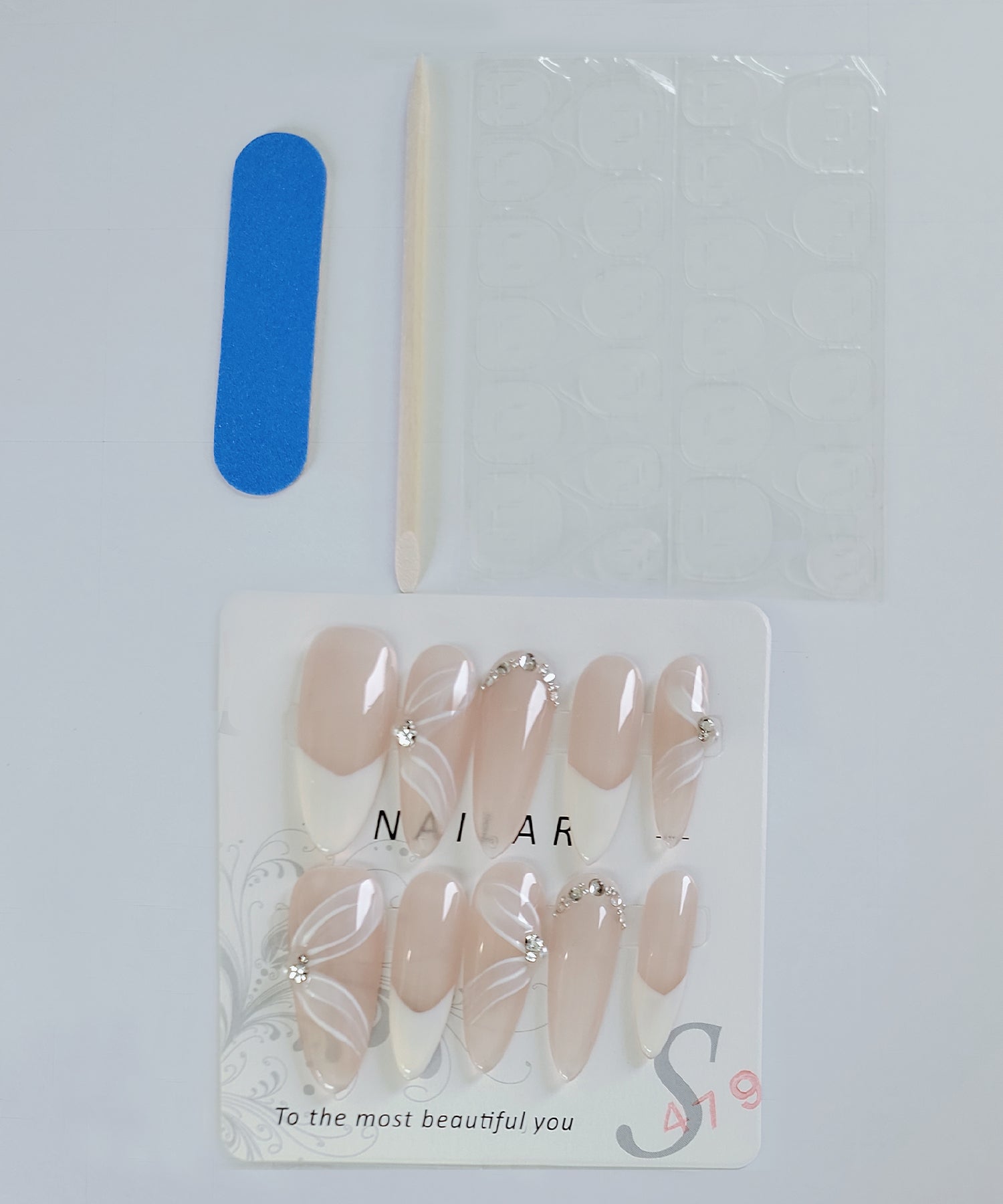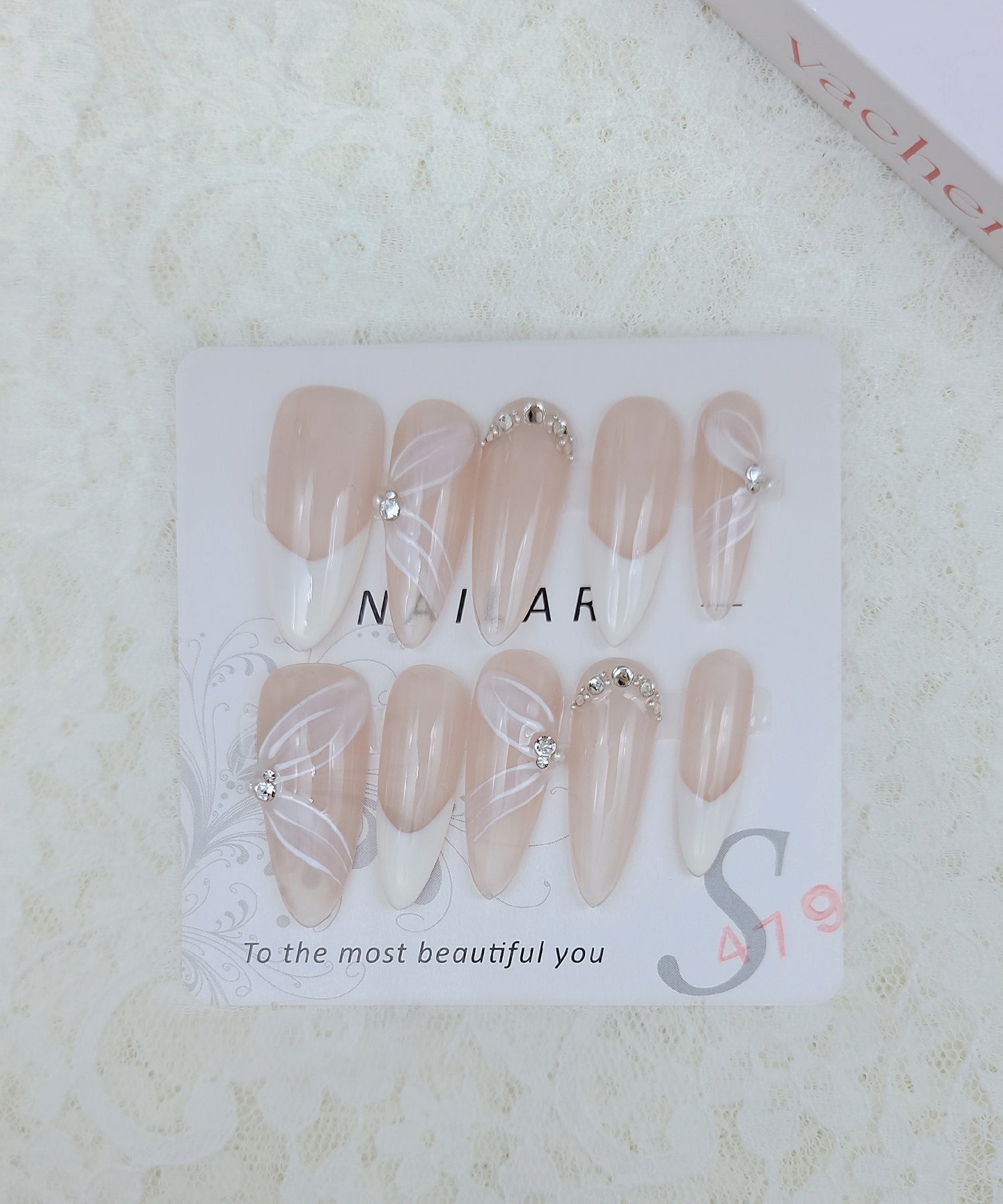 フラワー ペタル ビジュー付き フレンチ ネイルチップ