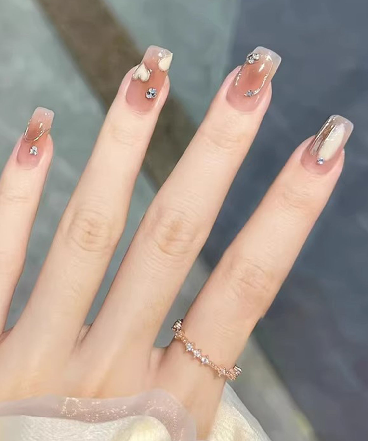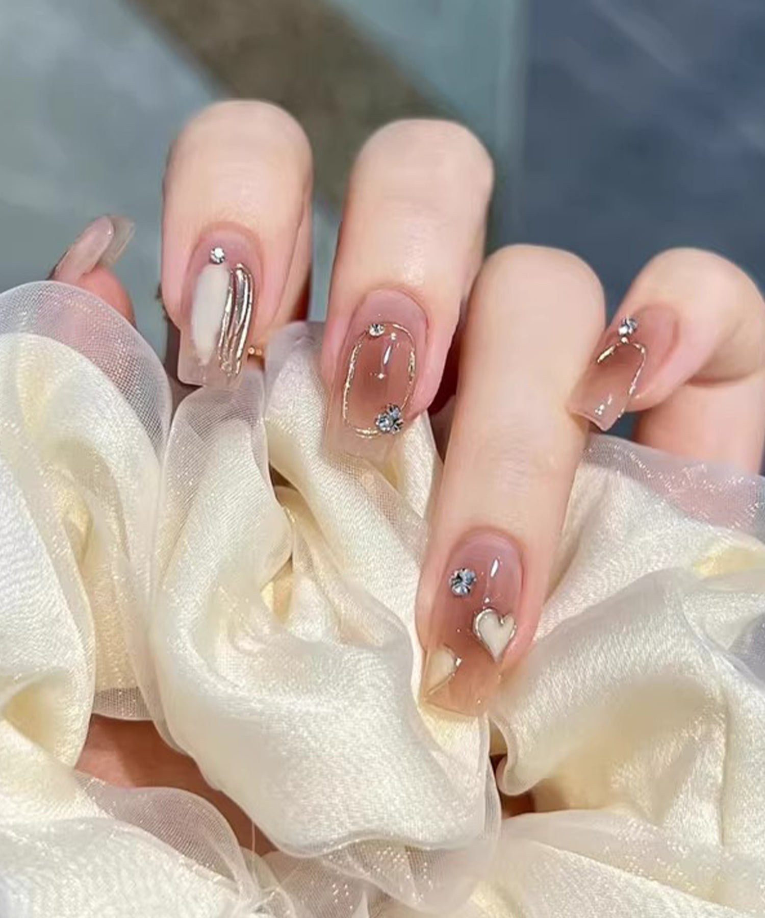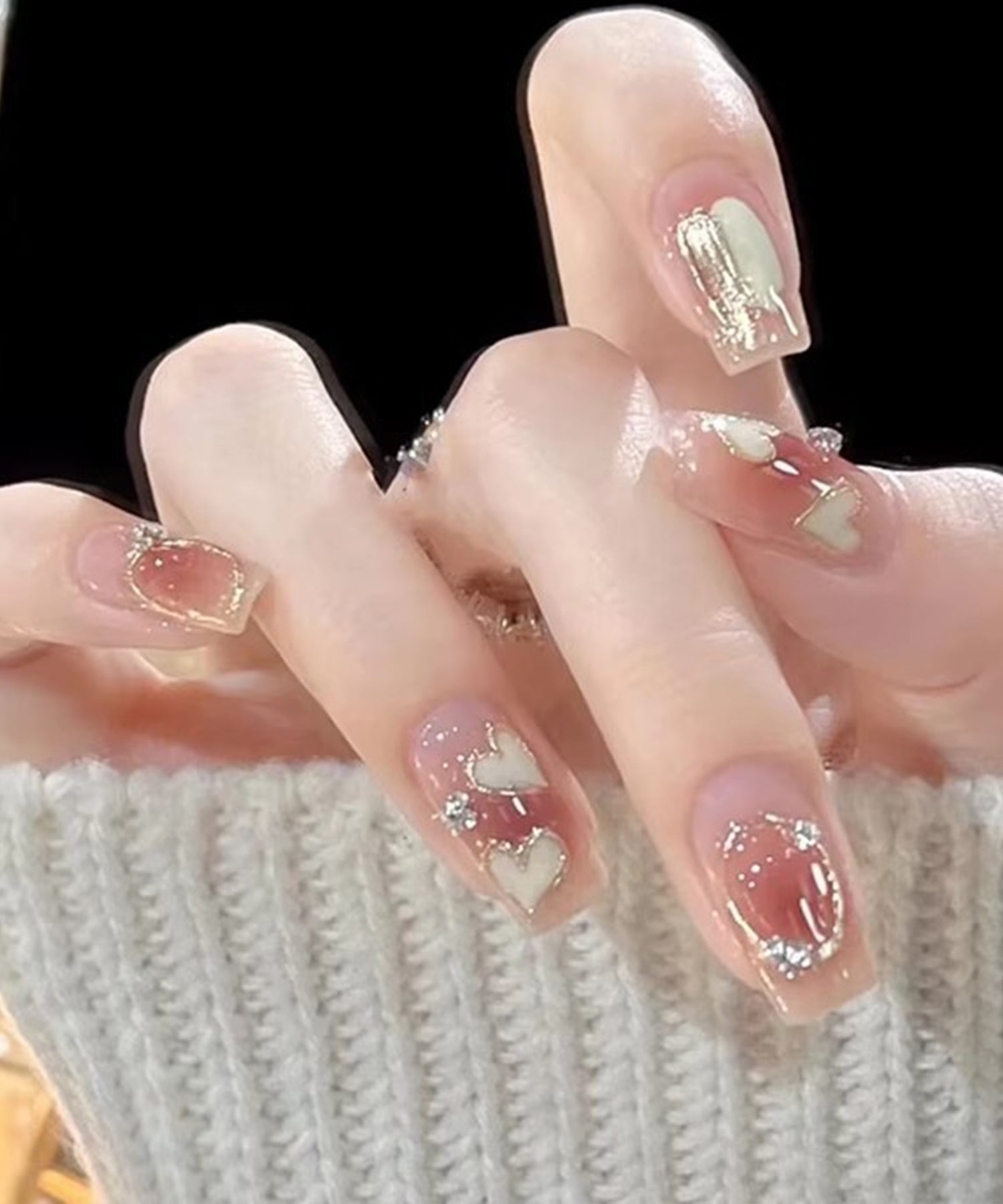 ハート柄 バラエティ フレンチ スクエア ネイルチップ
