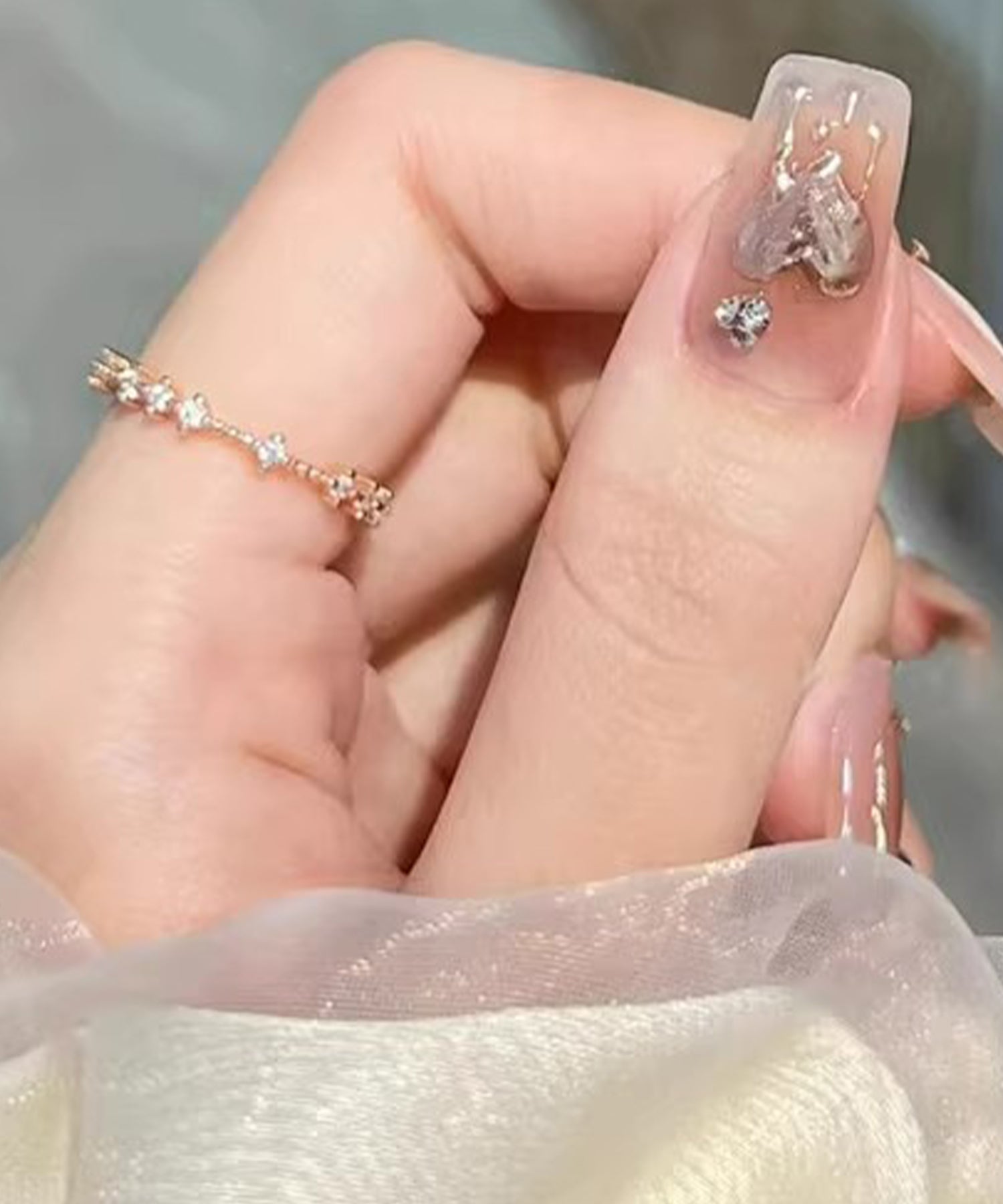 さりげなくあしらったビジューは、手元を動かすたびに華やかなきらめきを演出してくれます。