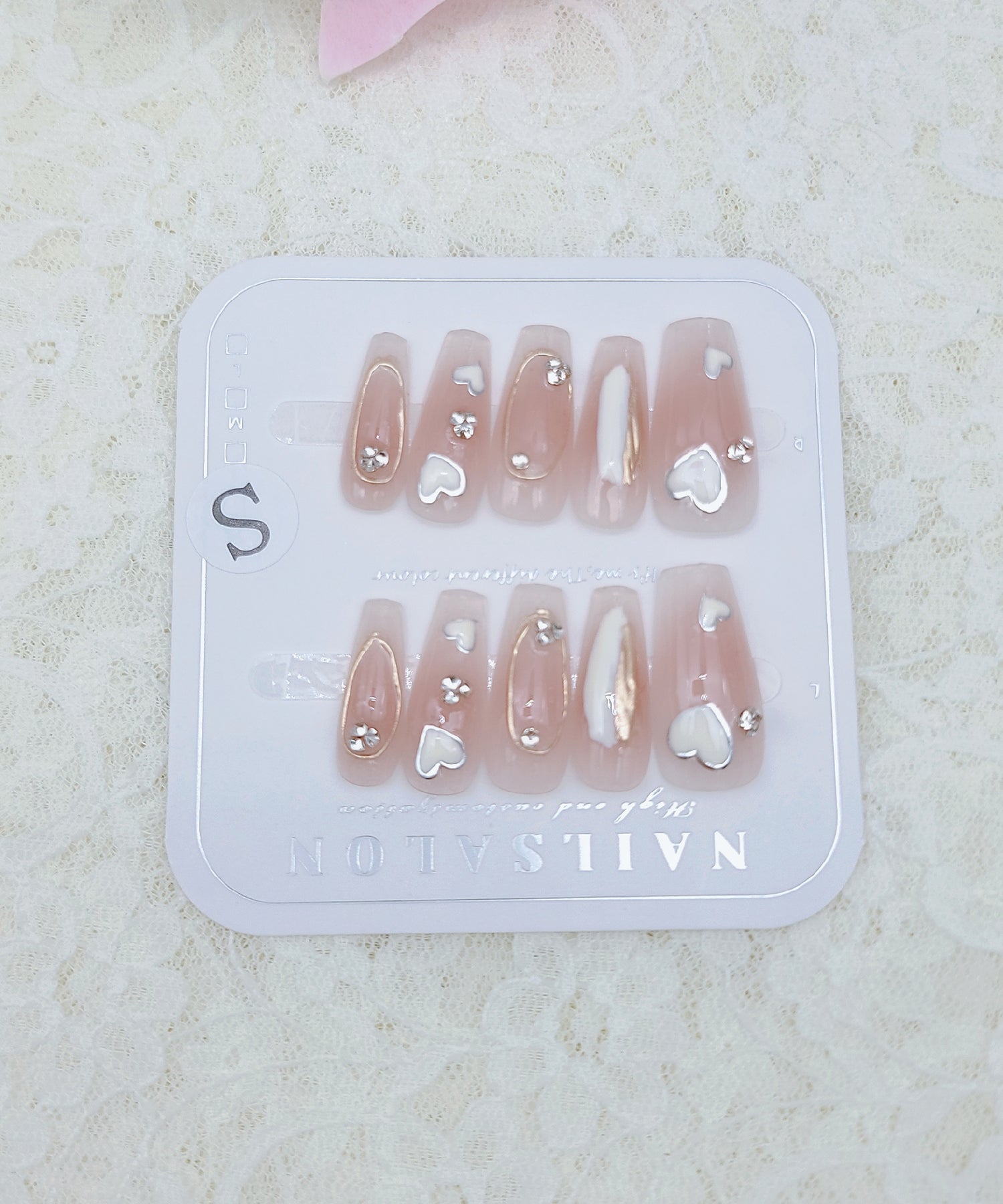 キュートなハートモチーフをメインに、ペイントを添えてバラエティ豊かなデザインでおつくりしたネイルチップ。