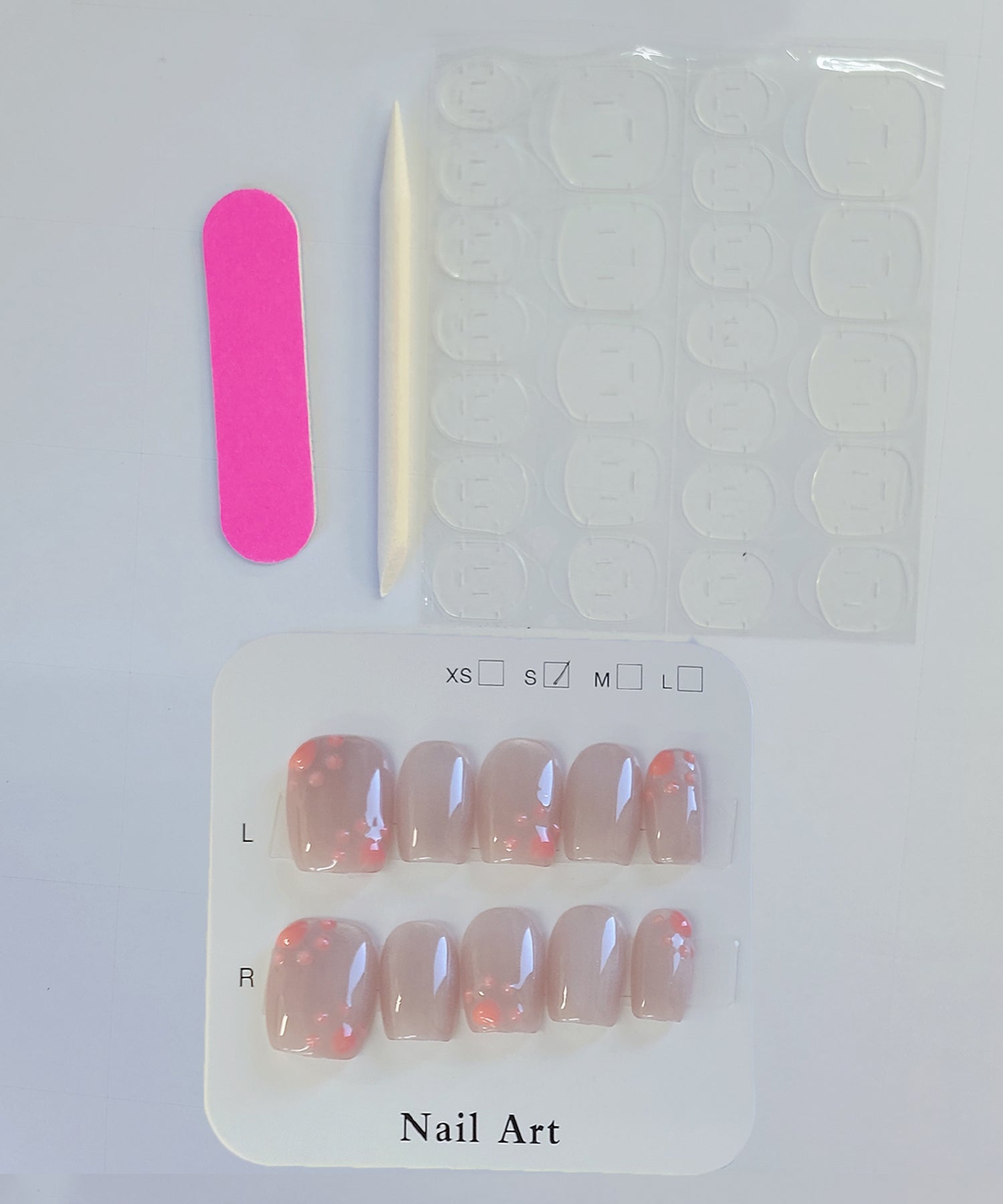 ②粘着グミタイプ:適切なサイズの粘着グミを爪に貼り、表面フィルムを剥がす