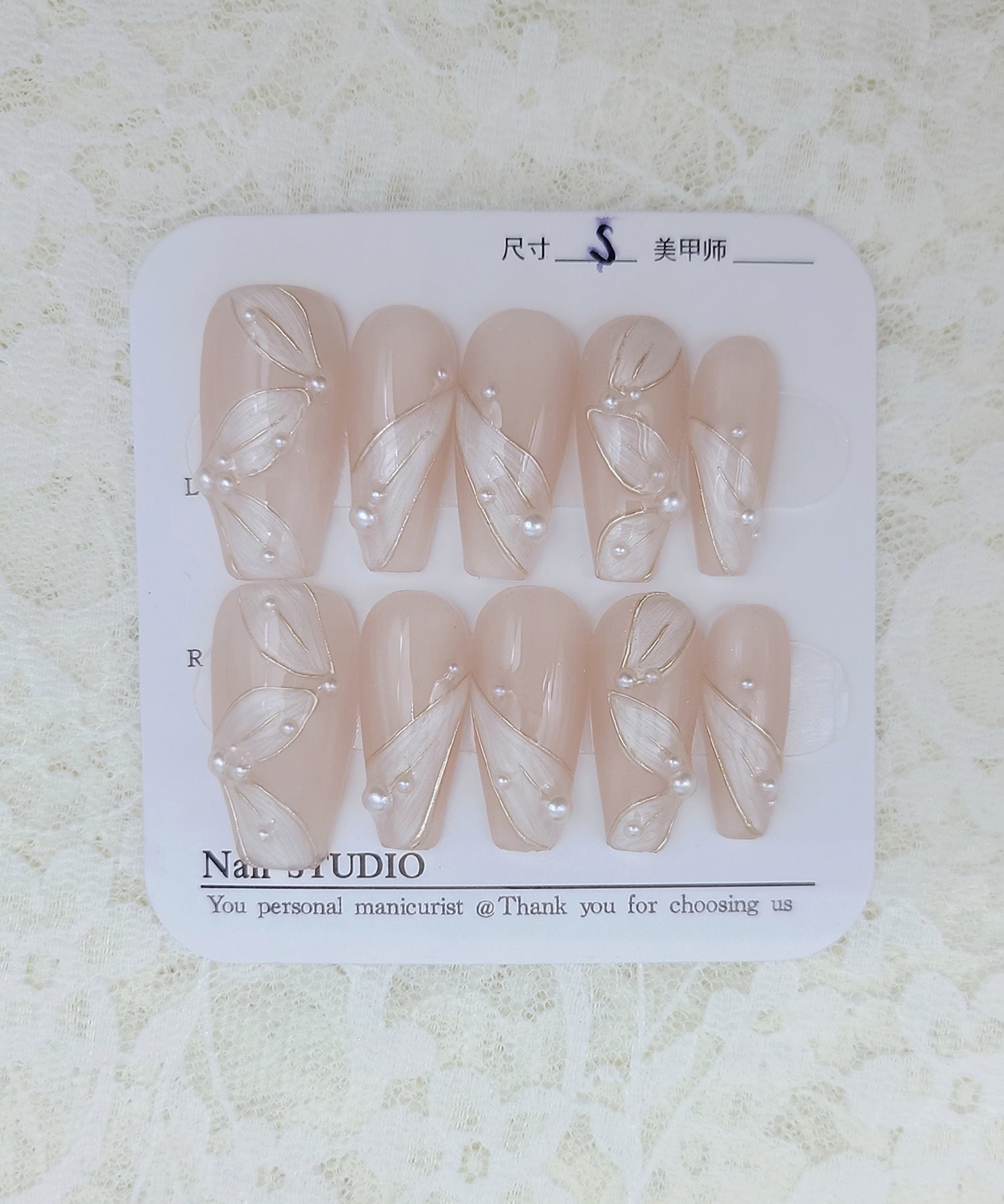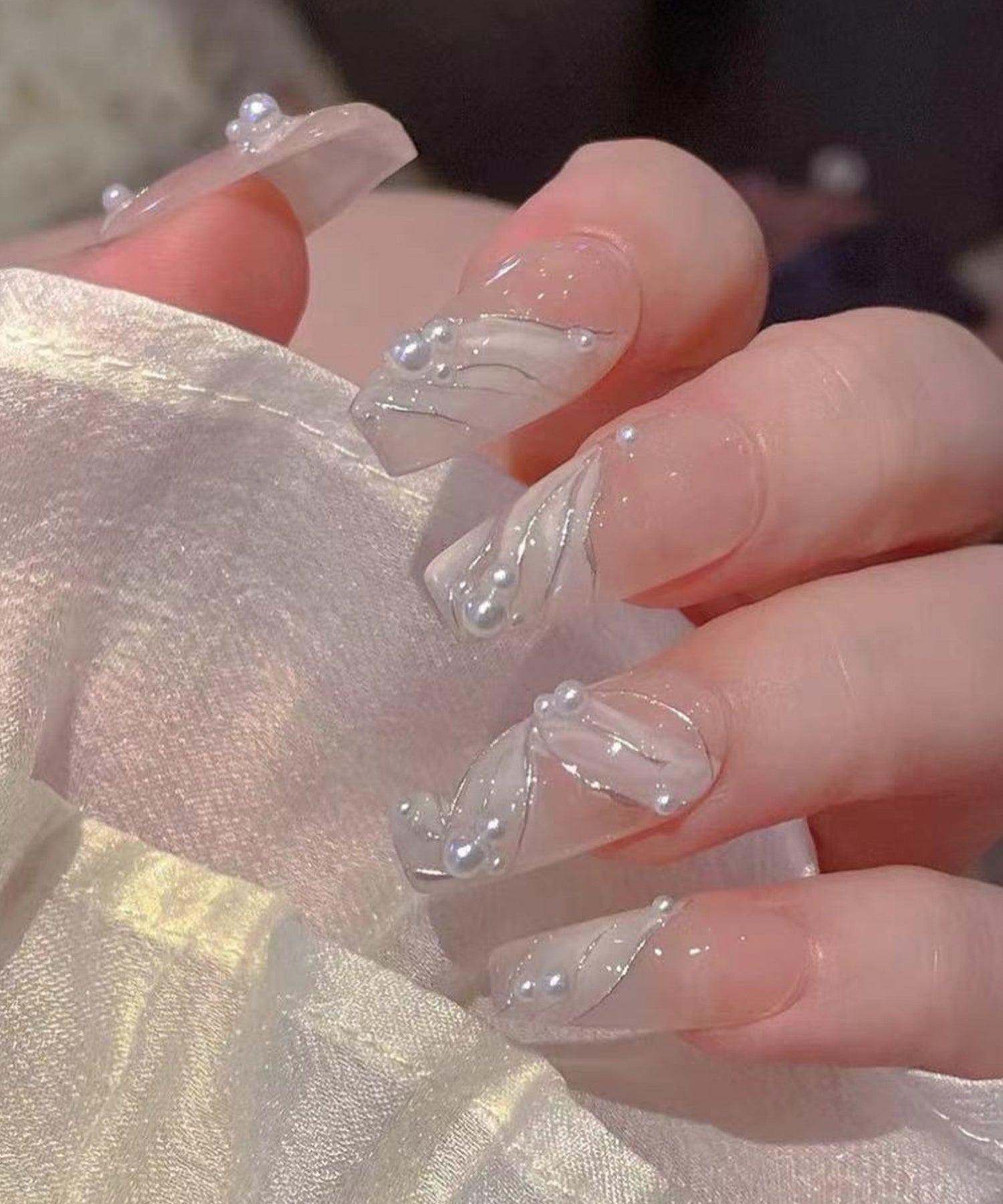 アクセントには小粒のパールを散らし、華やかな印象に。