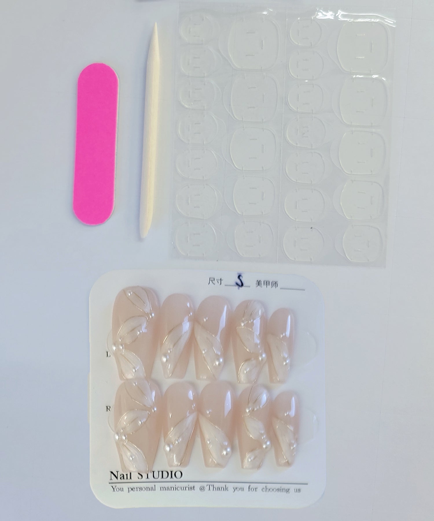 ②粘着グミタイプ:適切なサイズの粘着グミを爪に貼り、表面フィルムを剥がす