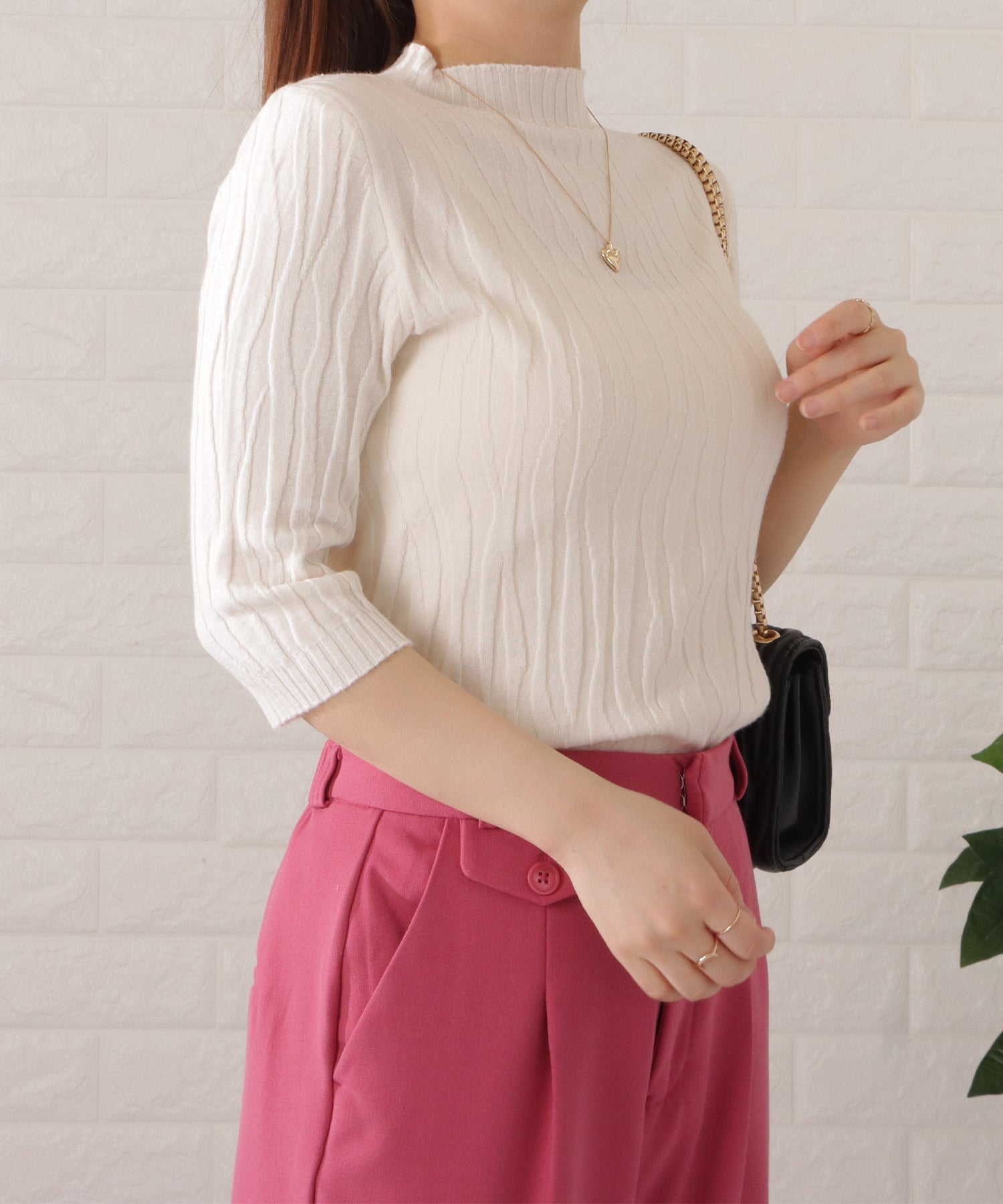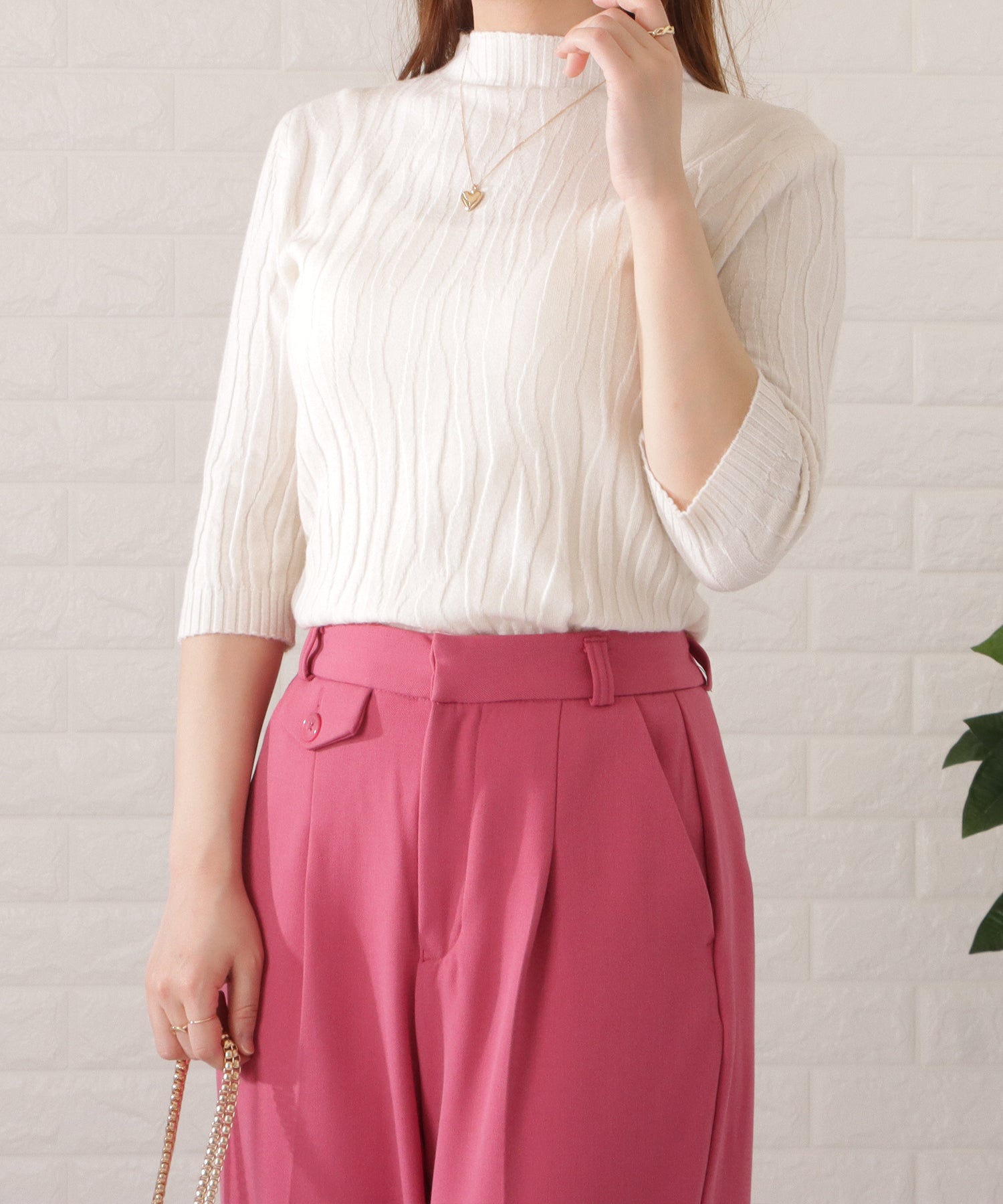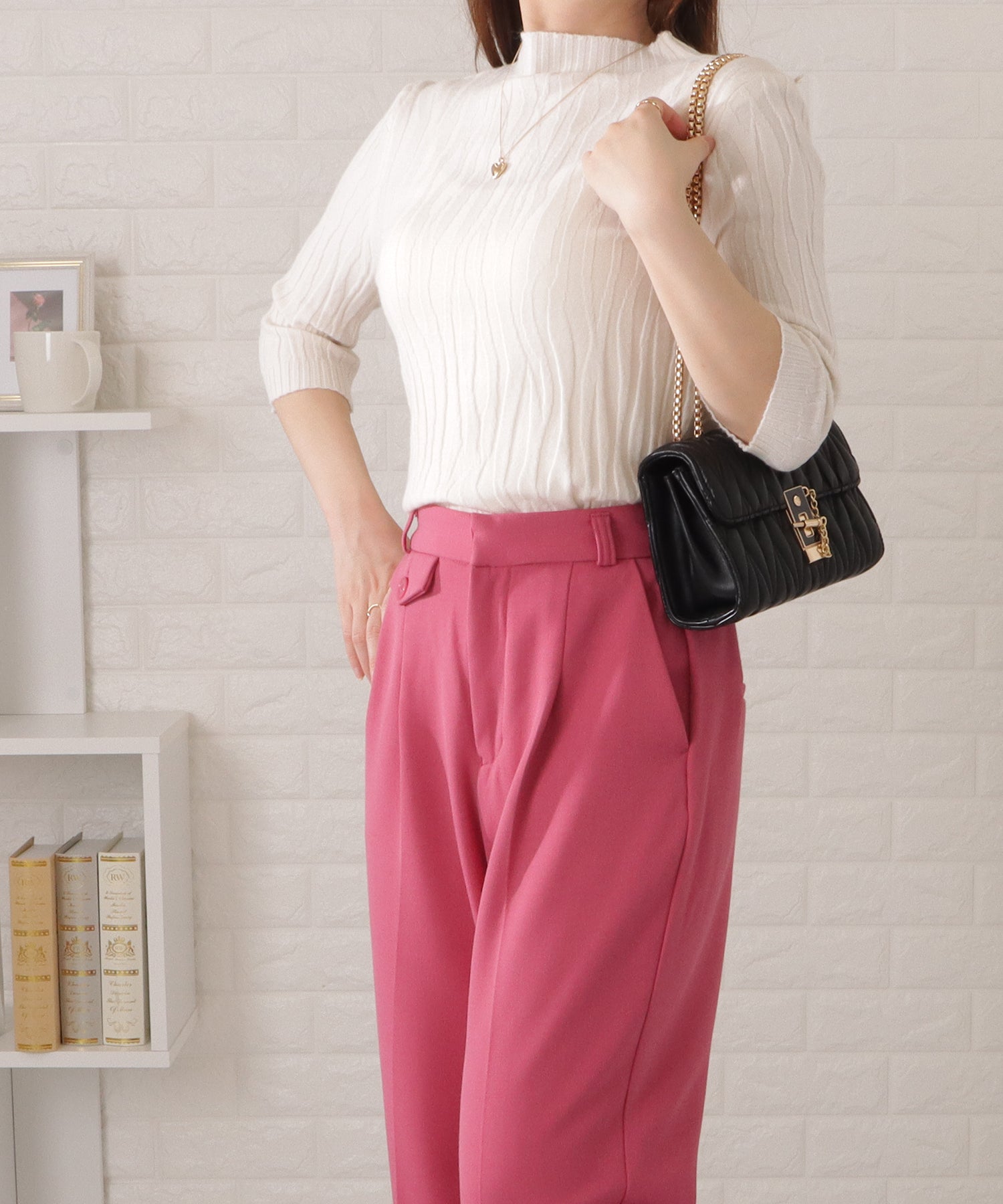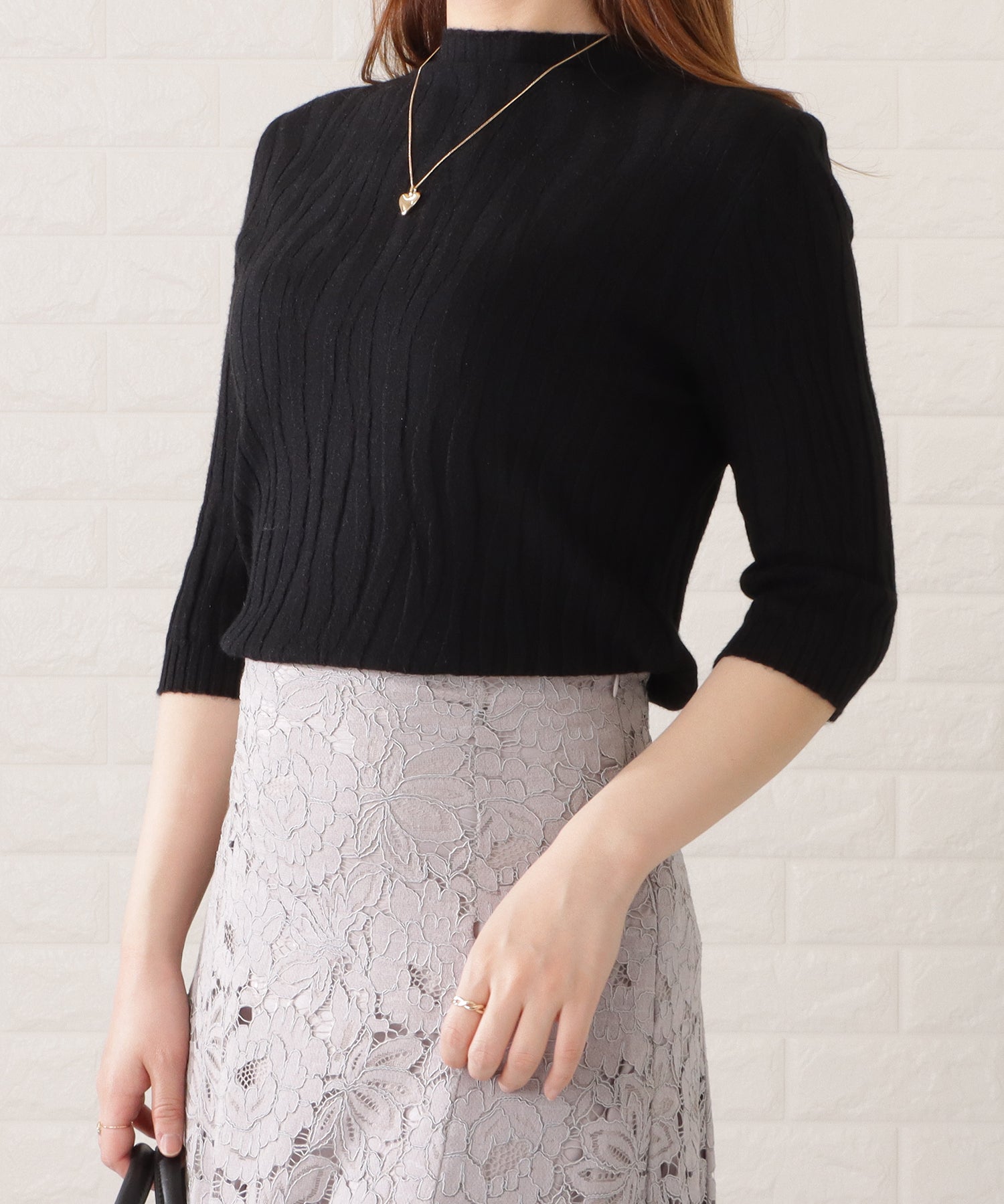 トレンドのボトルネックで、上品な佇まいに仕上げたニットプルオーバー。