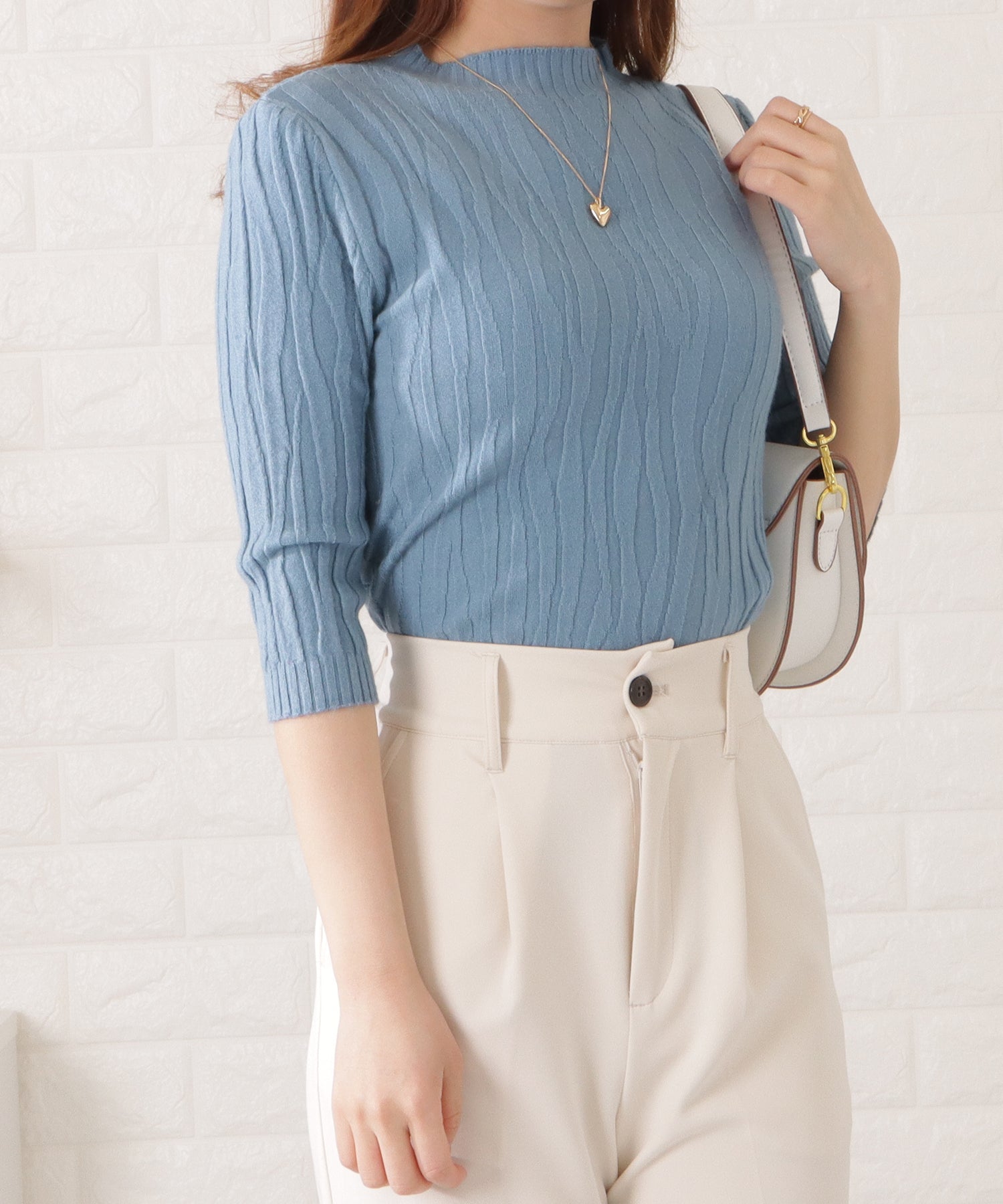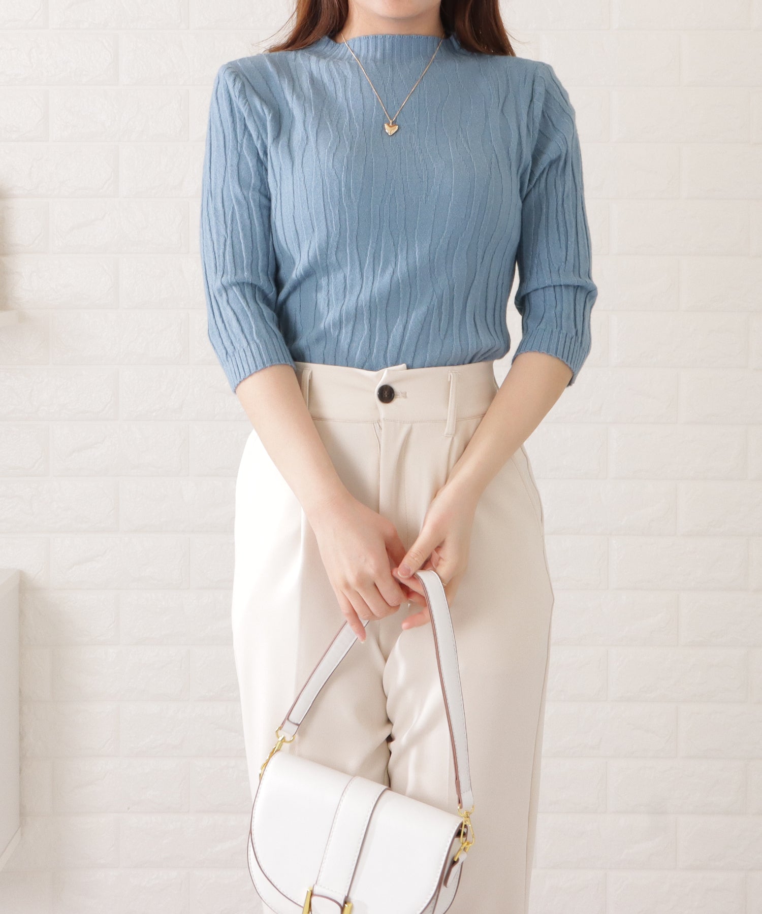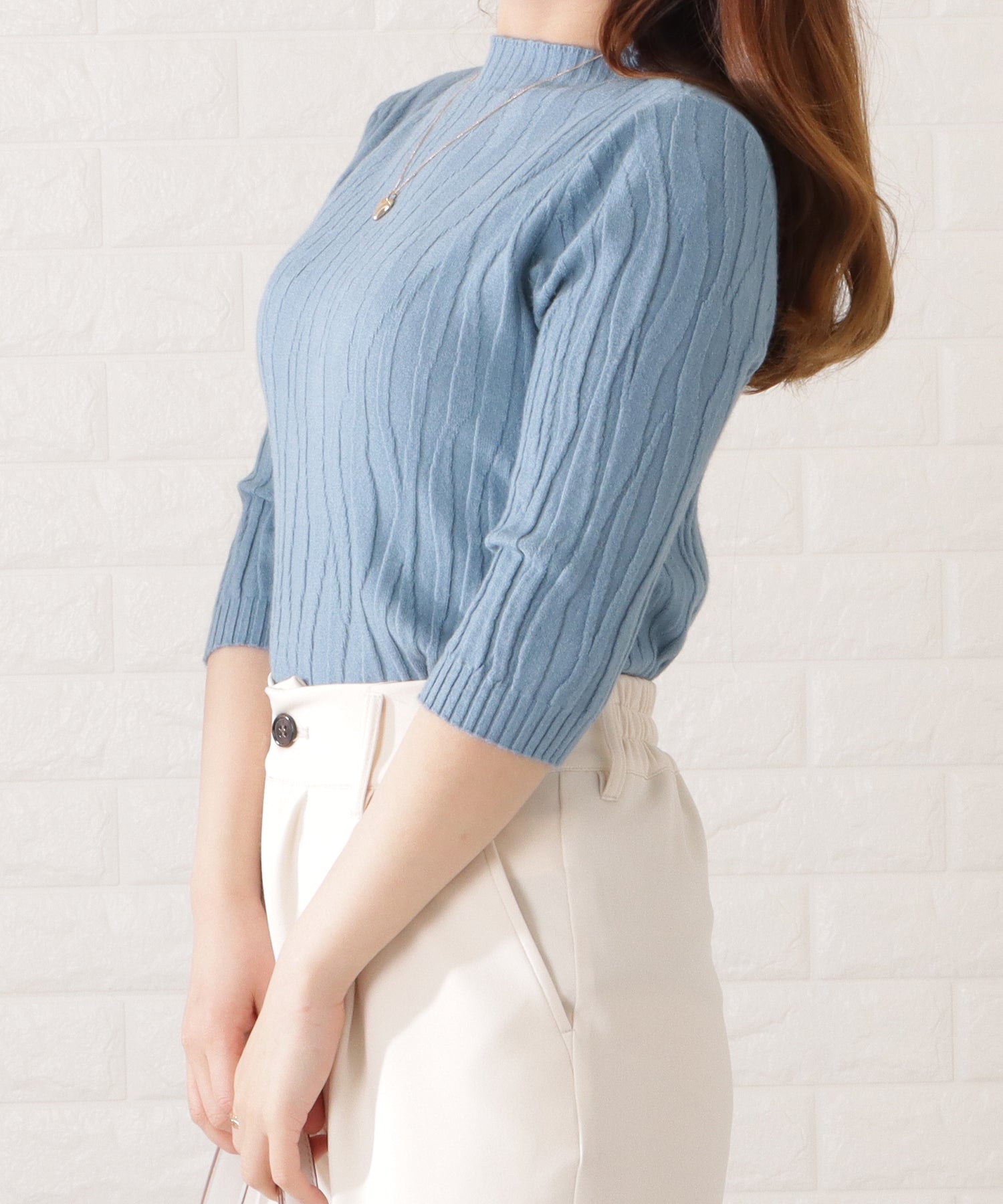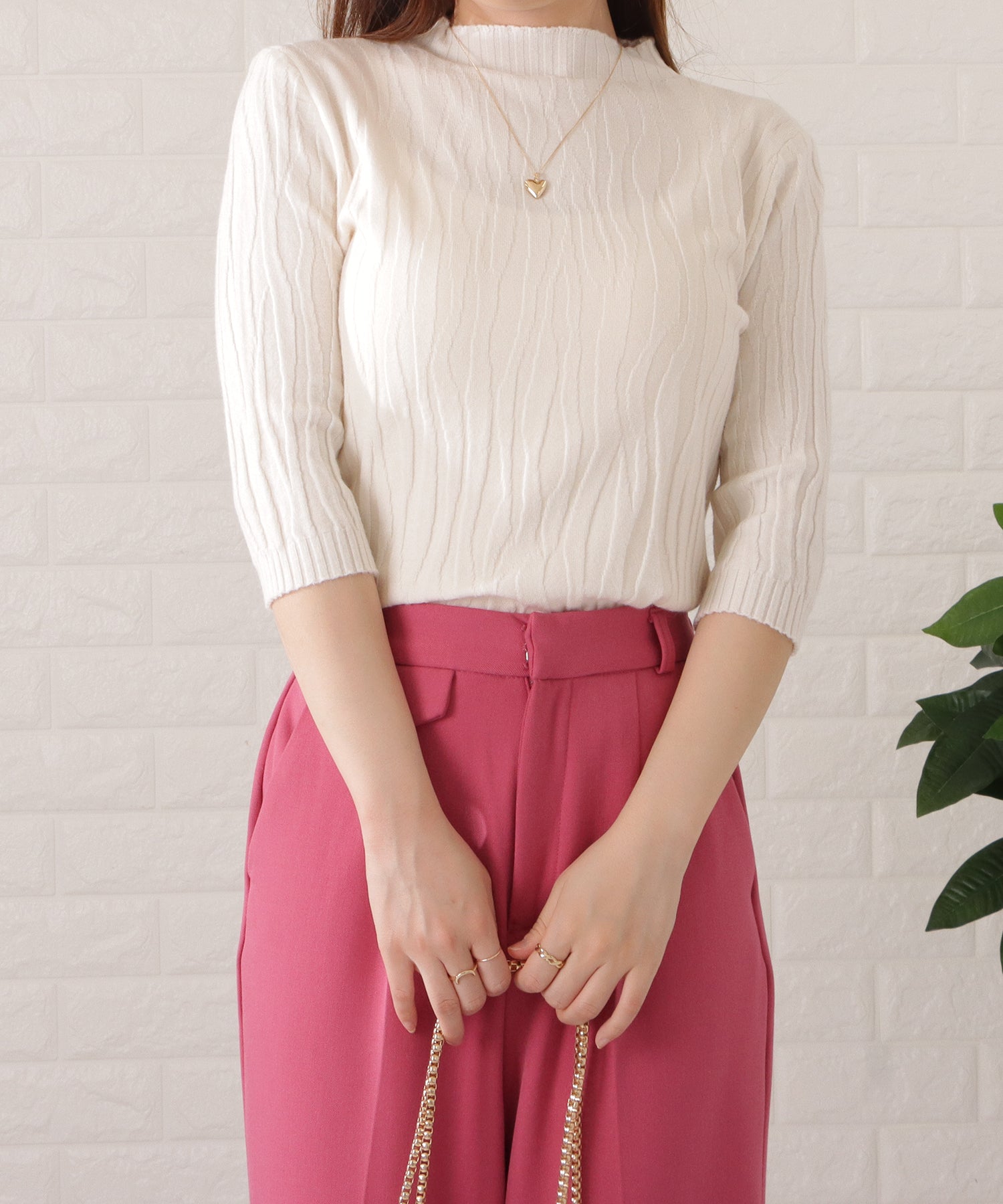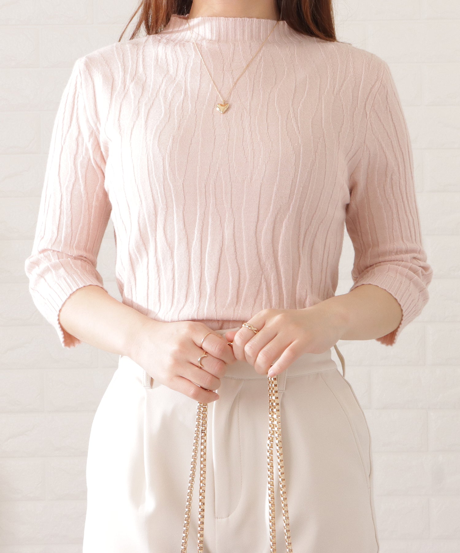 トレンドのボトルネックで、上品な佇まいに仕上げたニットプルオーバー。