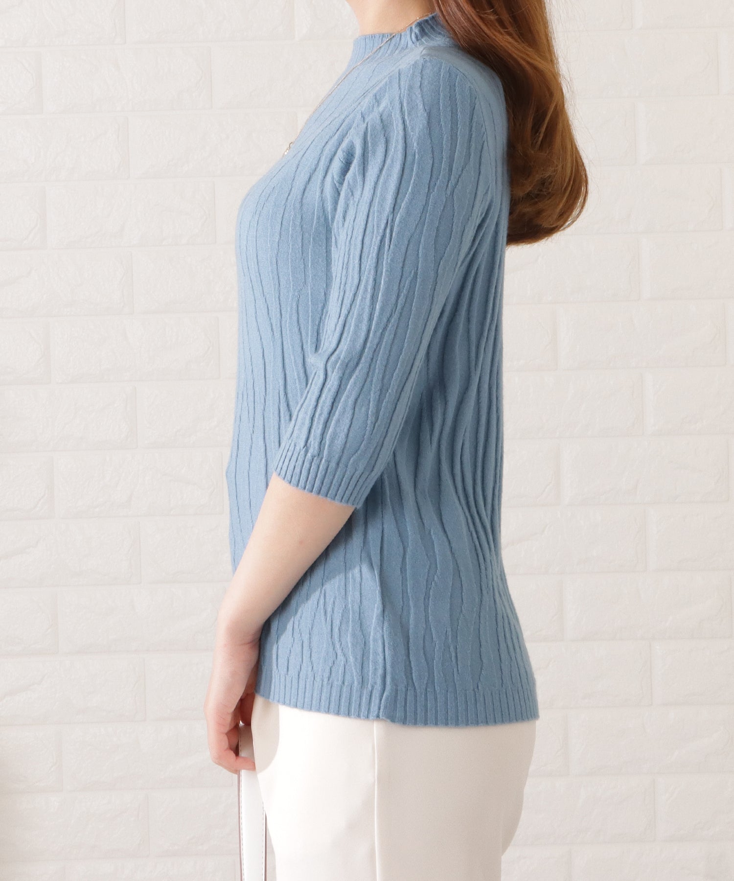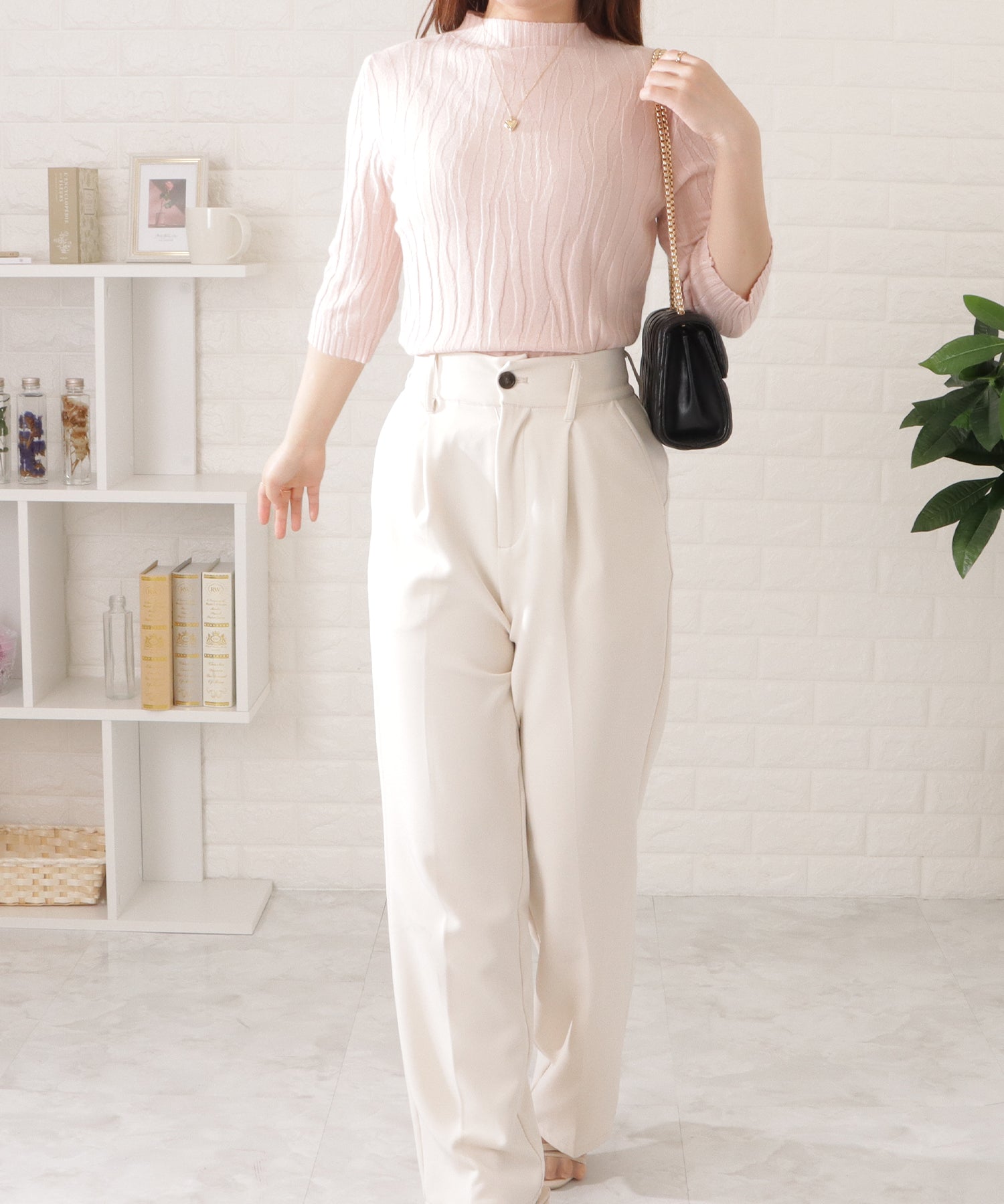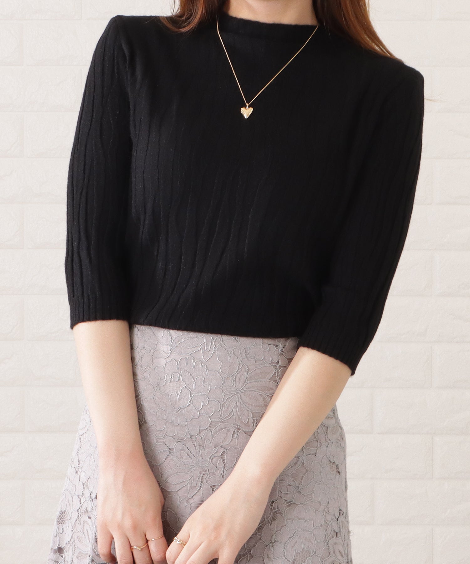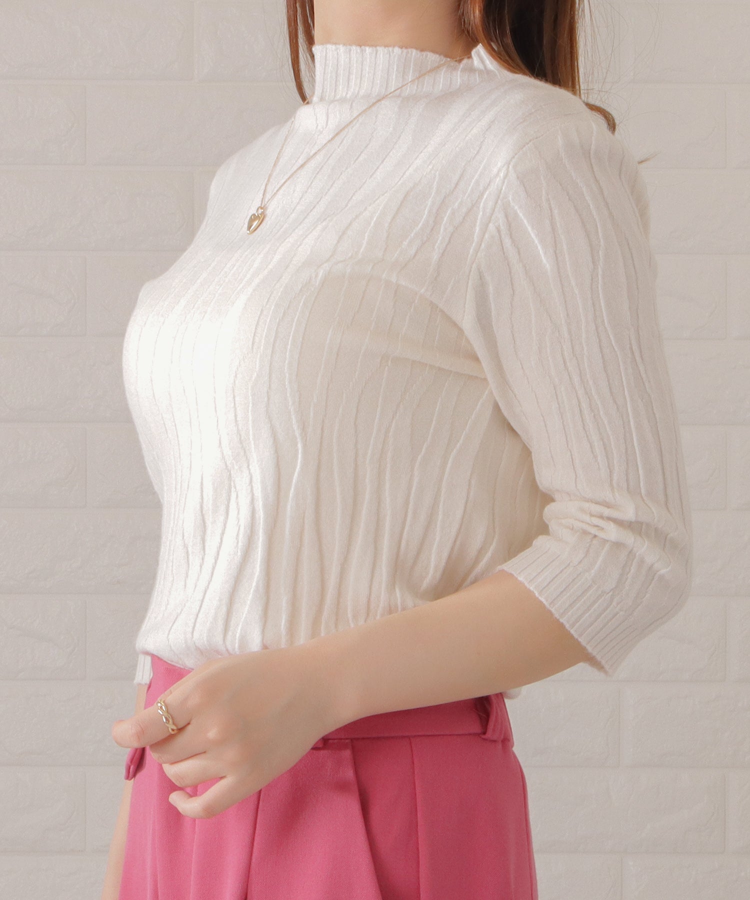 トレンドのボトルネックで、上品な佇まいに仕上げたニットプルオーバー。