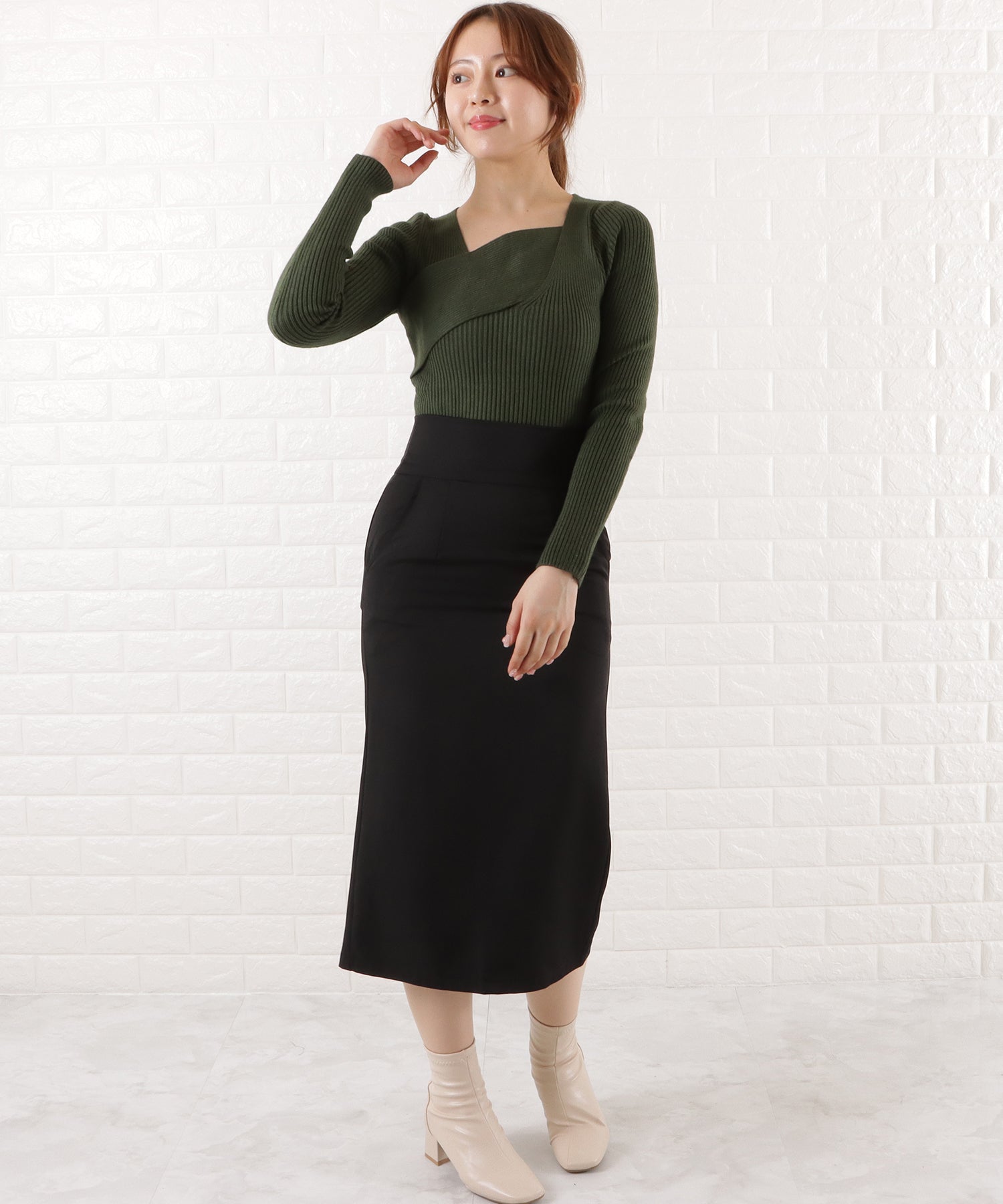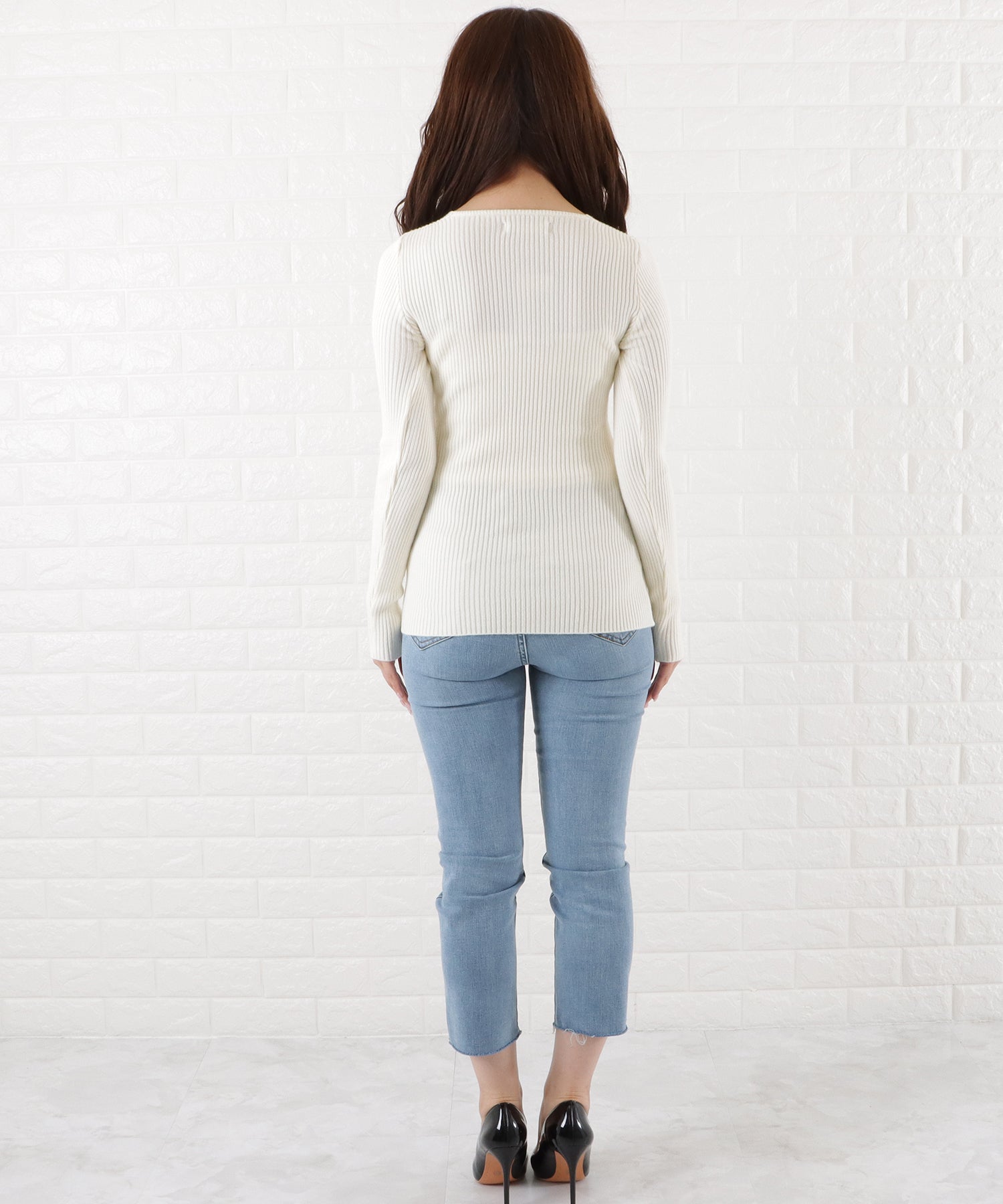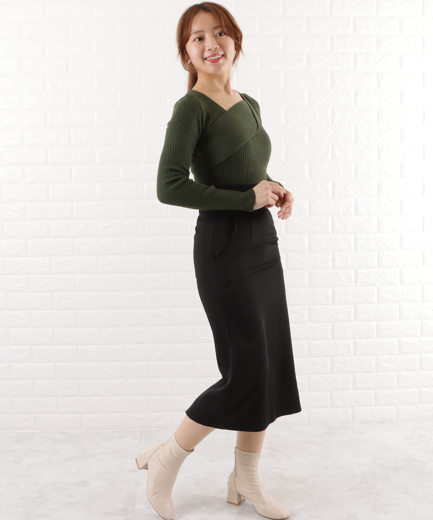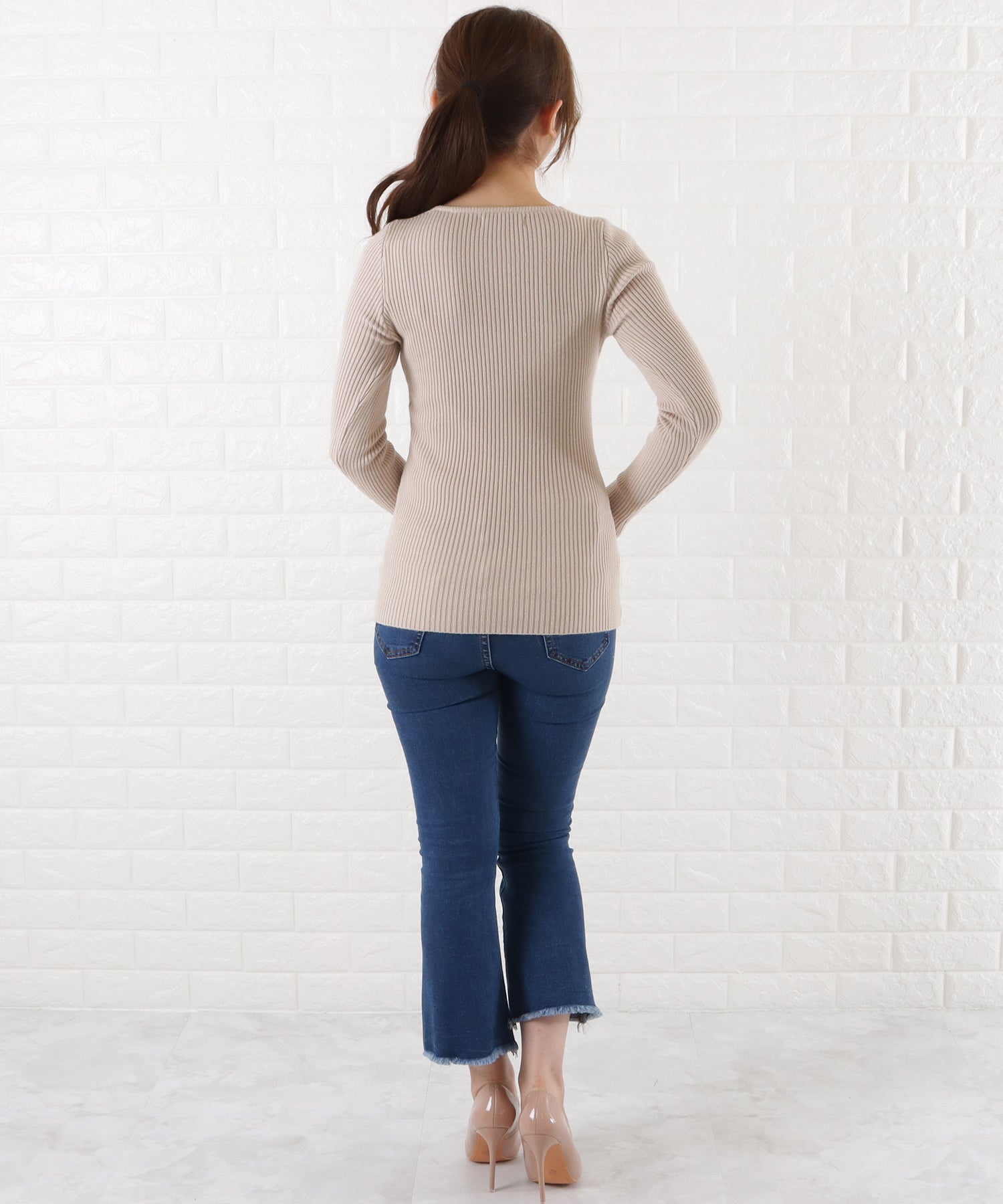 広めに開いたネックラインがデコルテを綺麗に魅せ、小顔効果も抜群です。