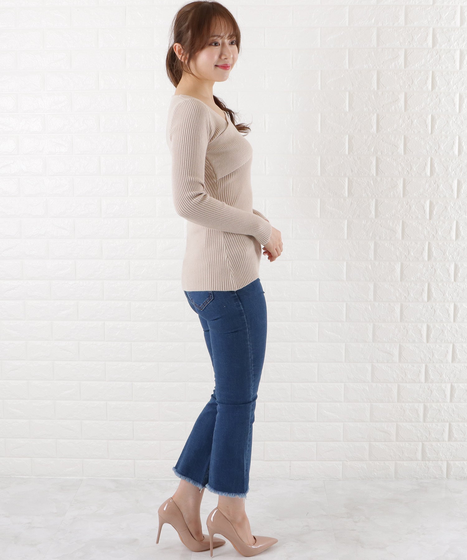 クロスしたようなフロントのデザインは、引き締めるようにコーディネートのアクセントになります◎