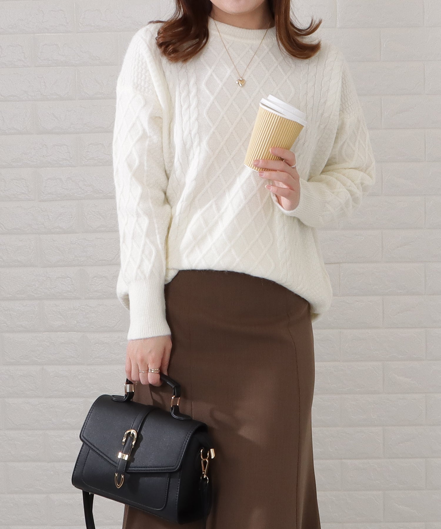 リラックス感のあるシルエットが魅力のケーブルニットプルオーバー