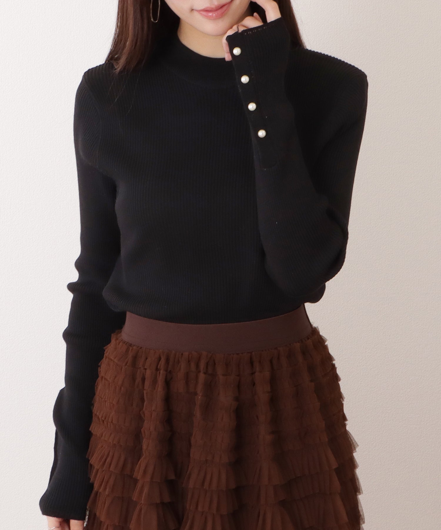 袖口にはアクセントに、パールのあしらいをプラスしました。