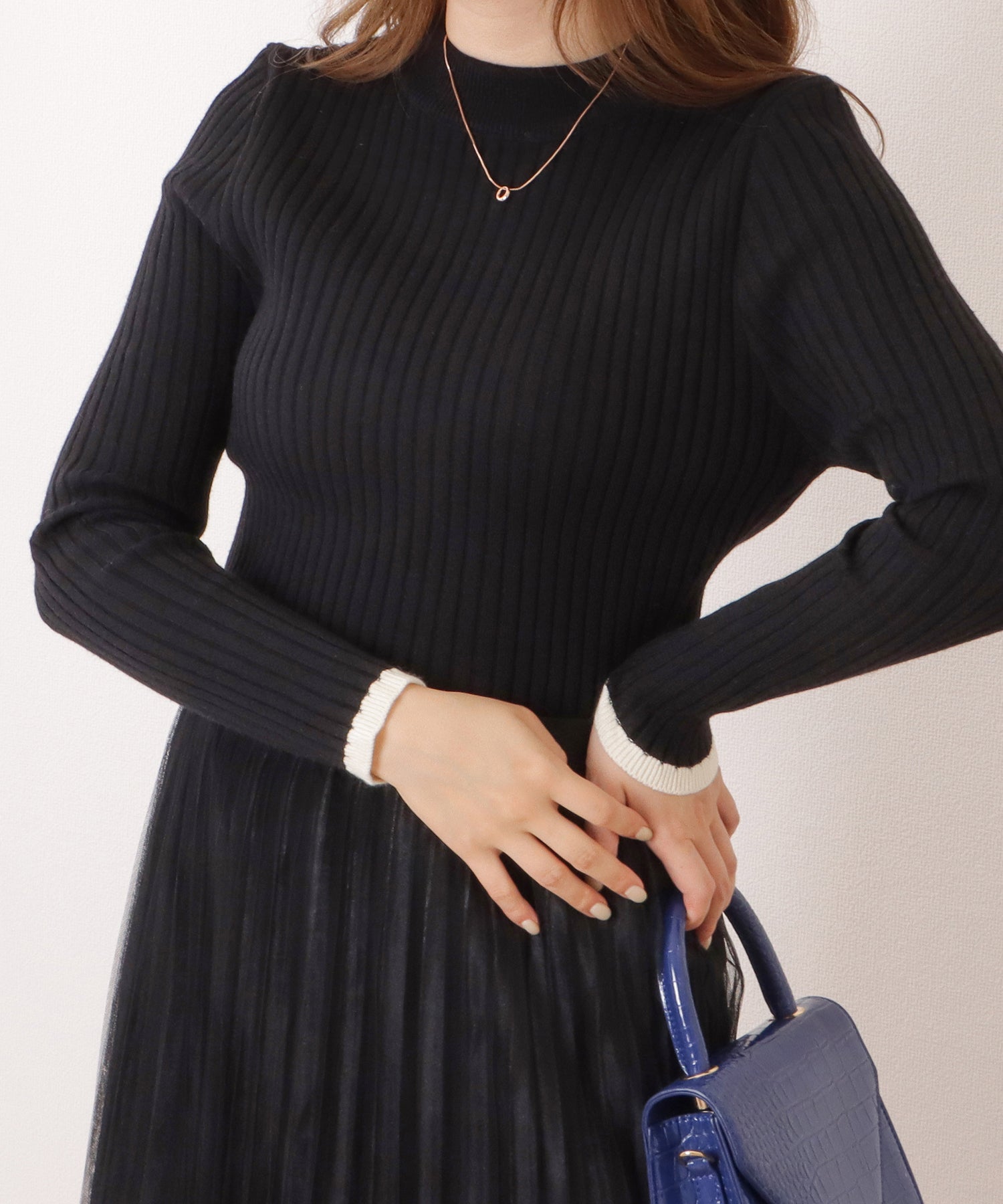 首元は上品なプチハイネックで、トレンドライクに仕上げました。