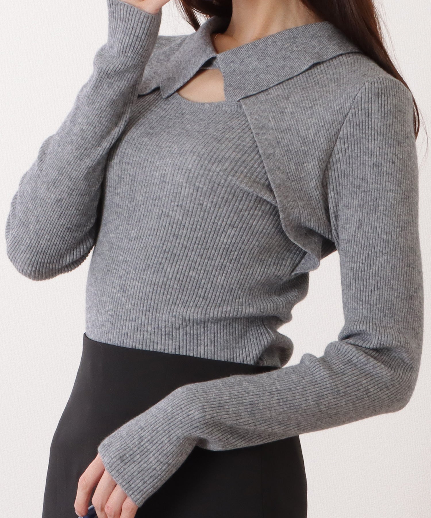 カットアウト襟付きリブニットボレロ風プルオーバー