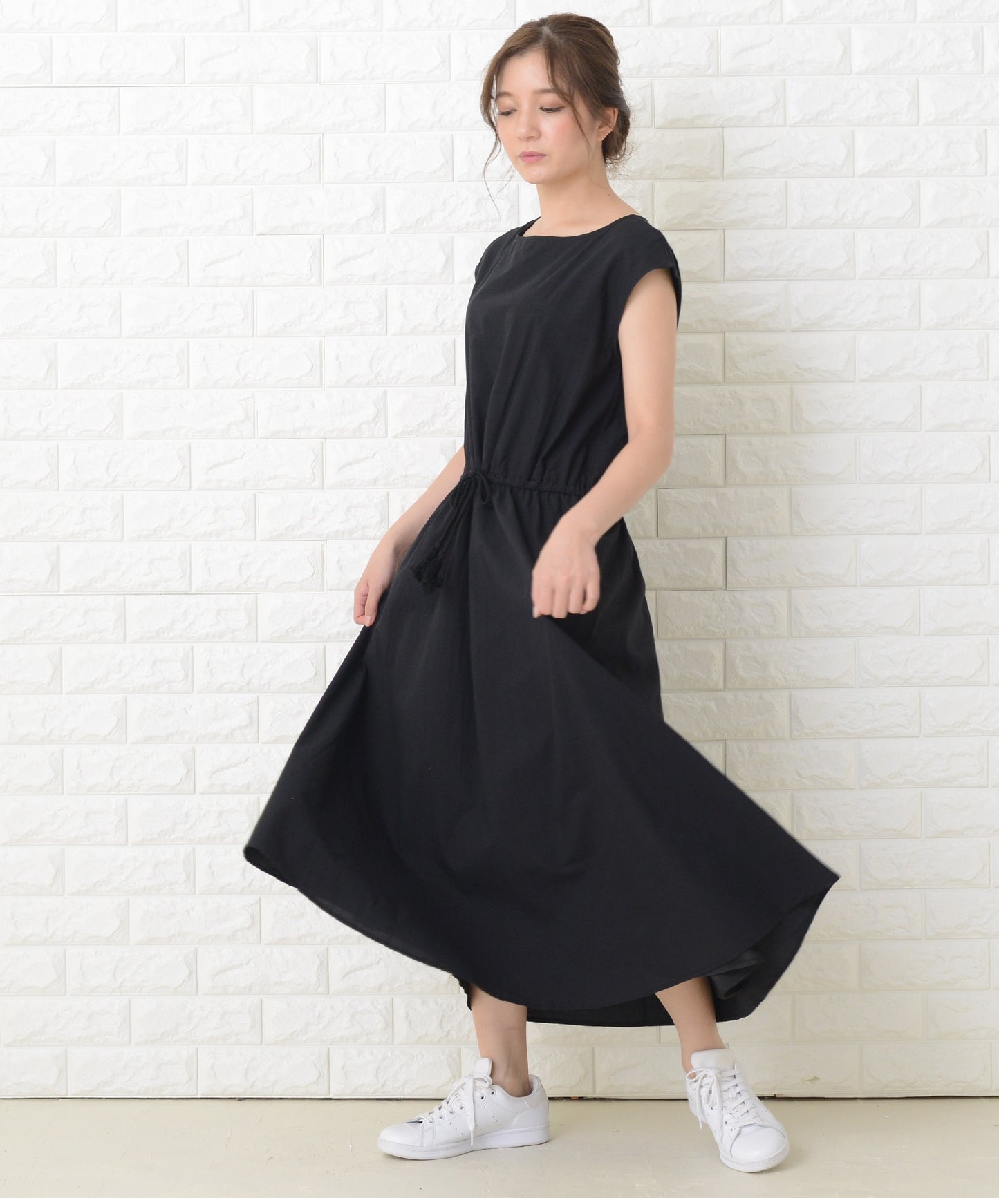 一枚でふわりと着られるロング丈ワンピース