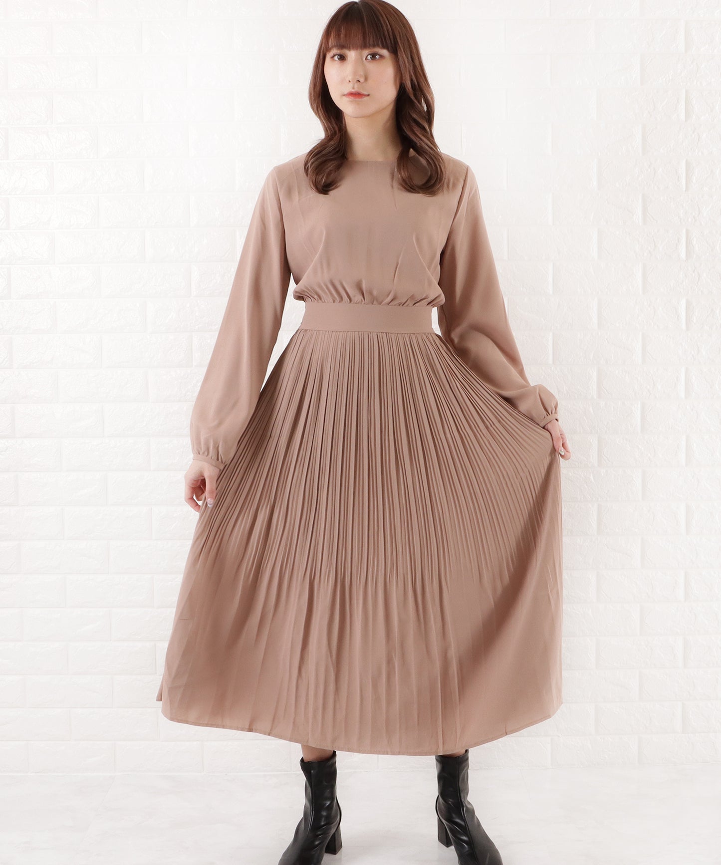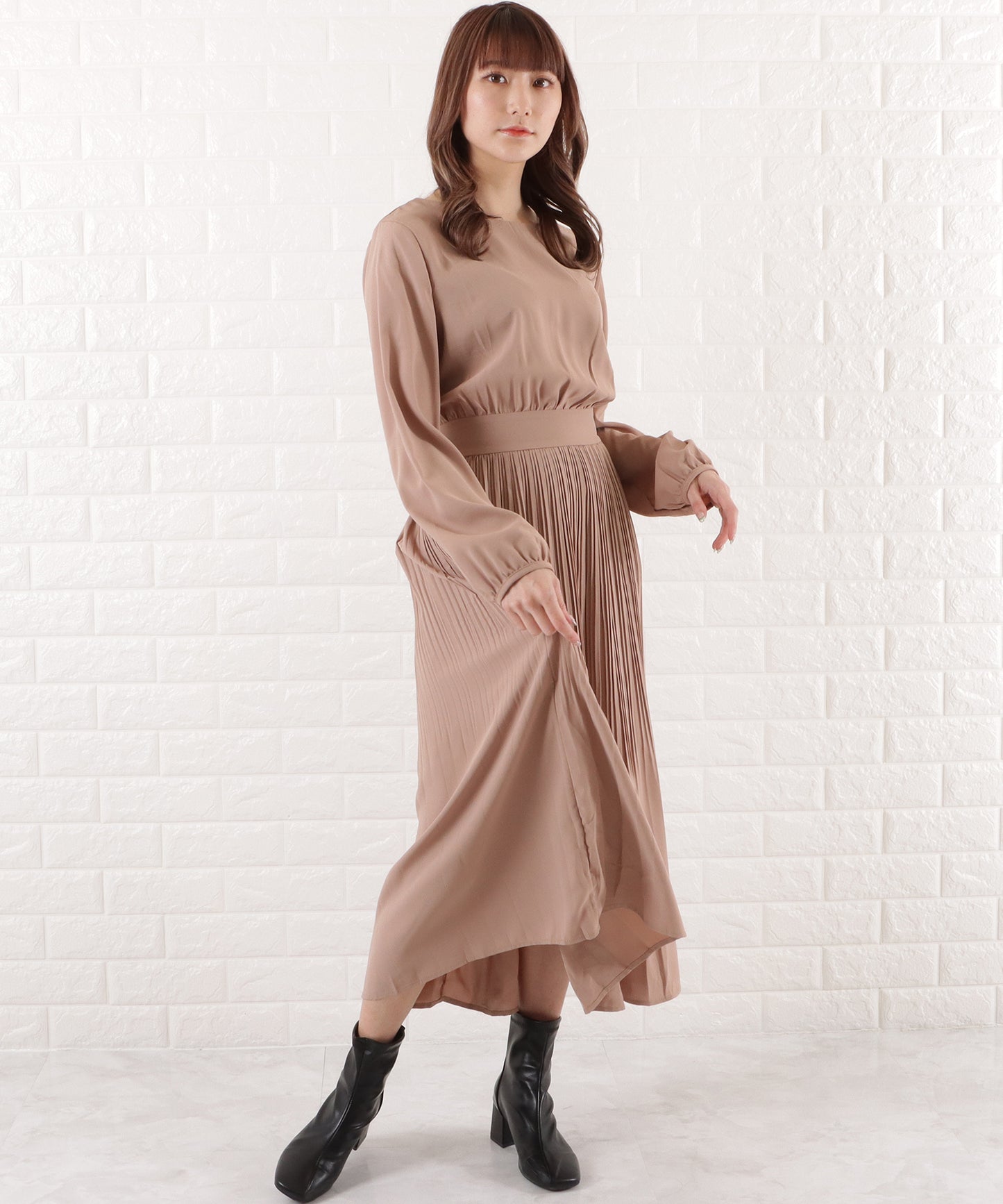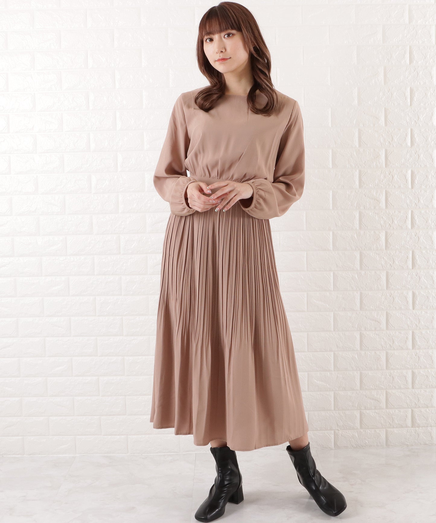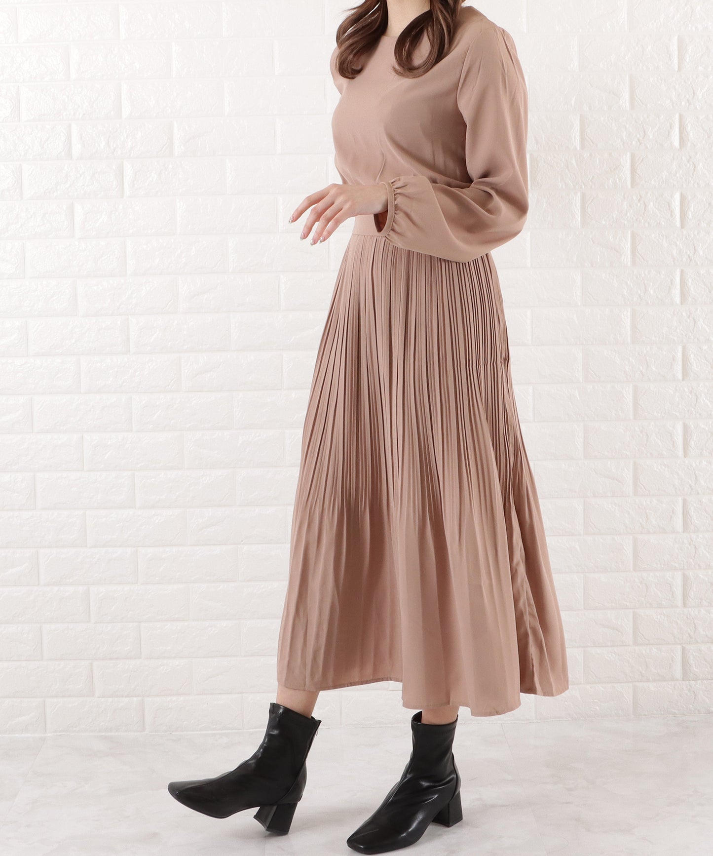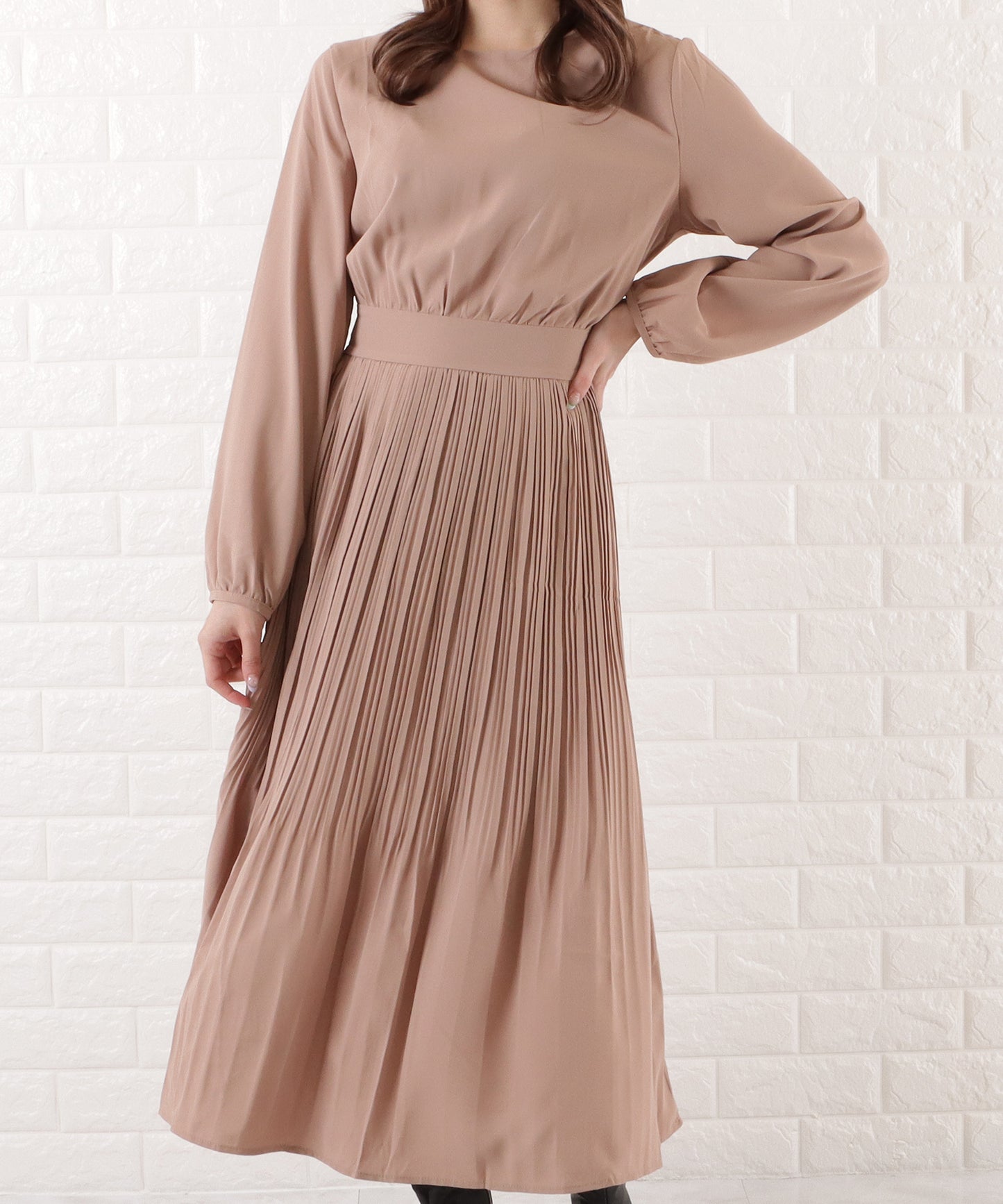 プリーツロングワンピース