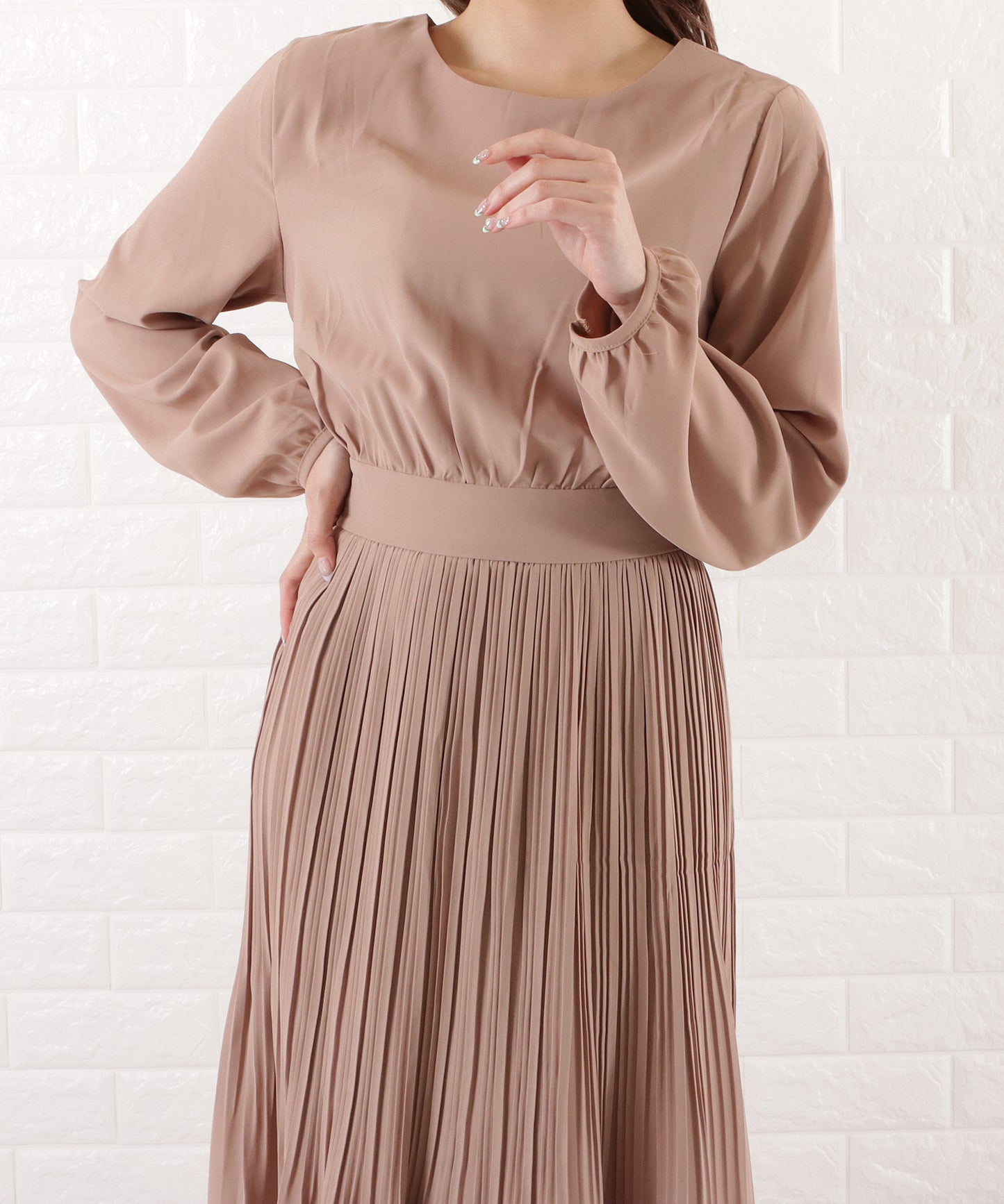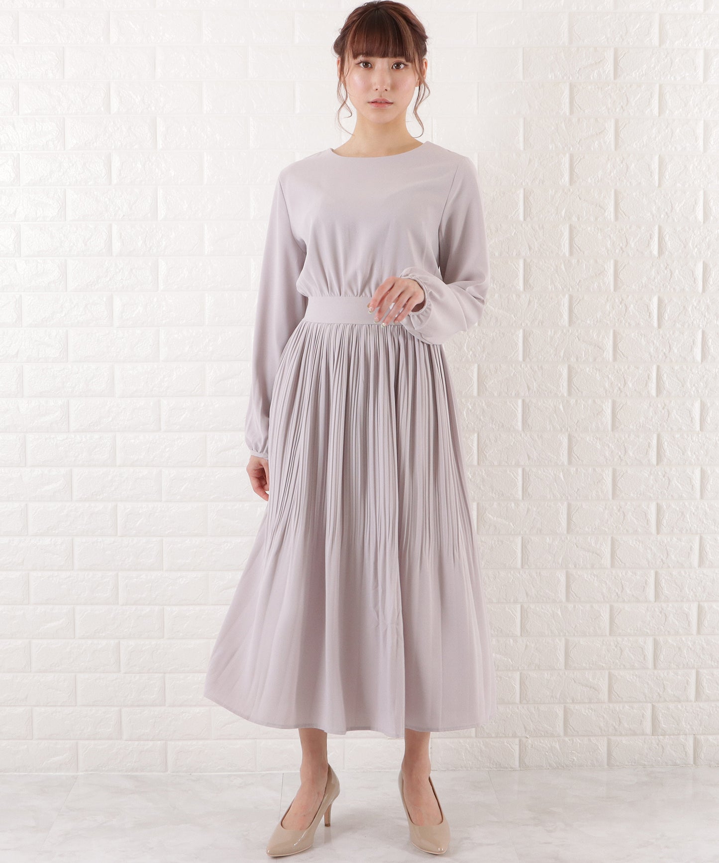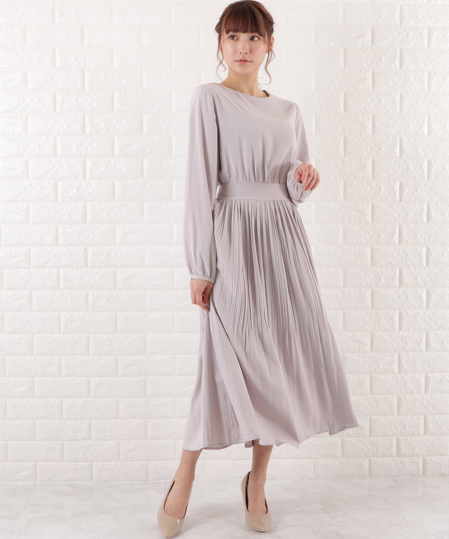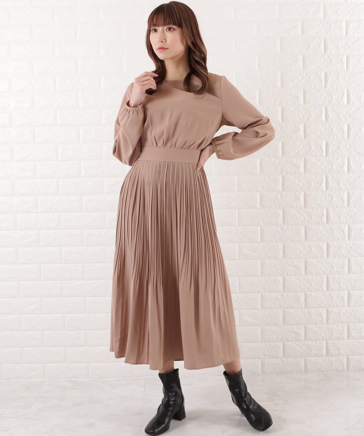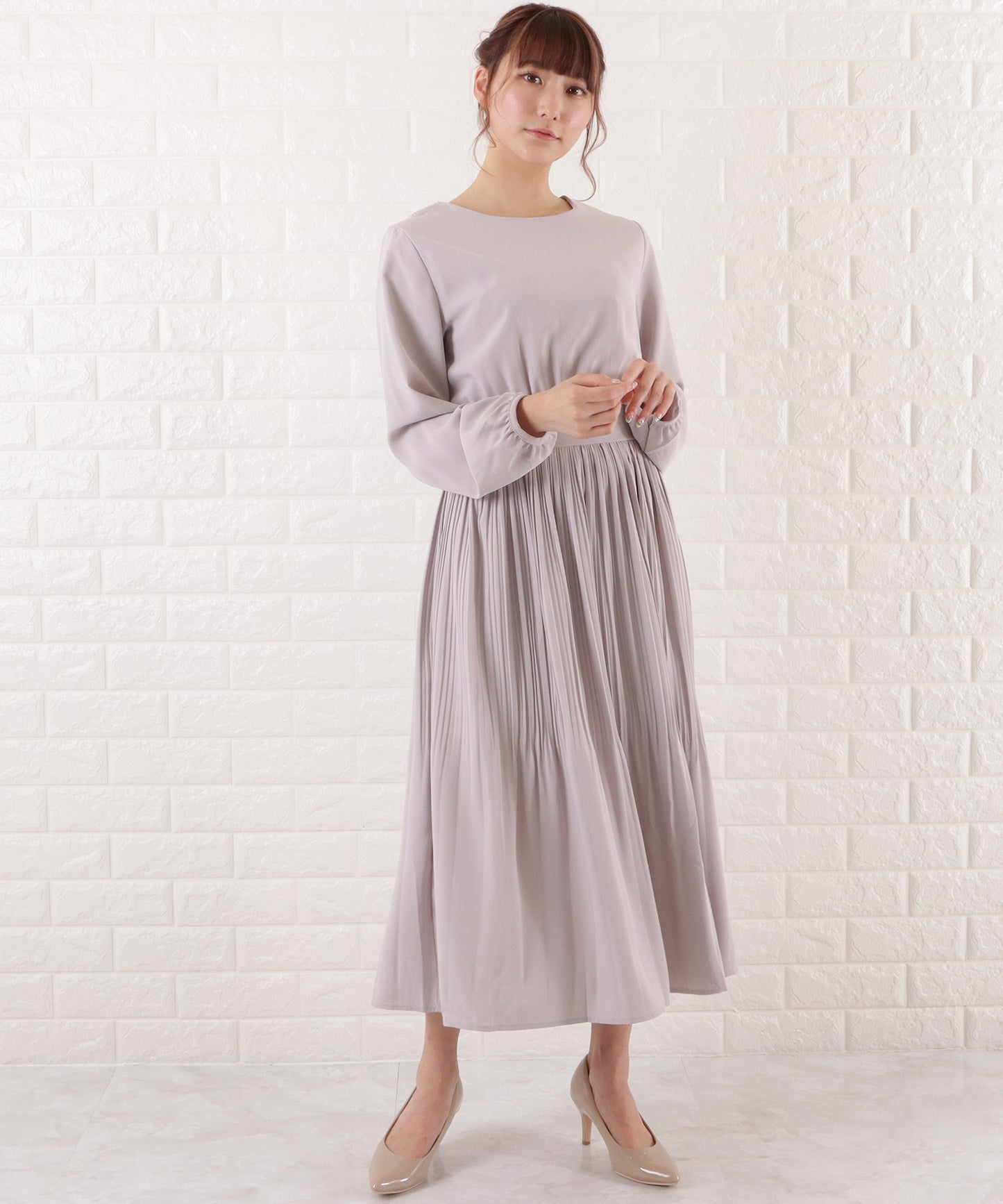 プリーツロングワンピース