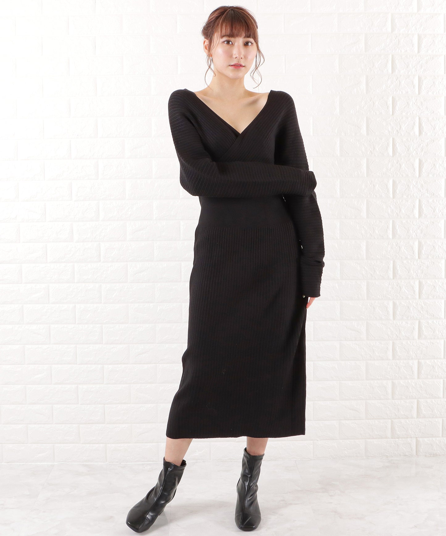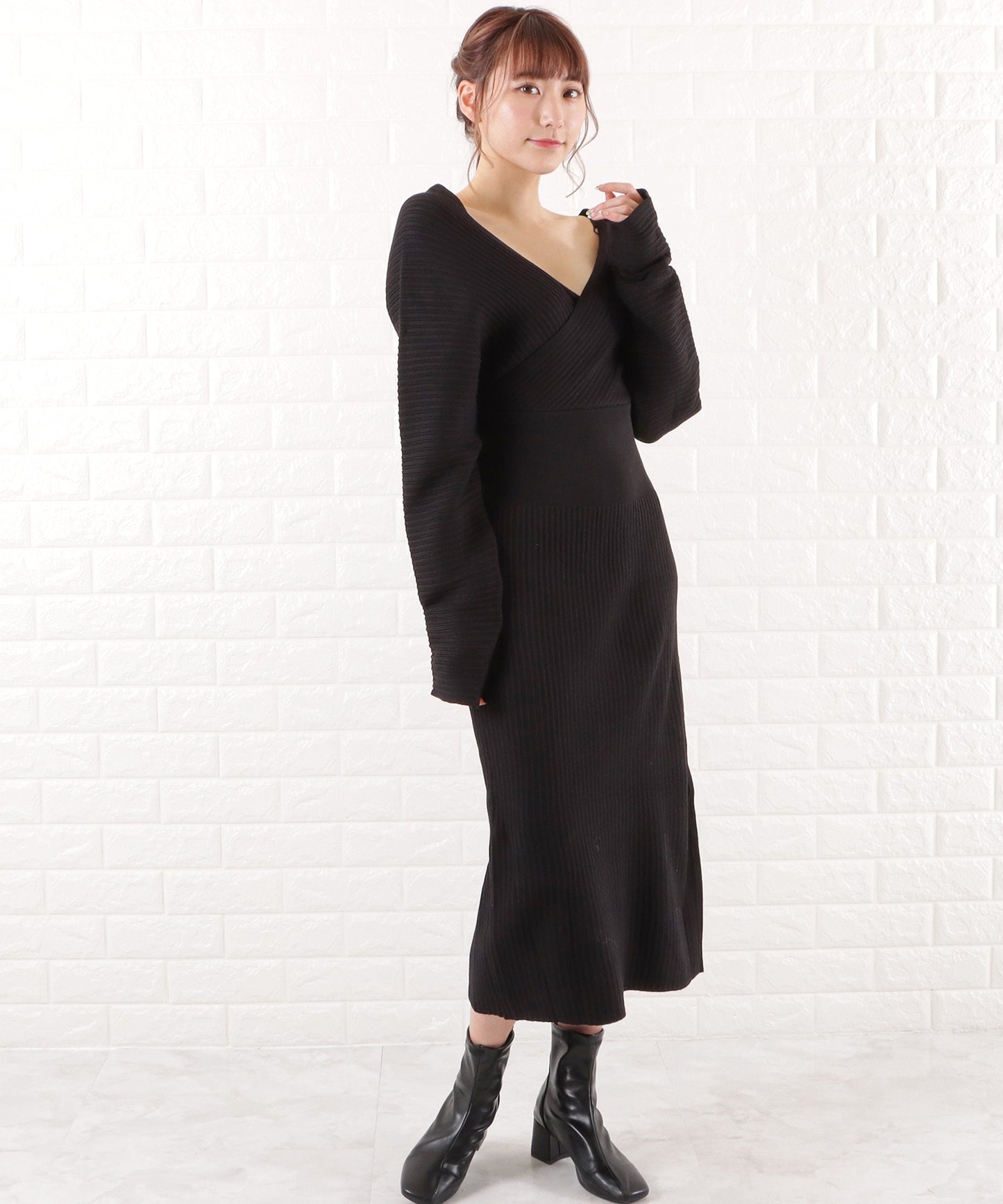 着るだけで大人っぽく上品に決まるカシュクールニットワンピース