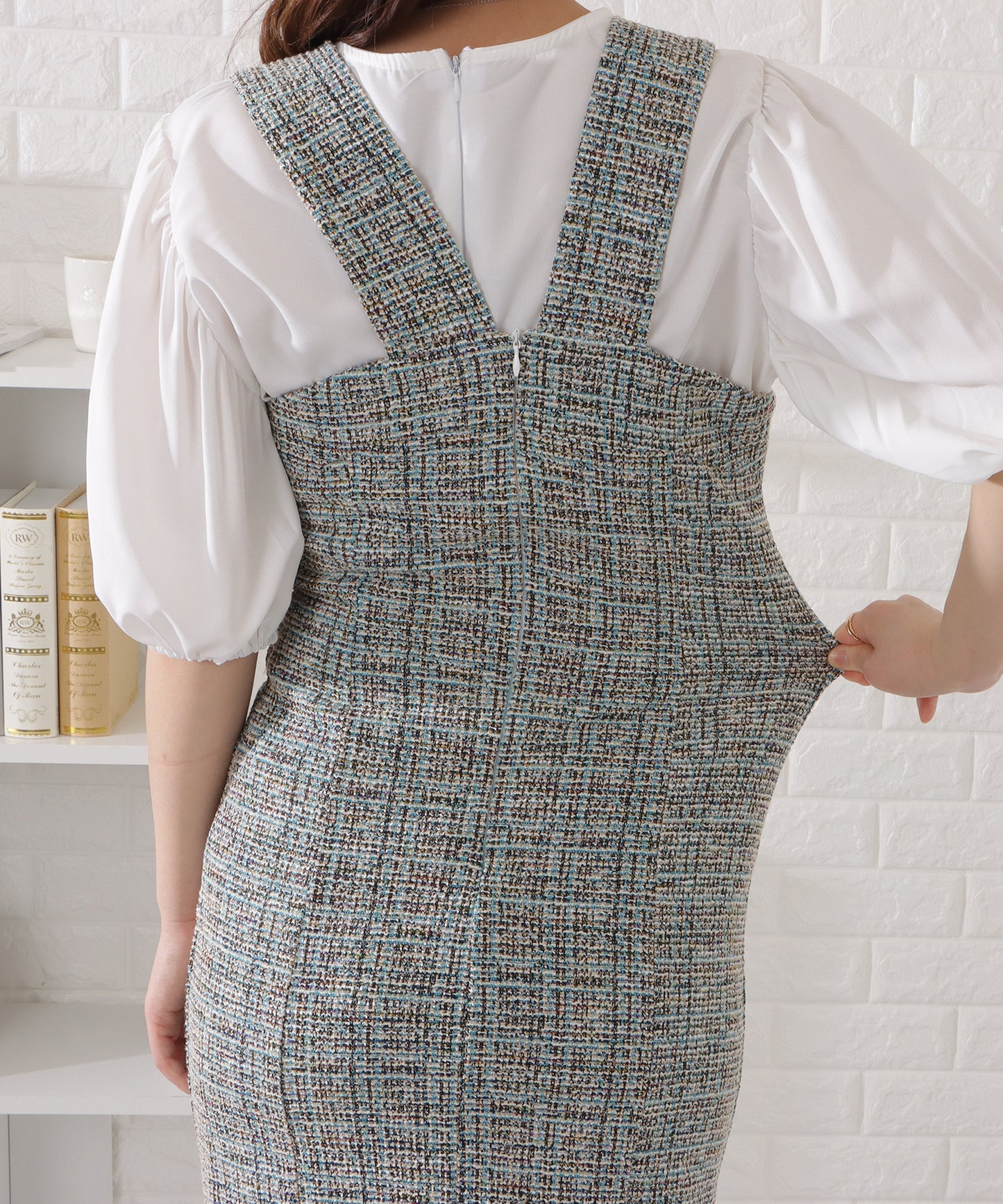 華やかな表情のミックスツイード生地でおつくりしたワンピース