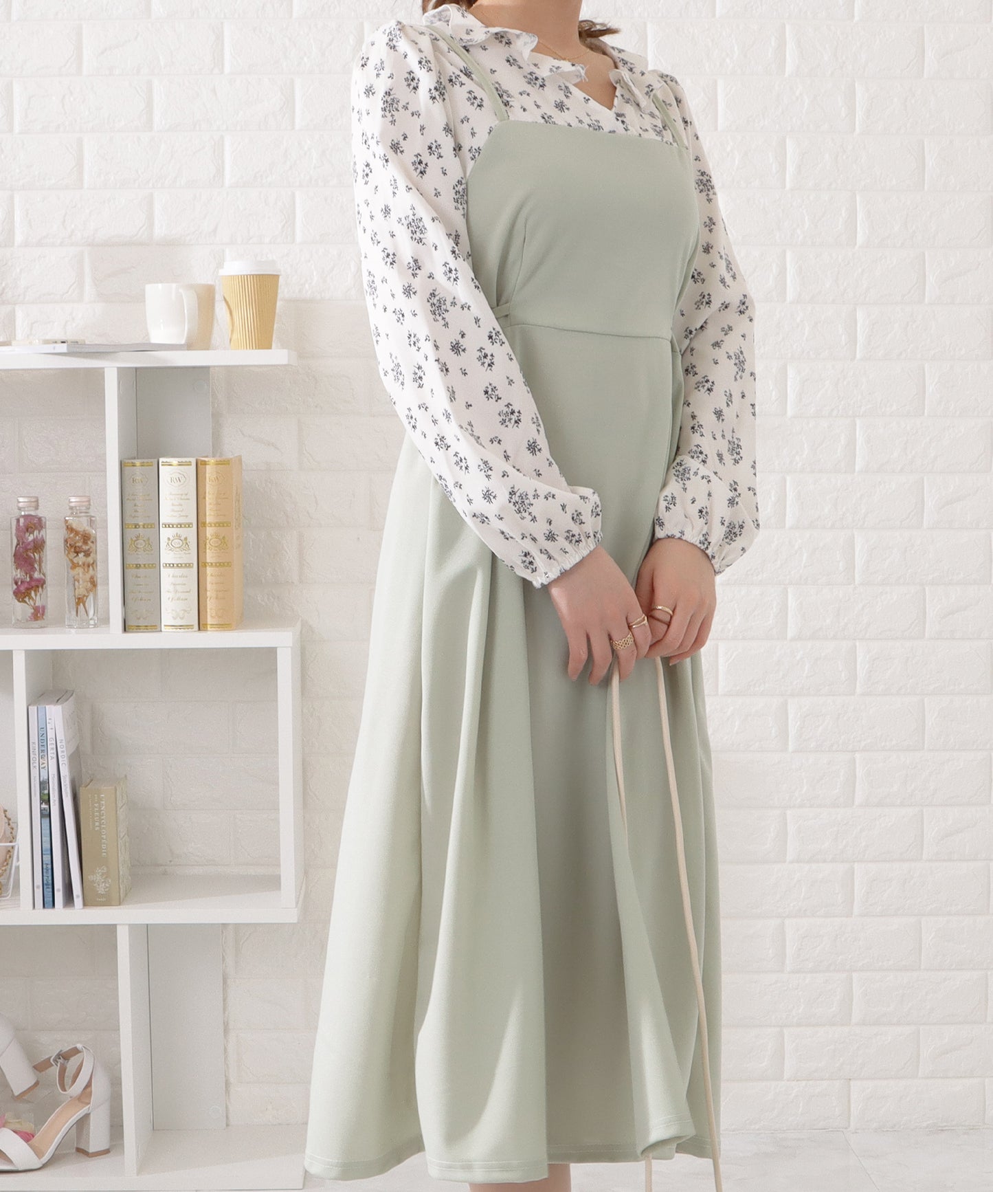インにブラウスを合わせたような、フェイクレイヤードデザインのワンピース