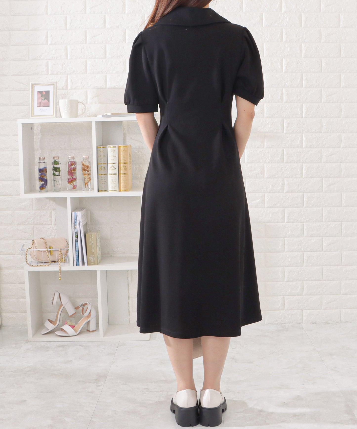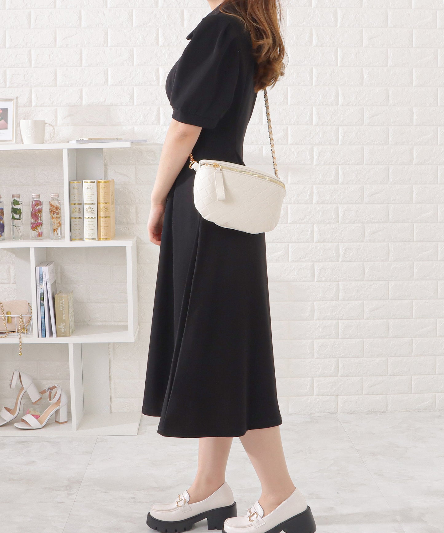 配色 クルーネック キャンディースリーブ ギャザー ドレス