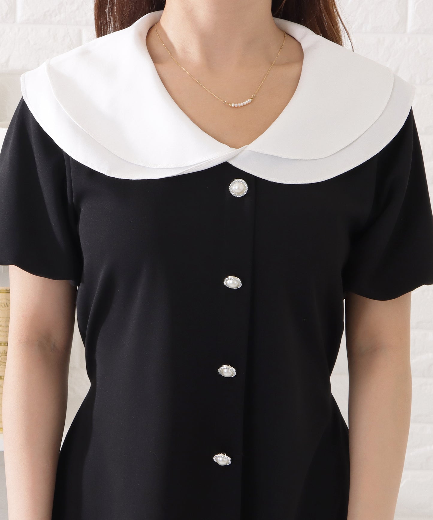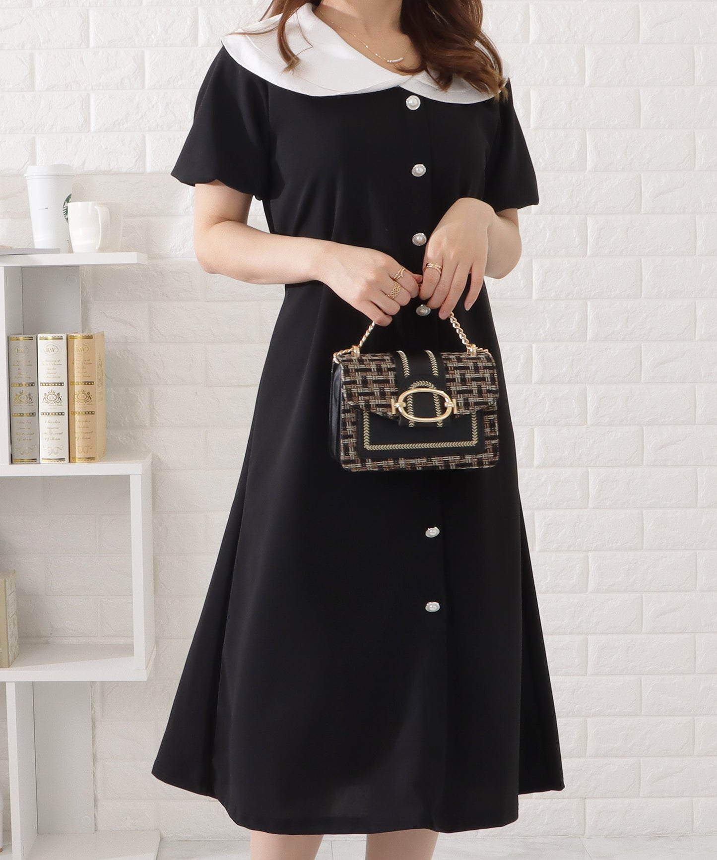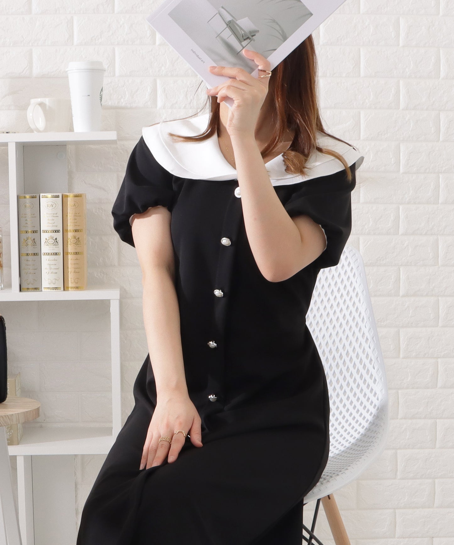 まるで花びらのように大きく開く、存在感のある襟元が目を引くワンピース