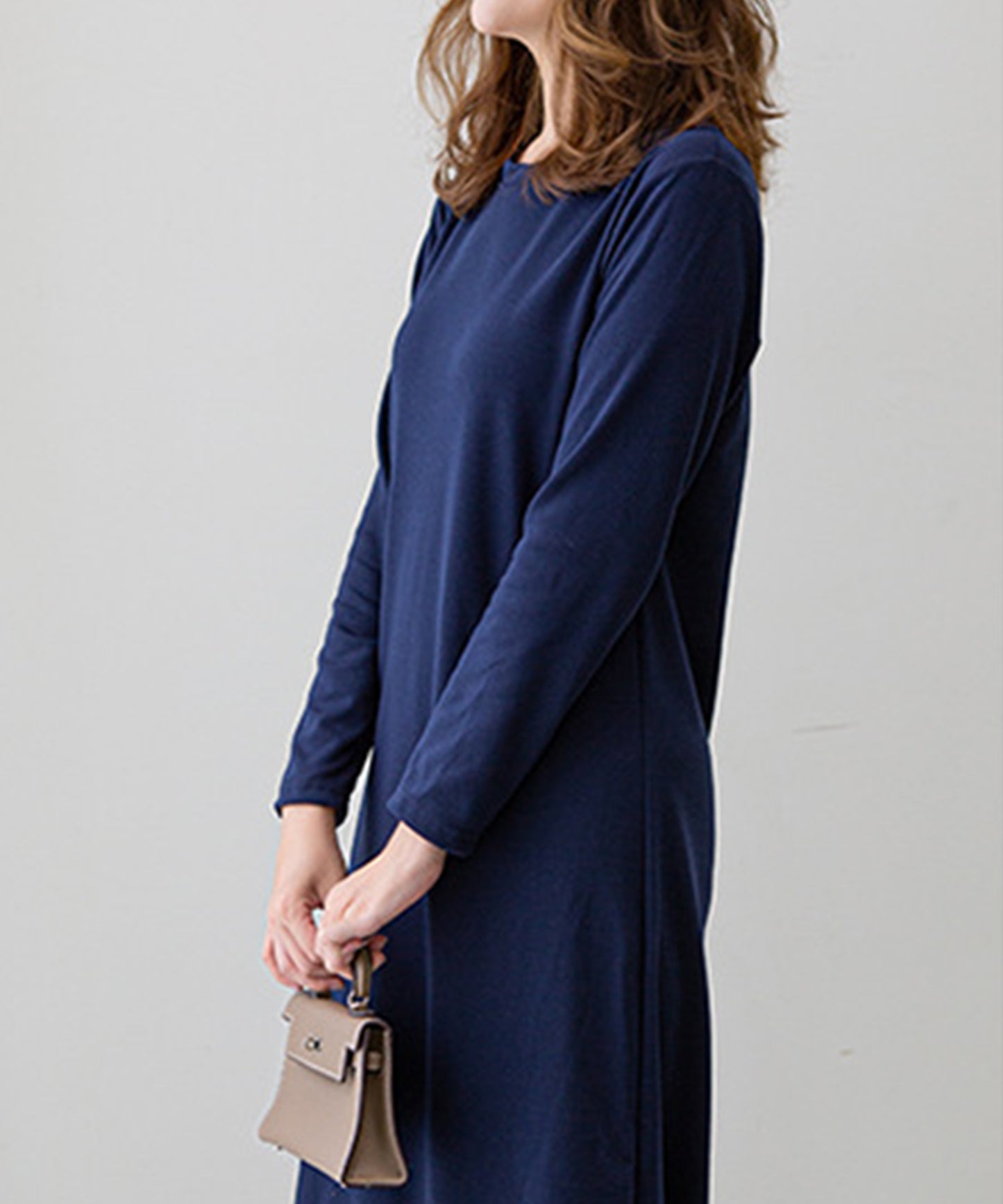 肌触りのいい春秋素材のロングワンピ