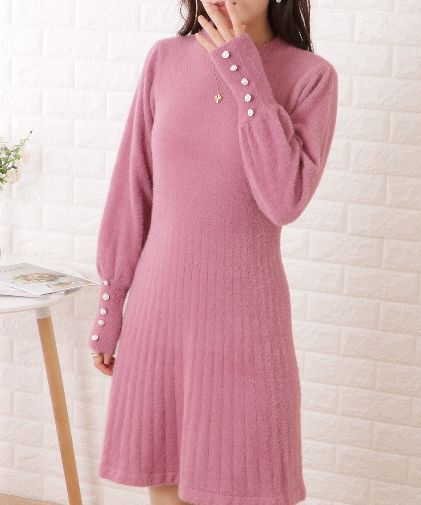 季節感のあるウォーミーな装いに仕上がる、ニット素材のワンピース。