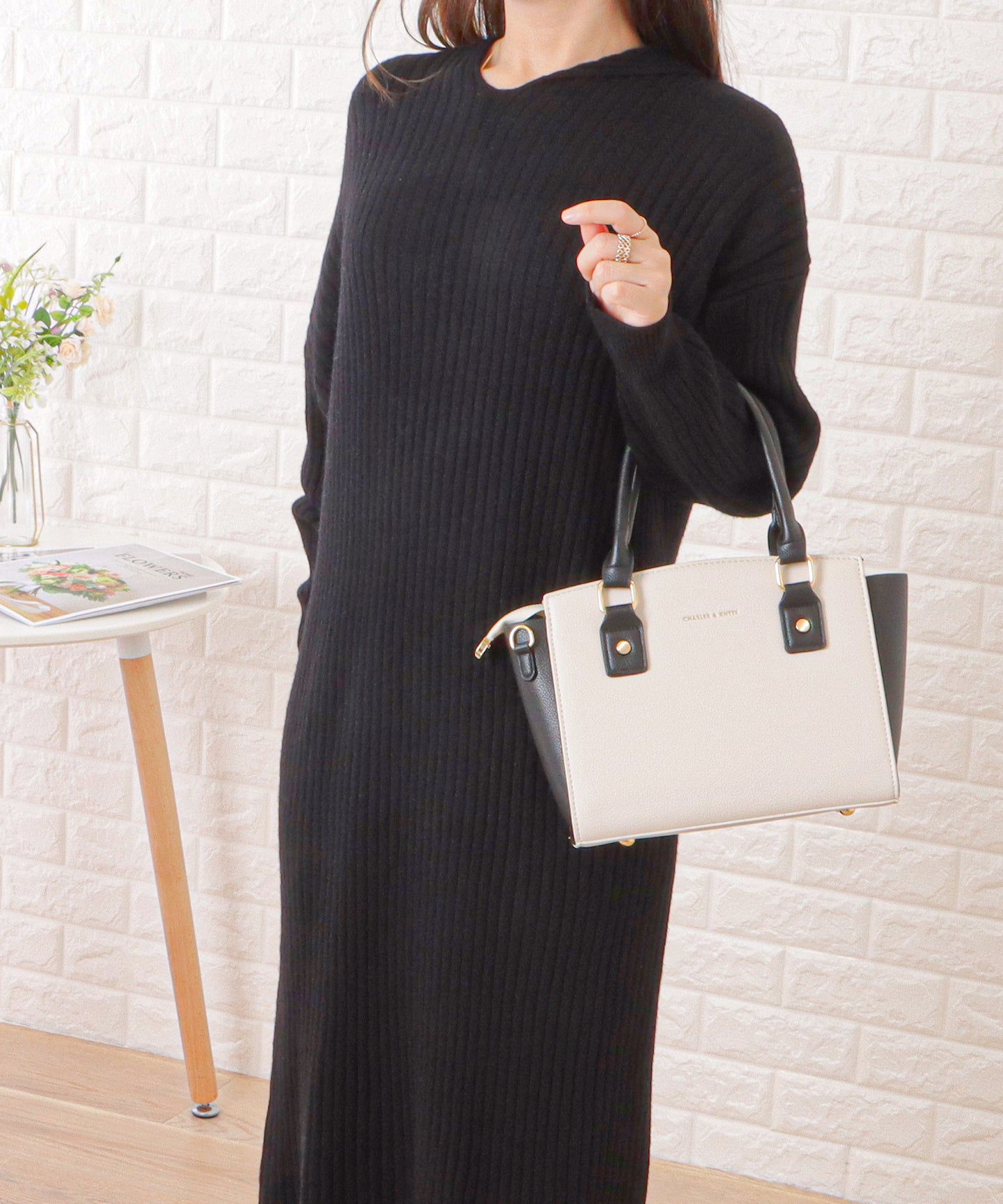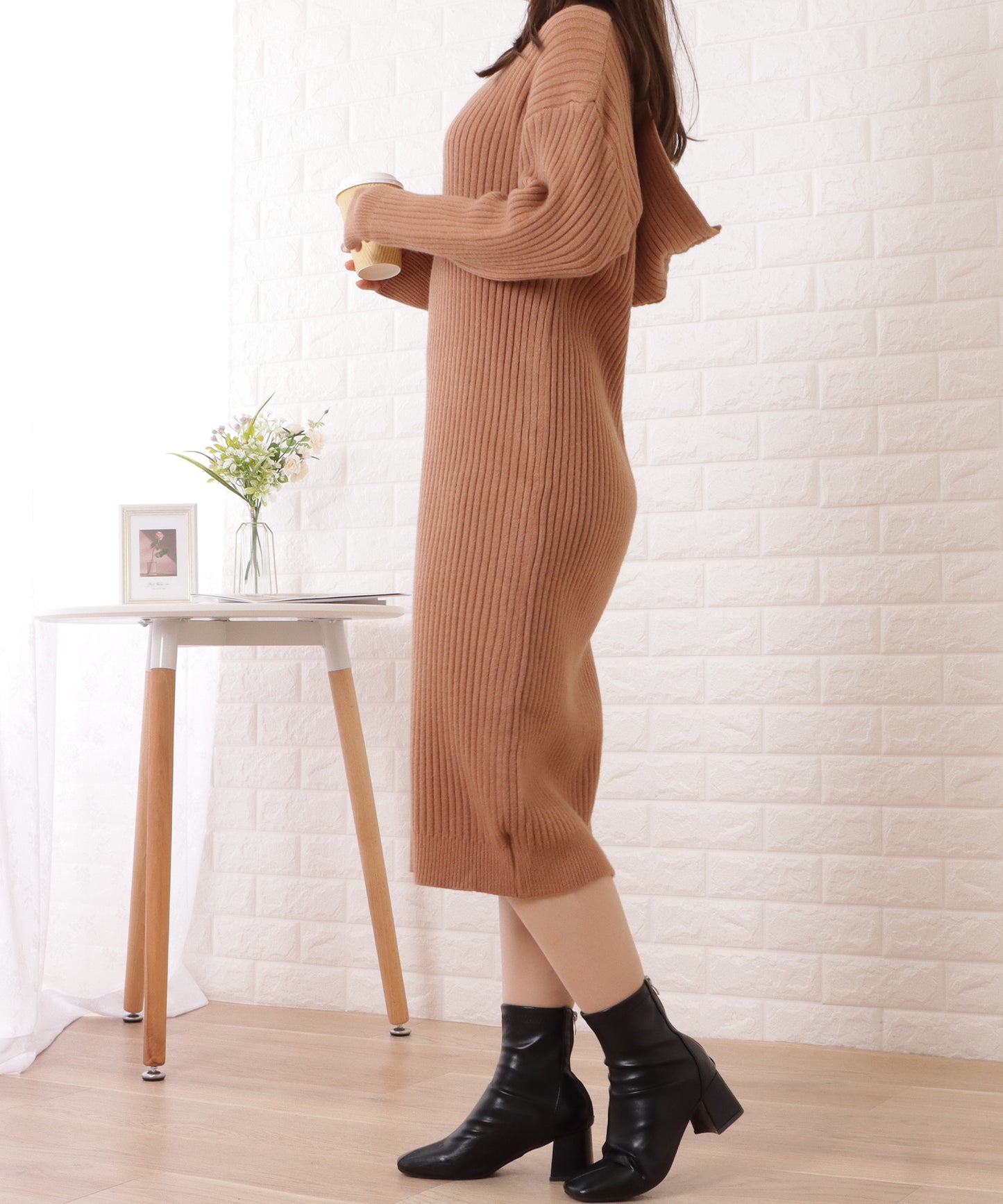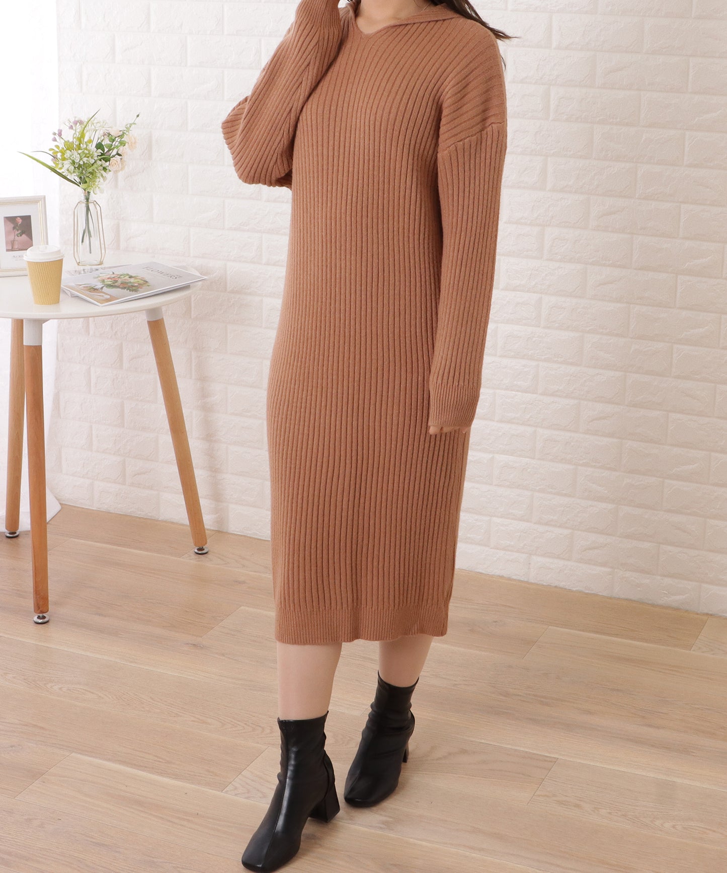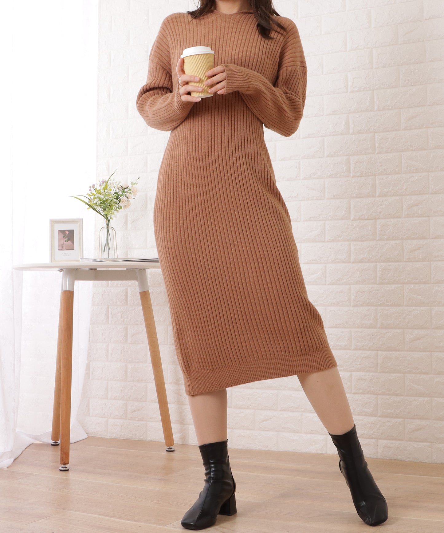 ゆったりとした落ち感のあるシルエットで、ラフな着こなしが叶うニットワンピース。