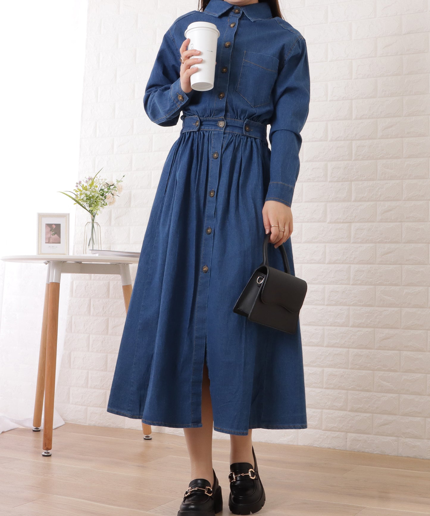 ワンピースとしてはもちろん、ボタンオープンで羽織りとしてもアレンジできるので、レイヤードスタイルも楽しめます。