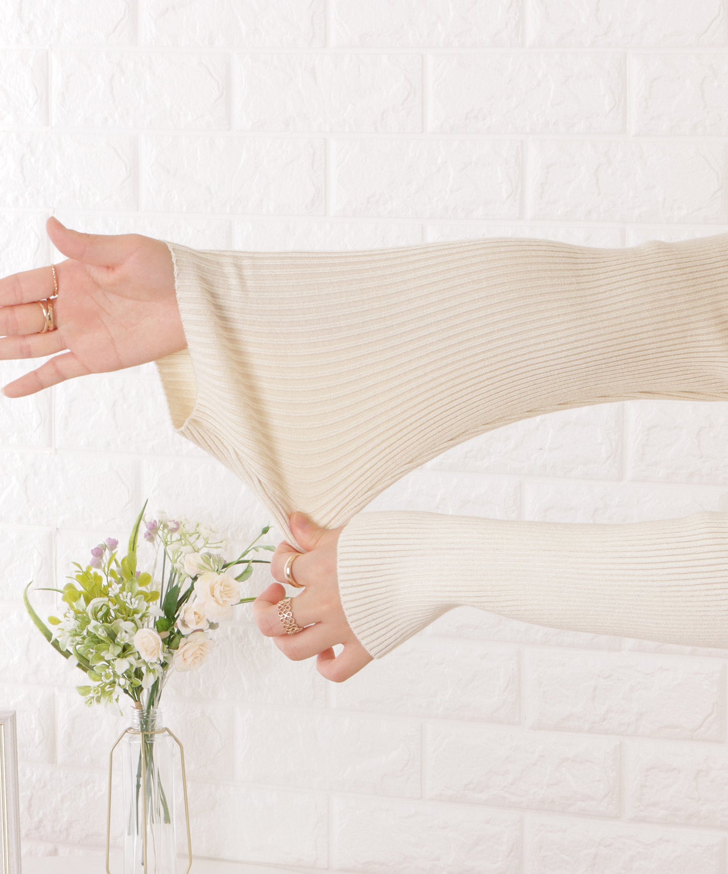 上品見えするハイゲージニットをベースに、リブ幅をアレンジすることで表情をつけた1枚。