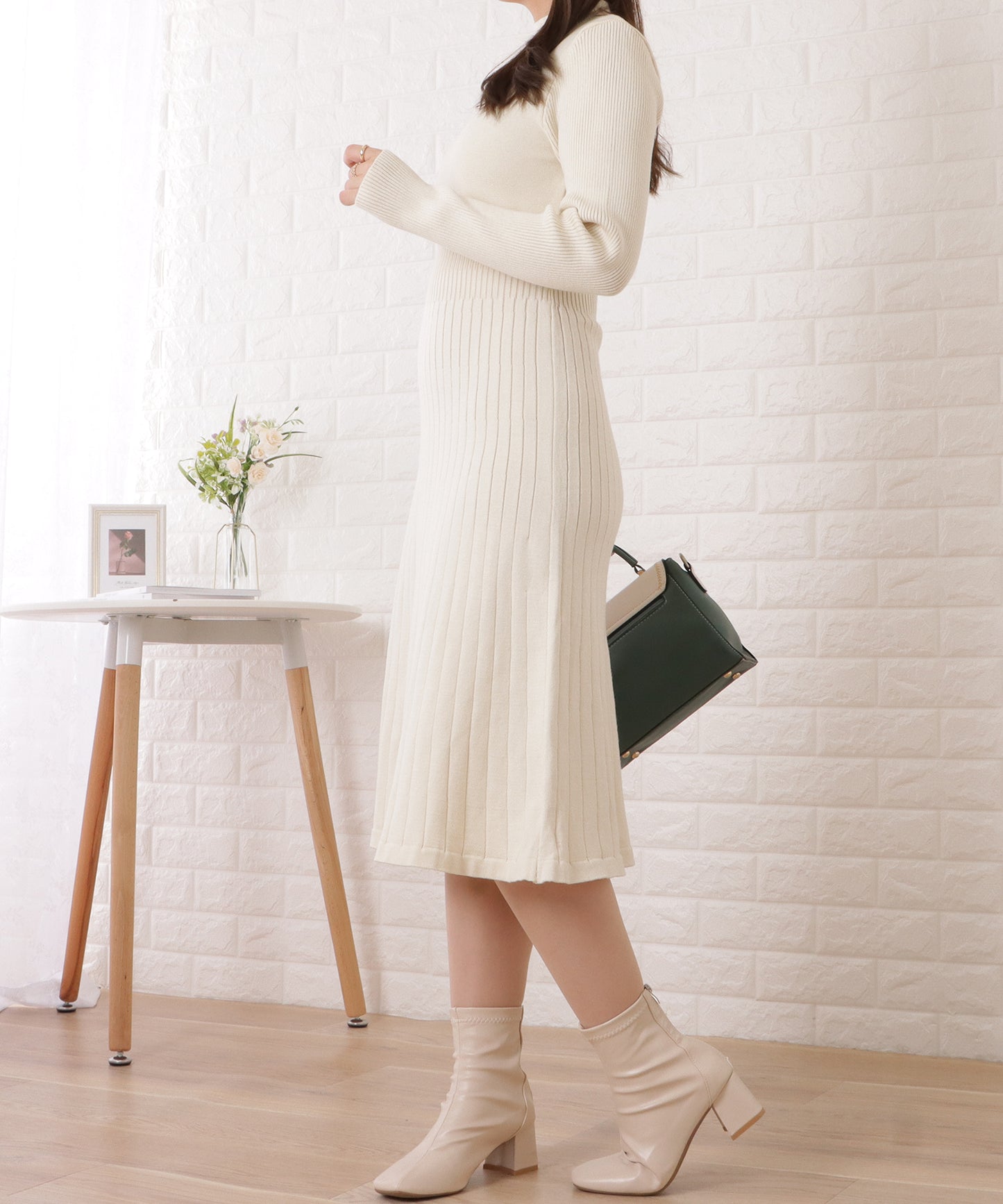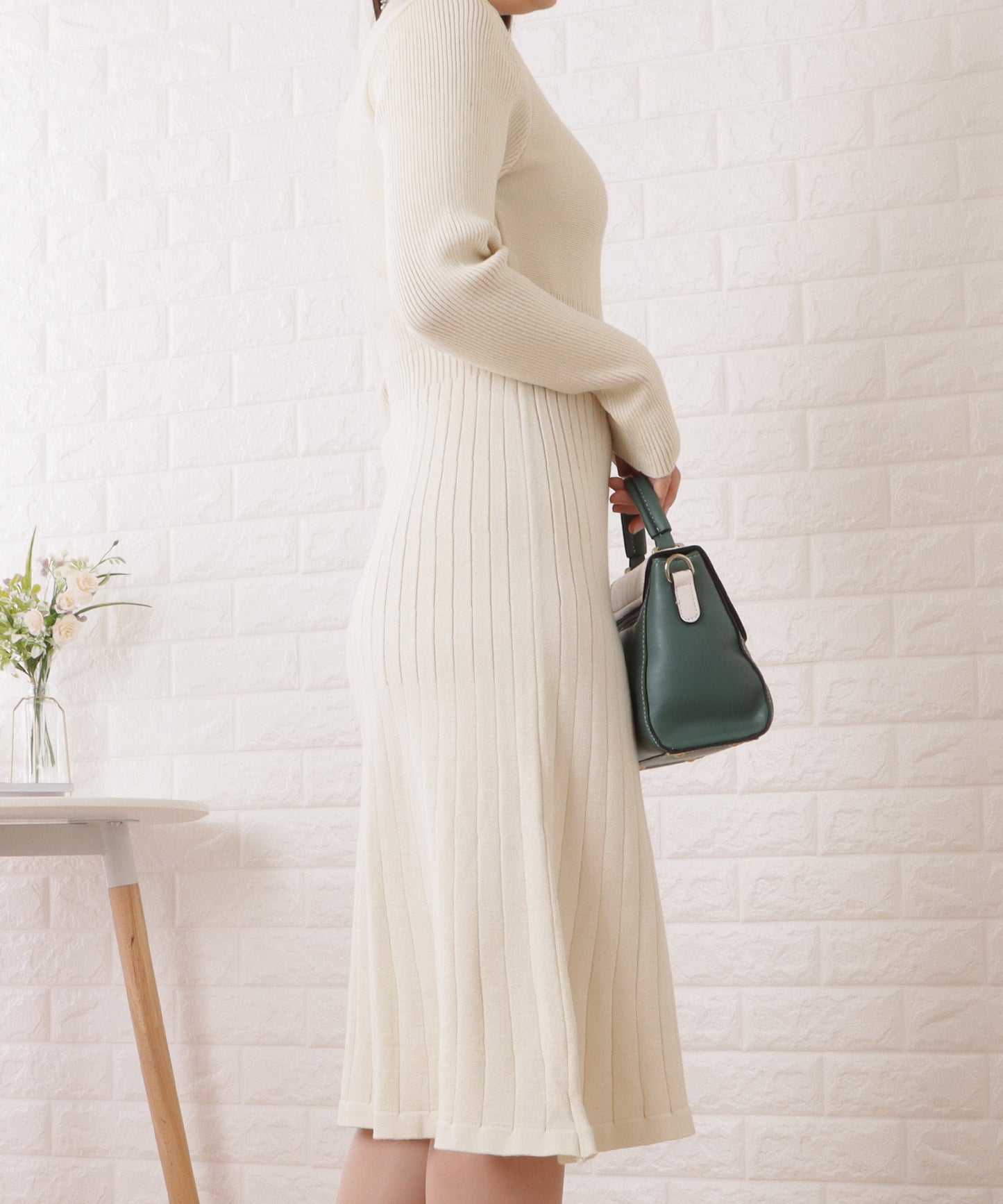 リブニットミディ丈タイトワンピース