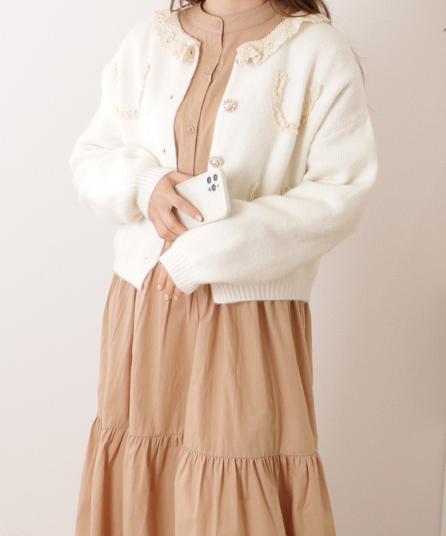 スカート部分には段をつけてたっぷりとギャザーをあしらい、女性らしさが漂うデザインに仕上げました。