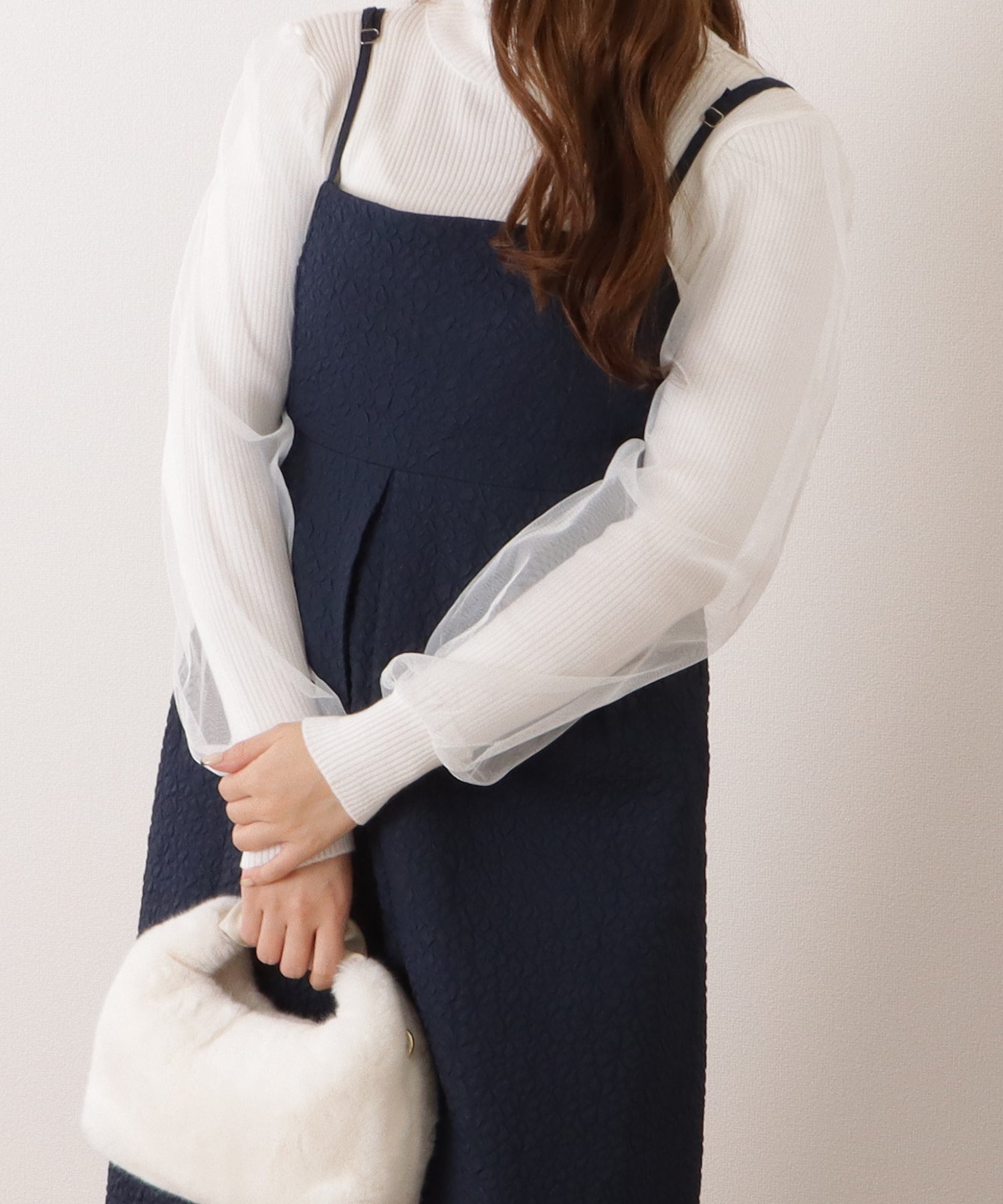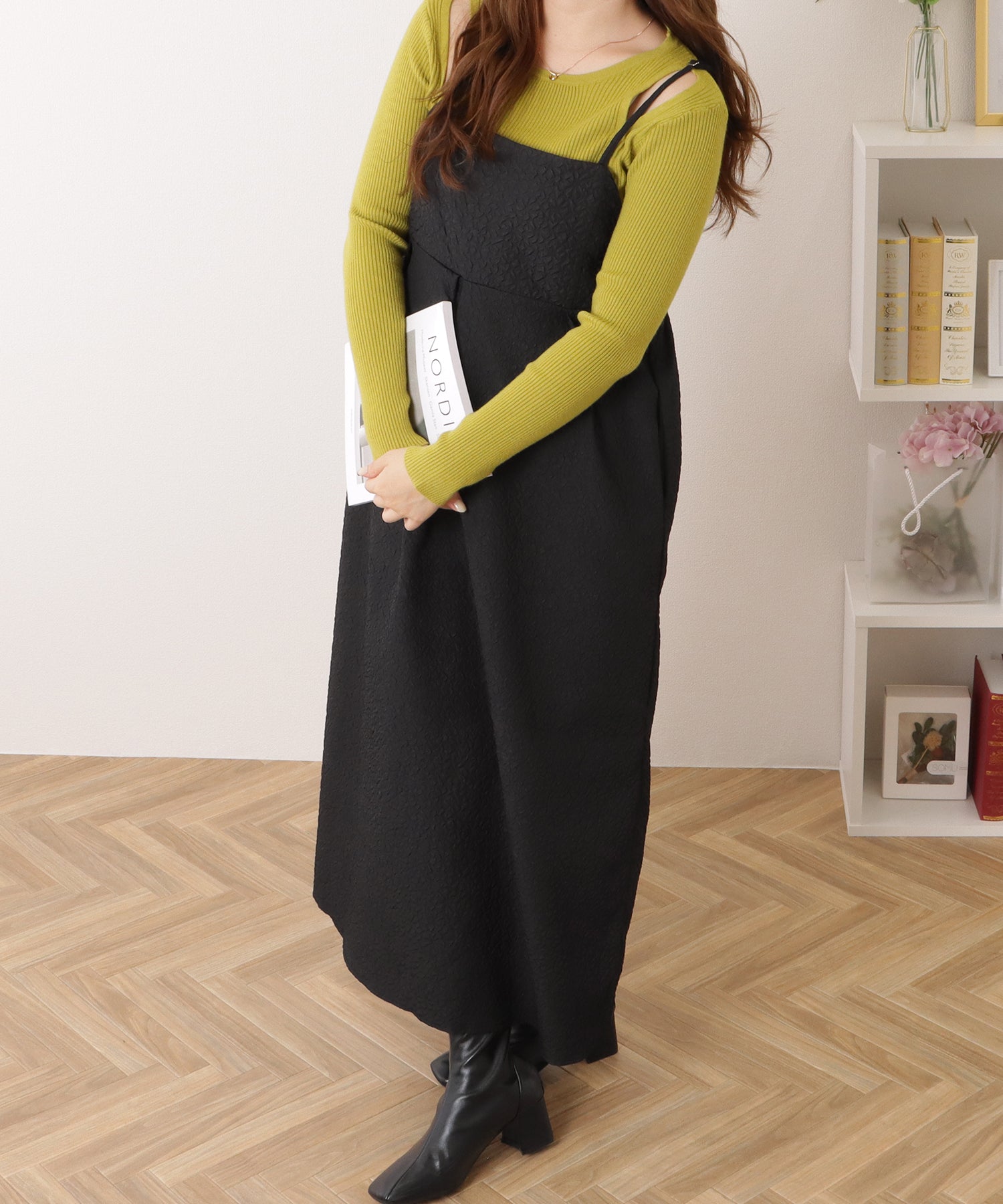 ふくれジャガード タック入り キャミソール ロング ワンピース