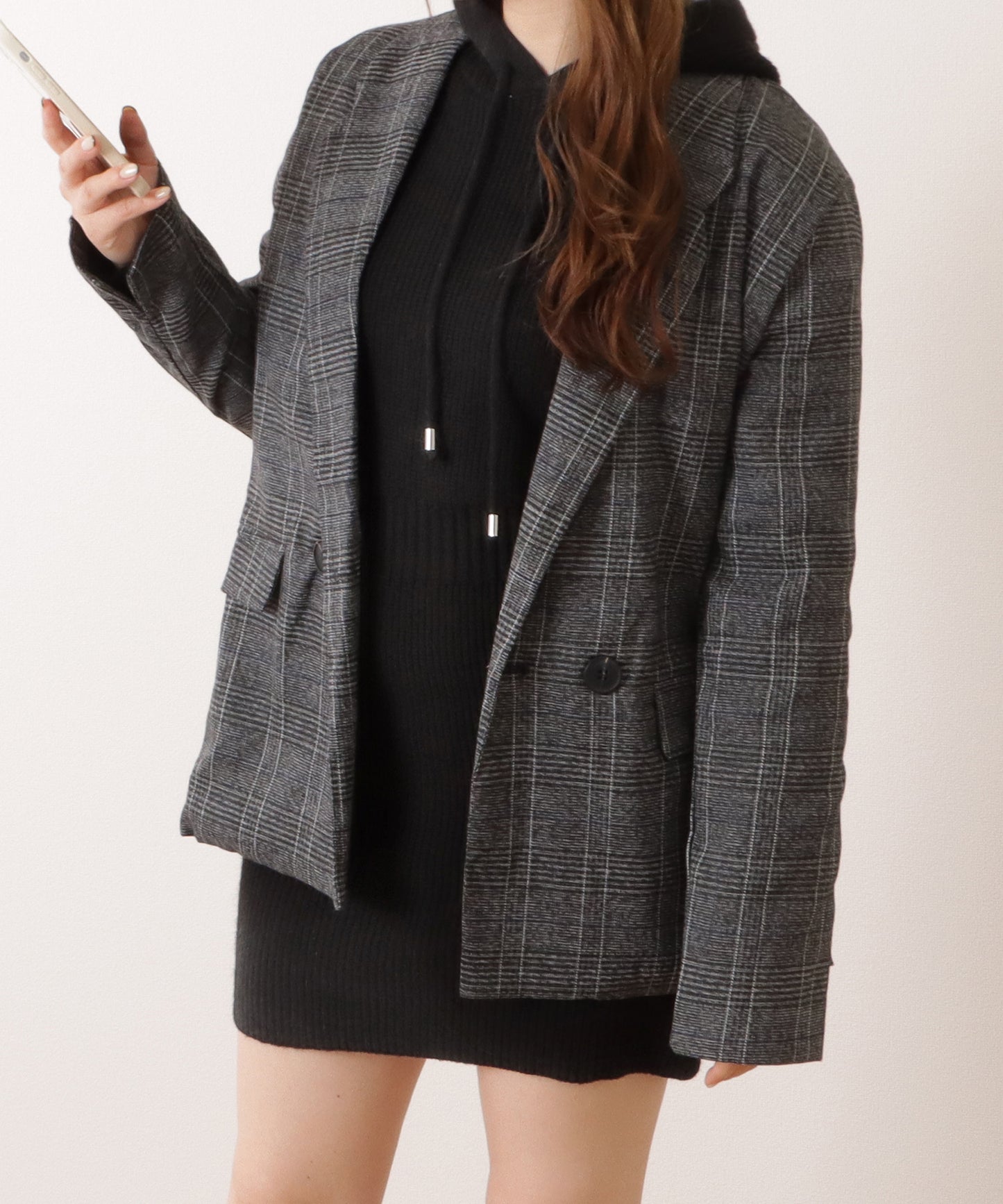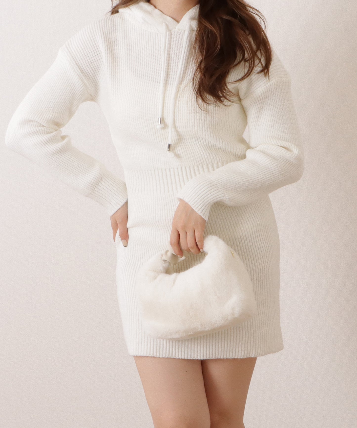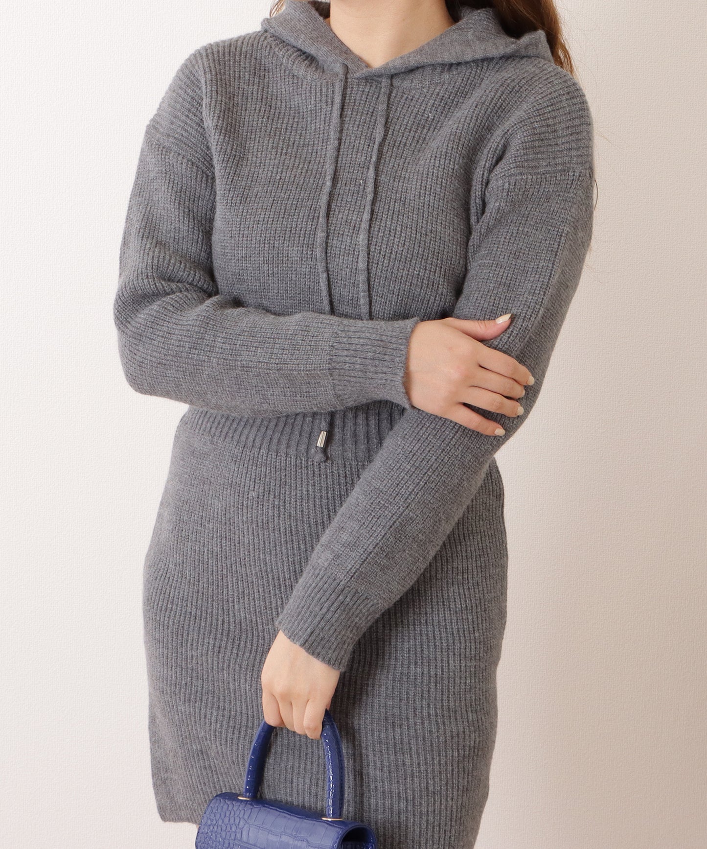ウエスト シェイプ リブ ニット フーディ ワンピース