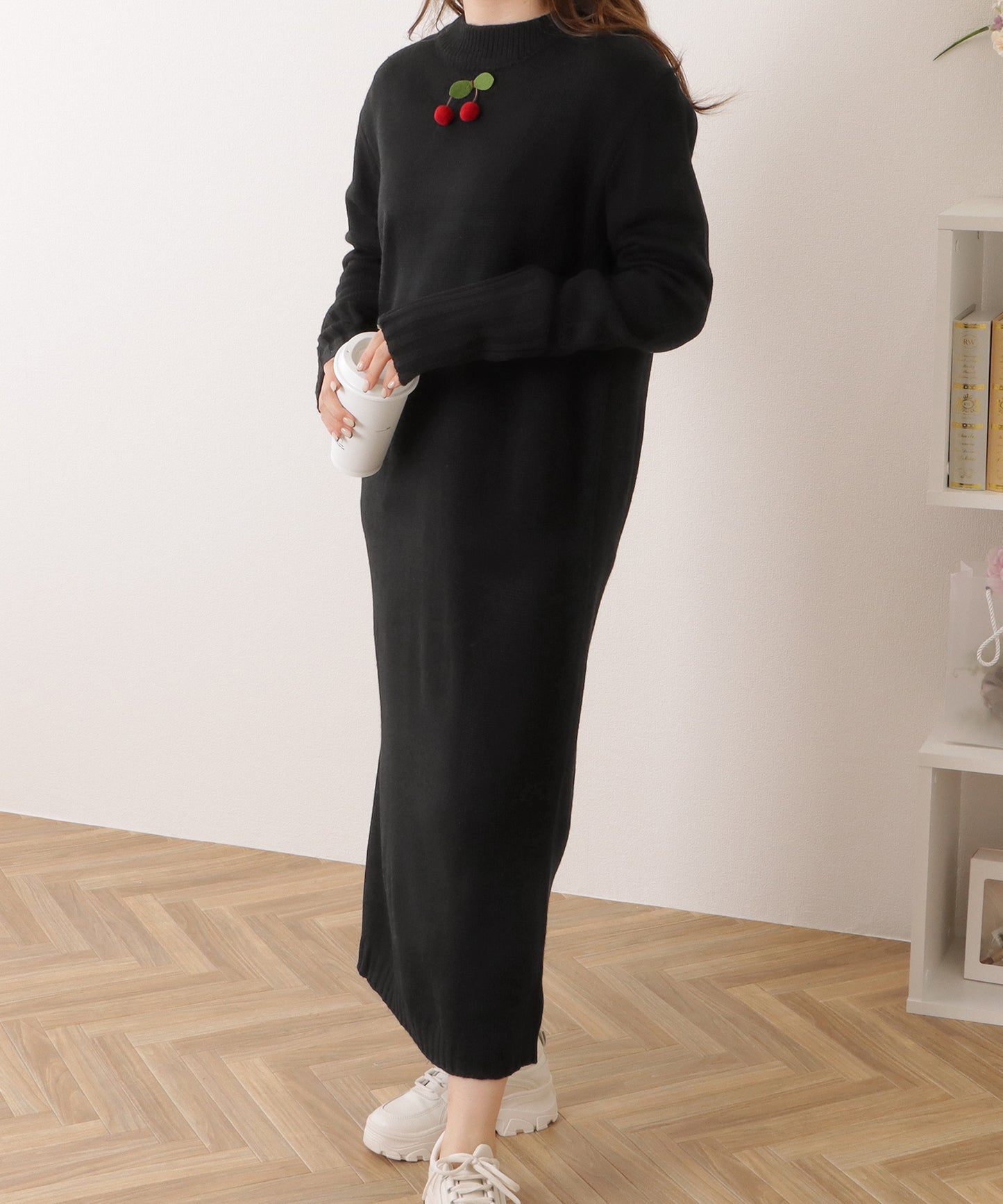 ウォーミーな素材感を際立たせる、シンプルなデザインでおつくりしたニットワンピース。
