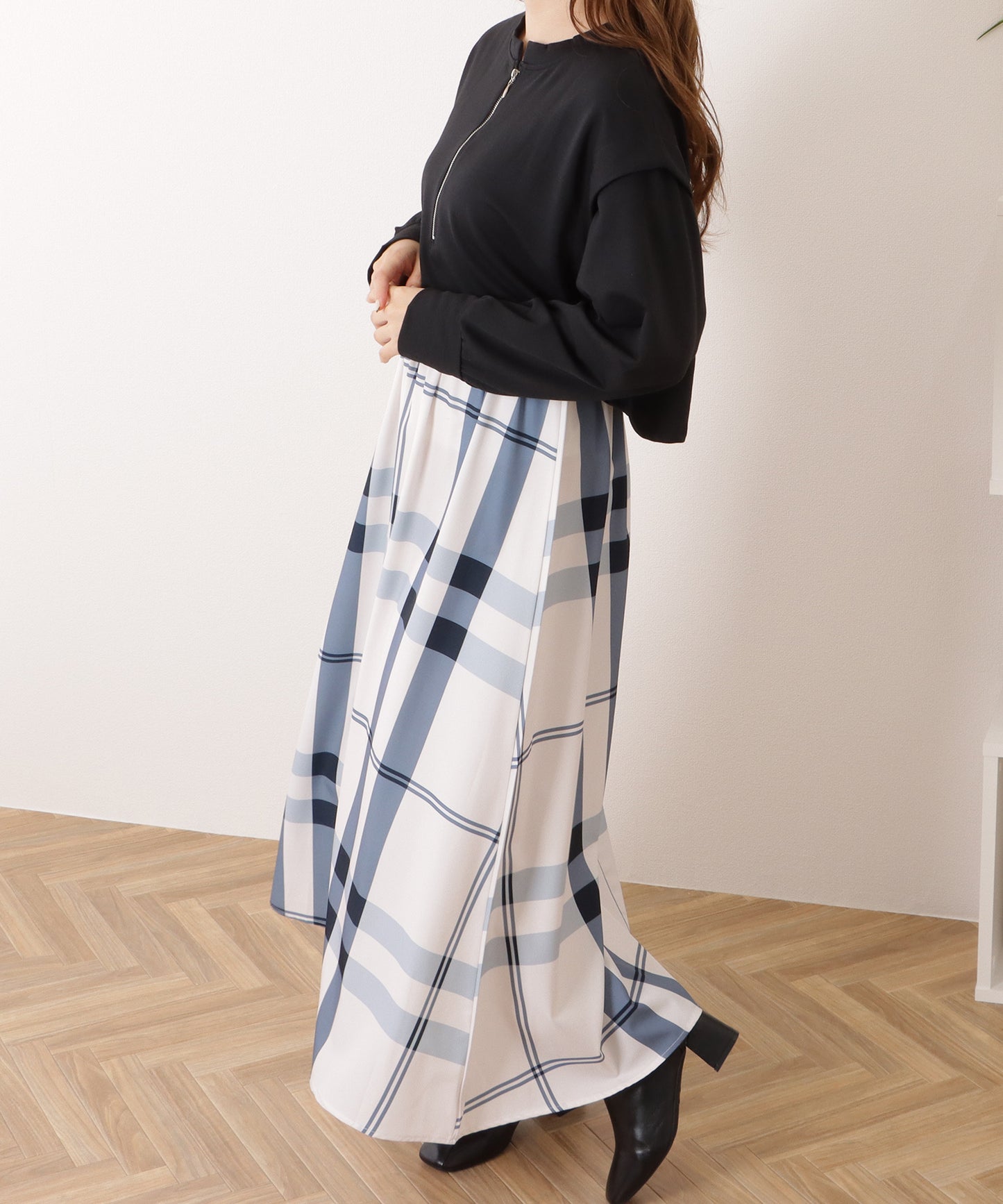 歩くたびに揺れ動くフレアシルエットで、軽やかな印象が魅力です。