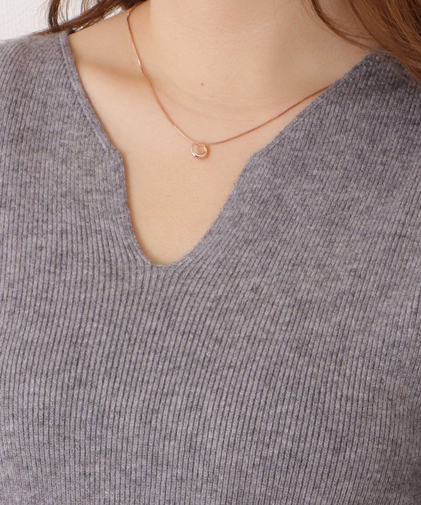 顔まわりをすっきりとしてくれるVネックは、今年らしく深めのカットを採用。