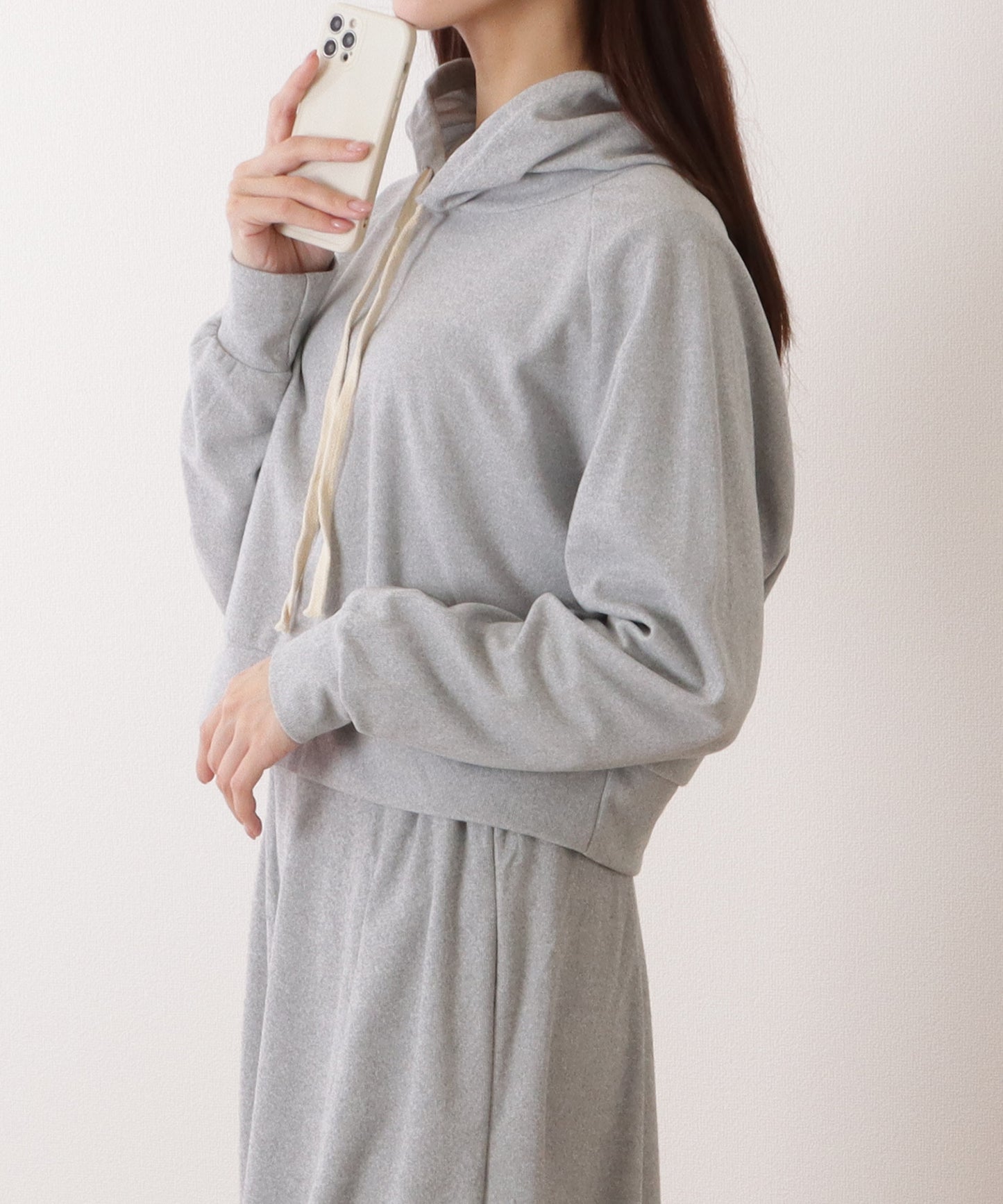 カジュアル定番のアイテムにトレンド感をプラスした、パーカーとロングスカートのセットアップです。