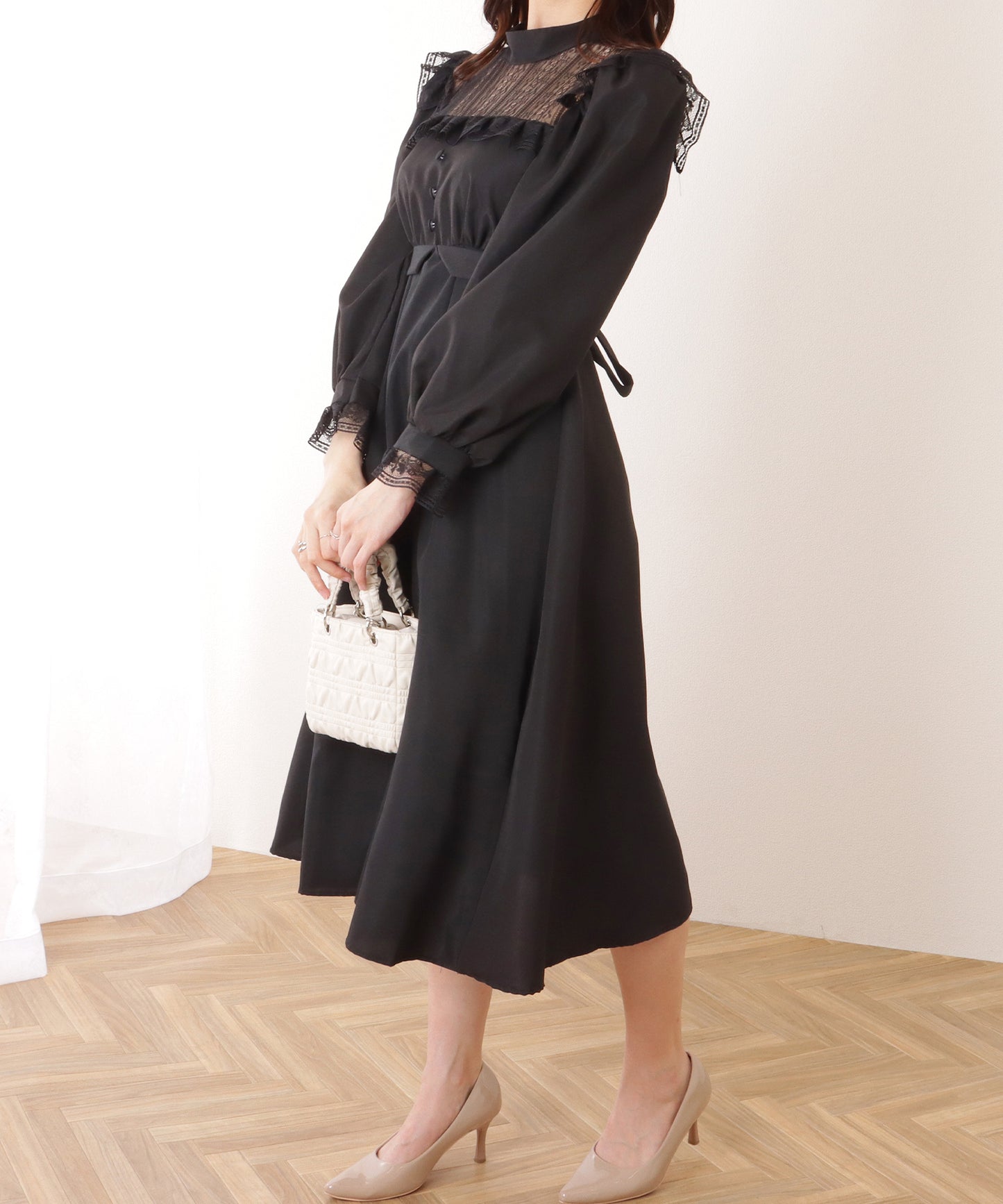 2way バックコンシャス レース 袖リボン レイヤード ドレス
