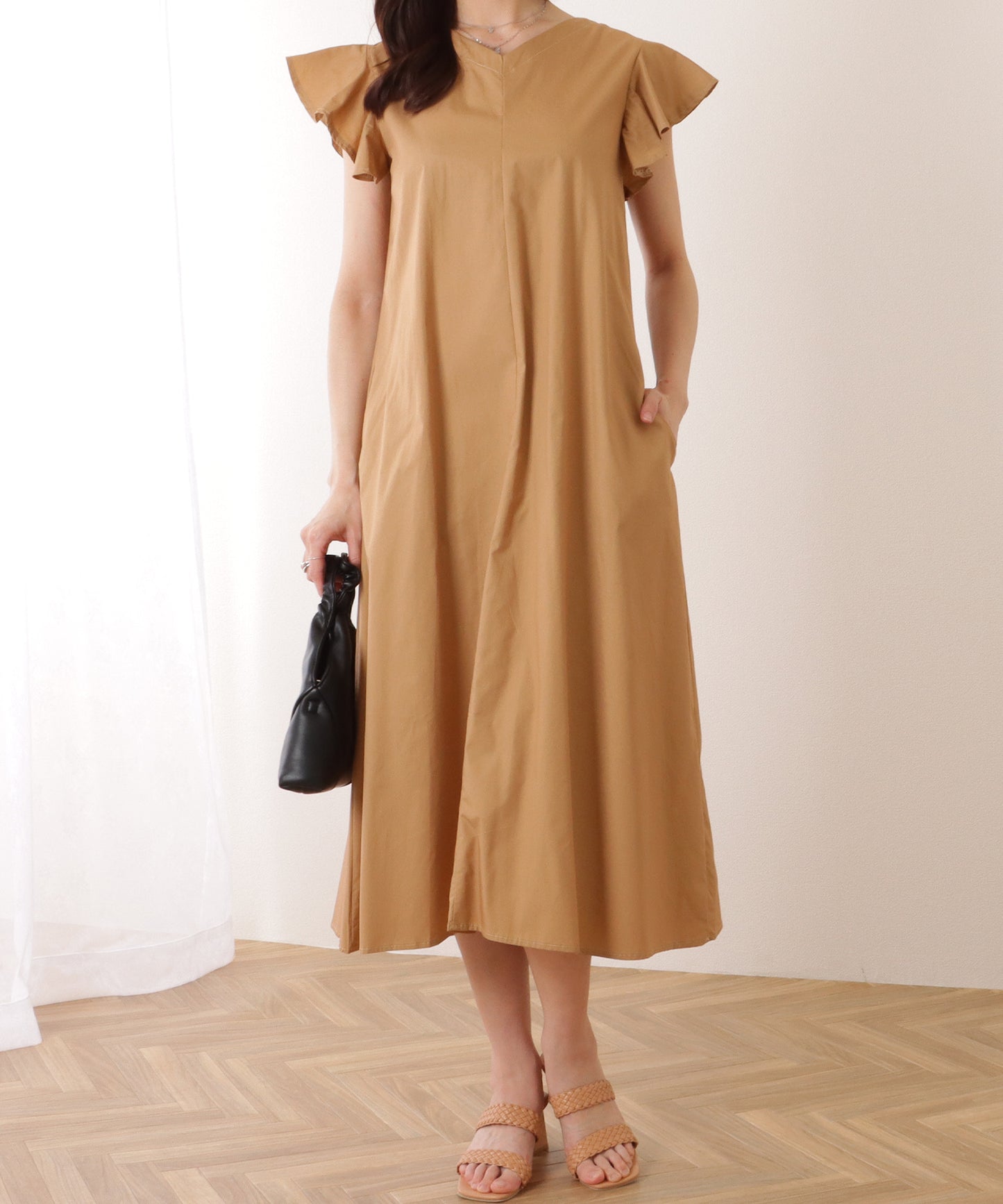 ボディラインを拾わない、ゆったりとしたワンピース。