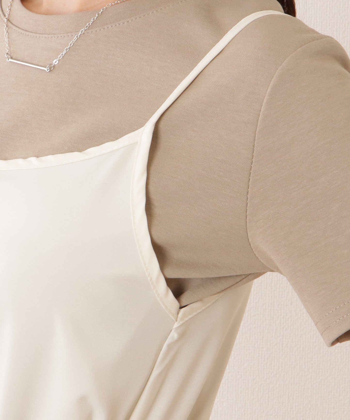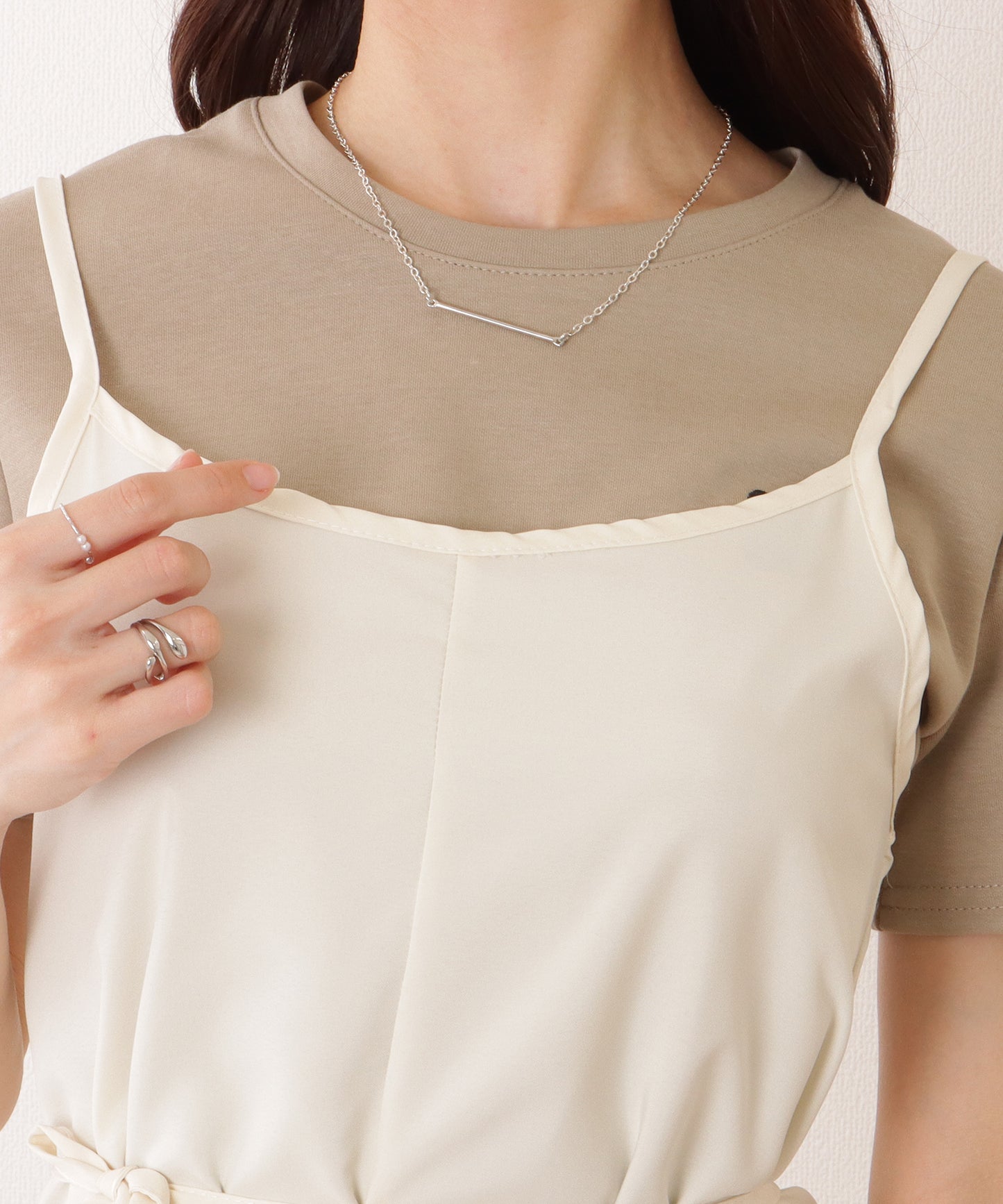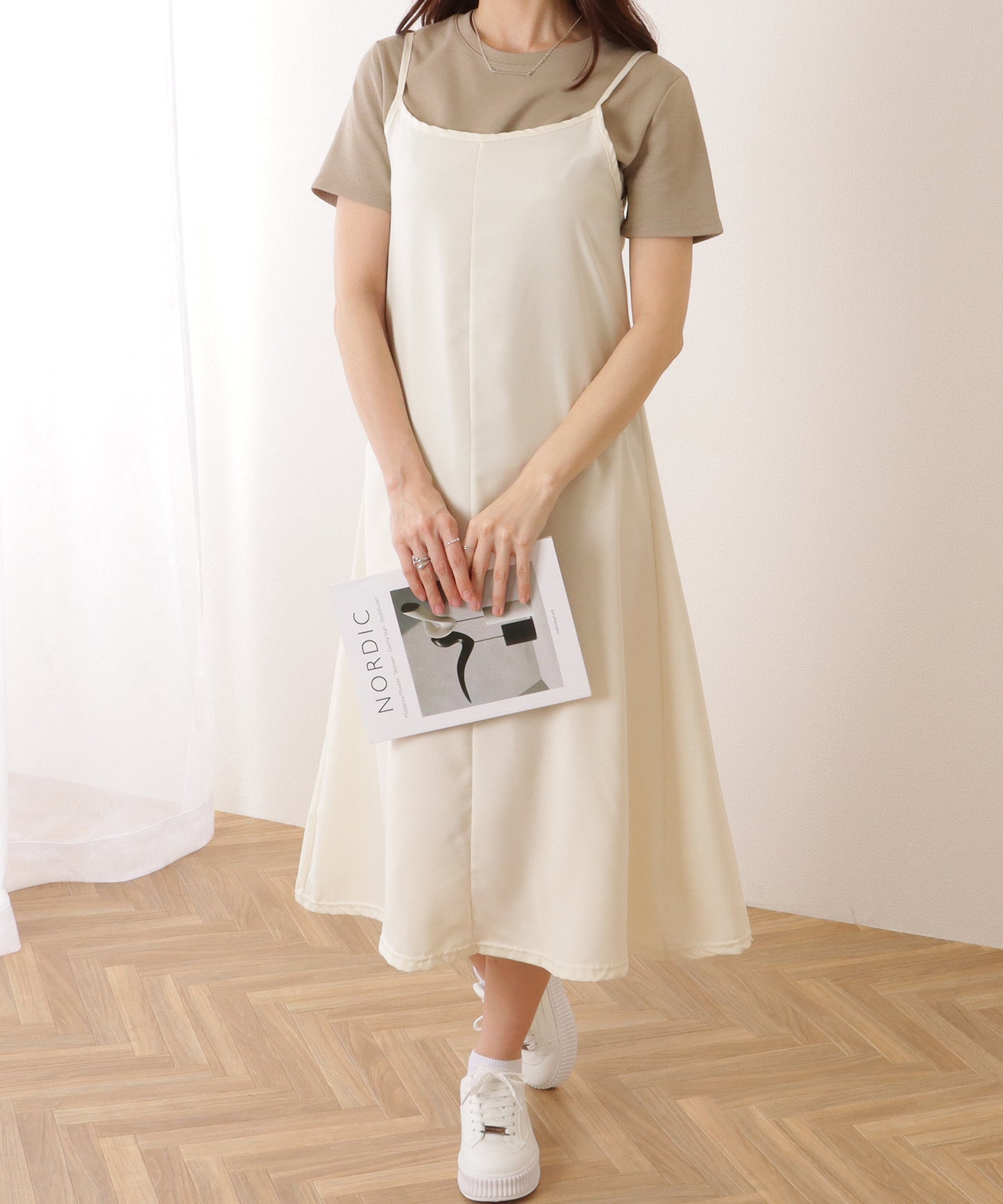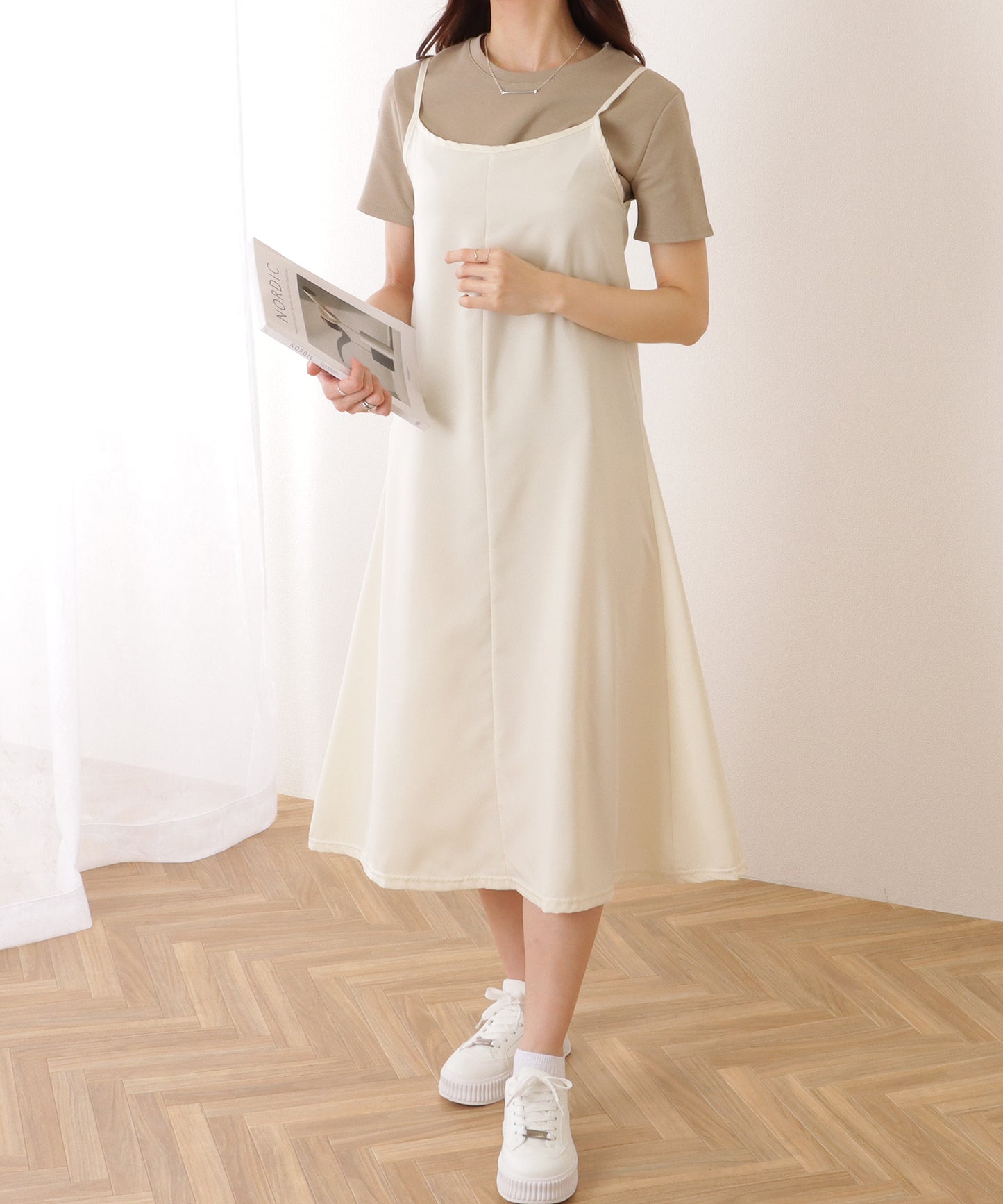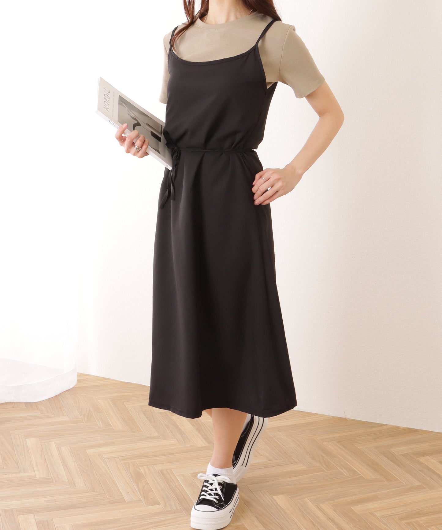 ソリッドカラー ウエストリボン キャミソール ワンピース