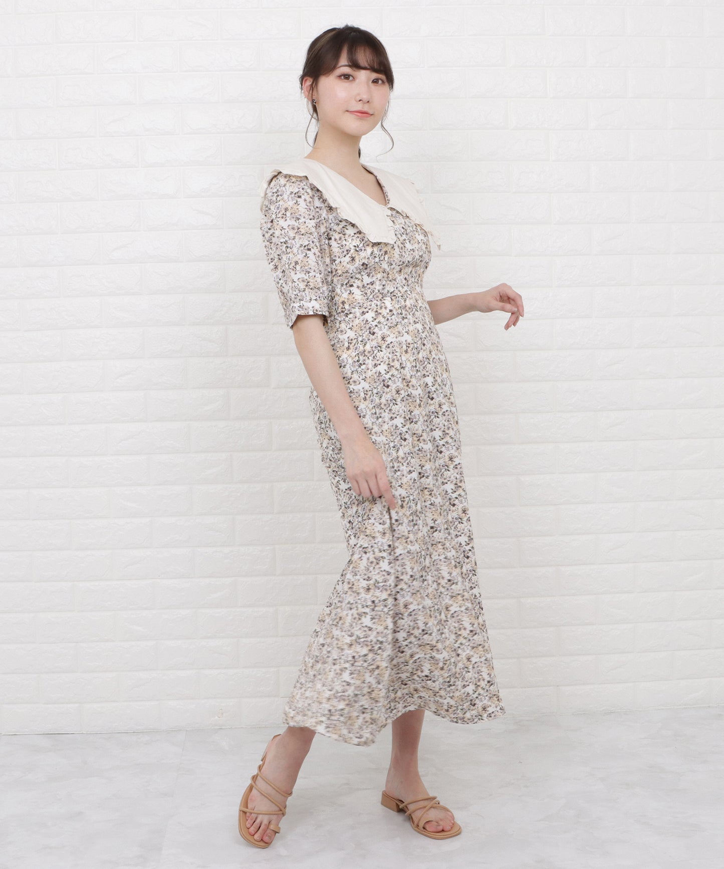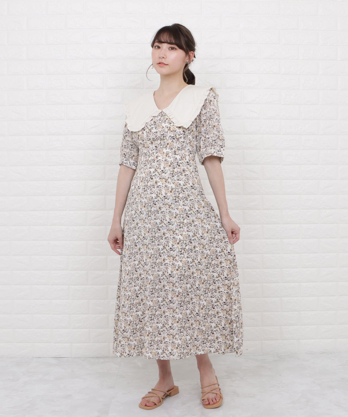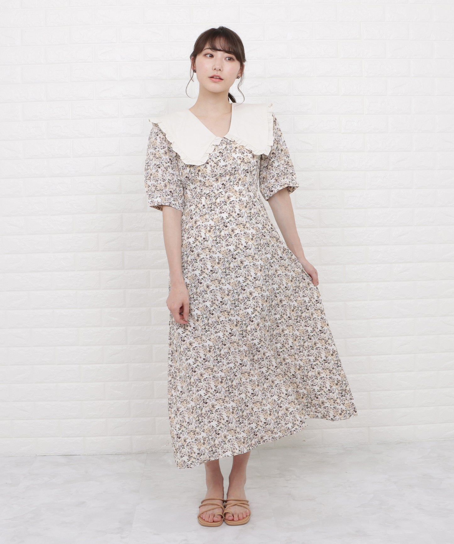 ビッグカラー × 小花柄がレトロ可愛いロングワンピース