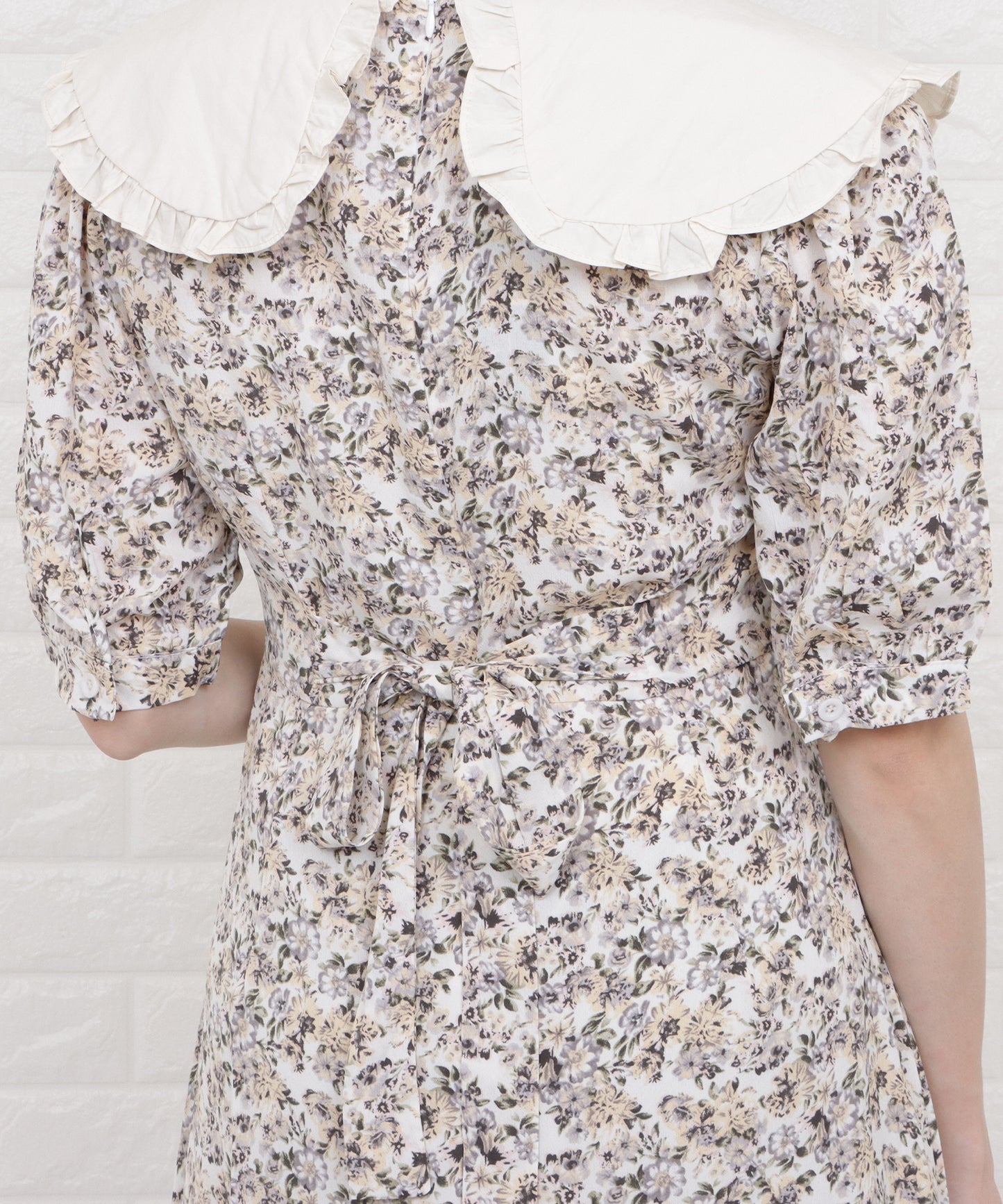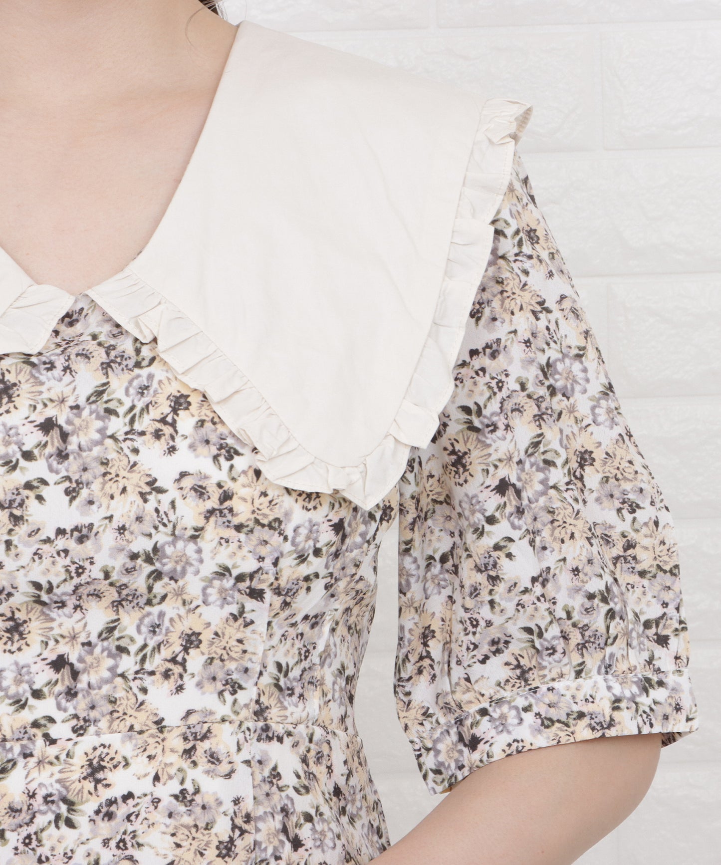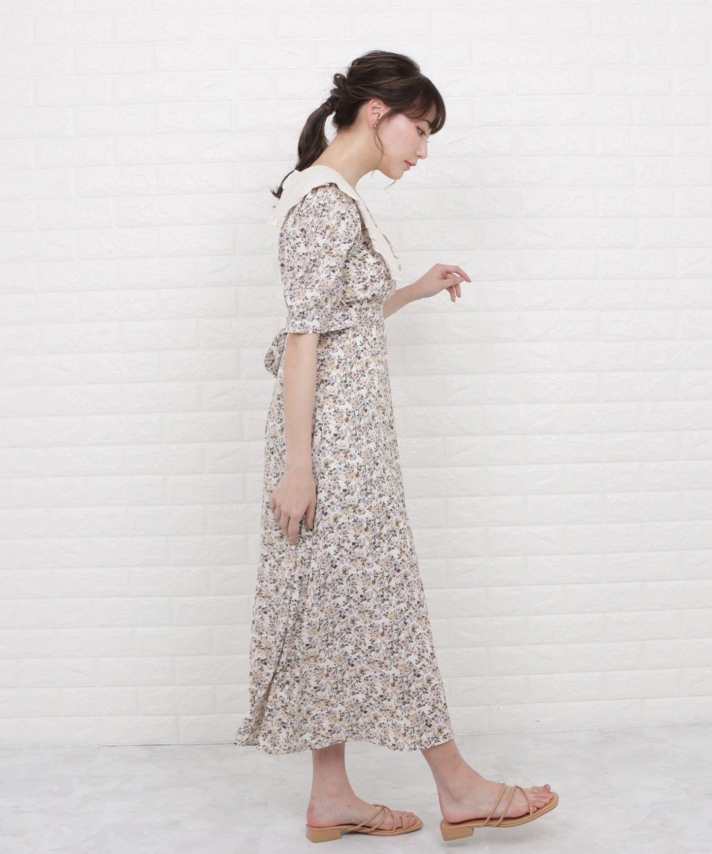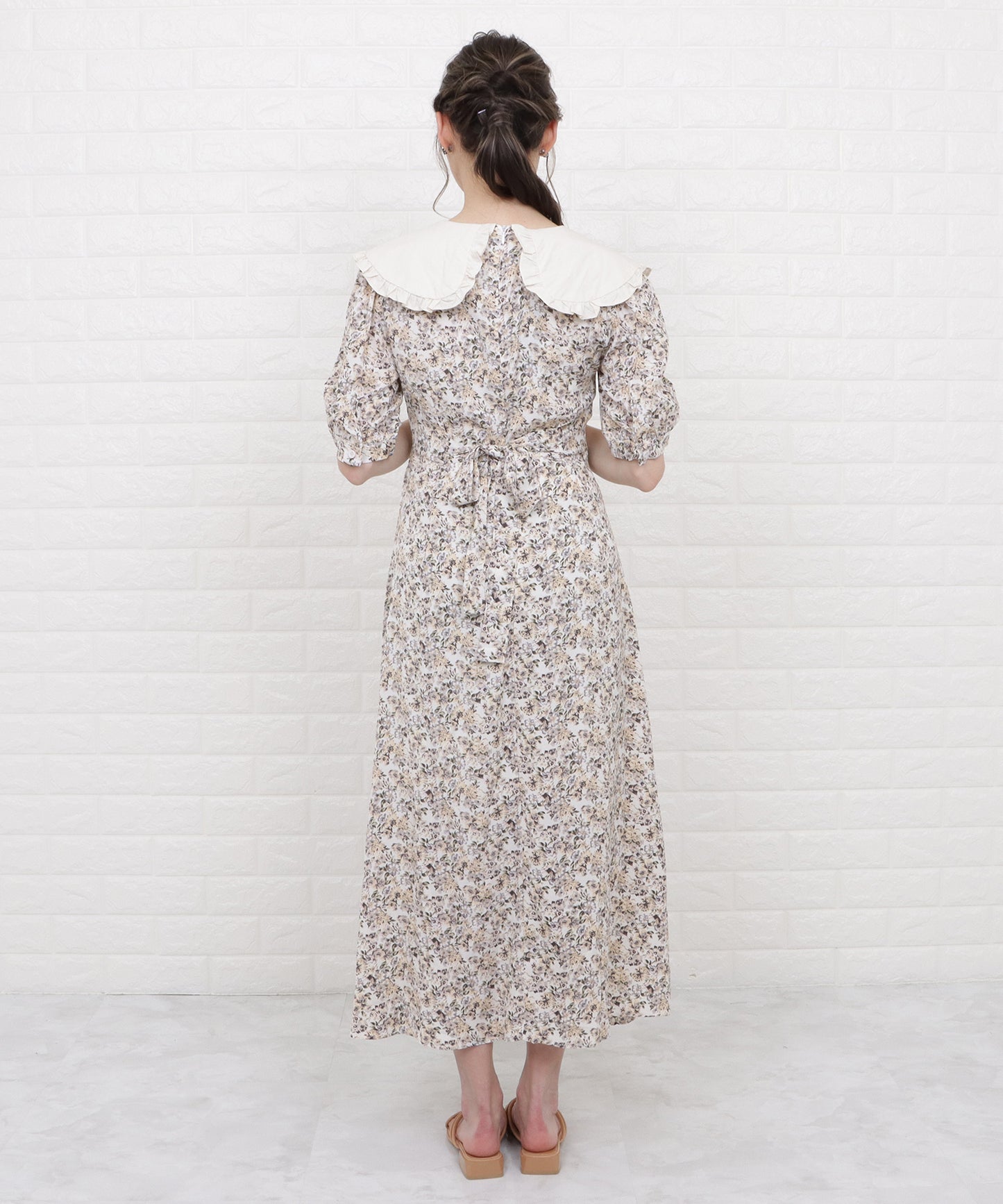ビッグカラー × 小花柄がレトロ可愛いロングワンピース