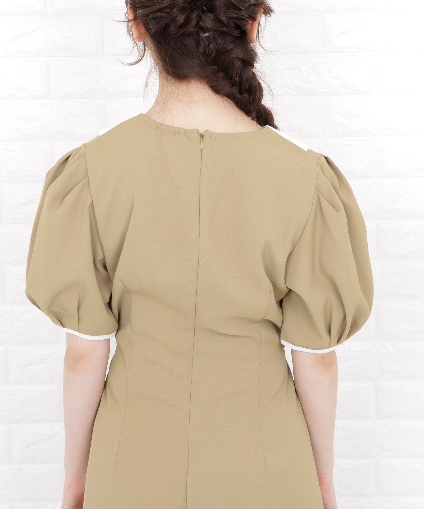 袖はボリュームのあるパフスリーブでトレンド感をプラス。
