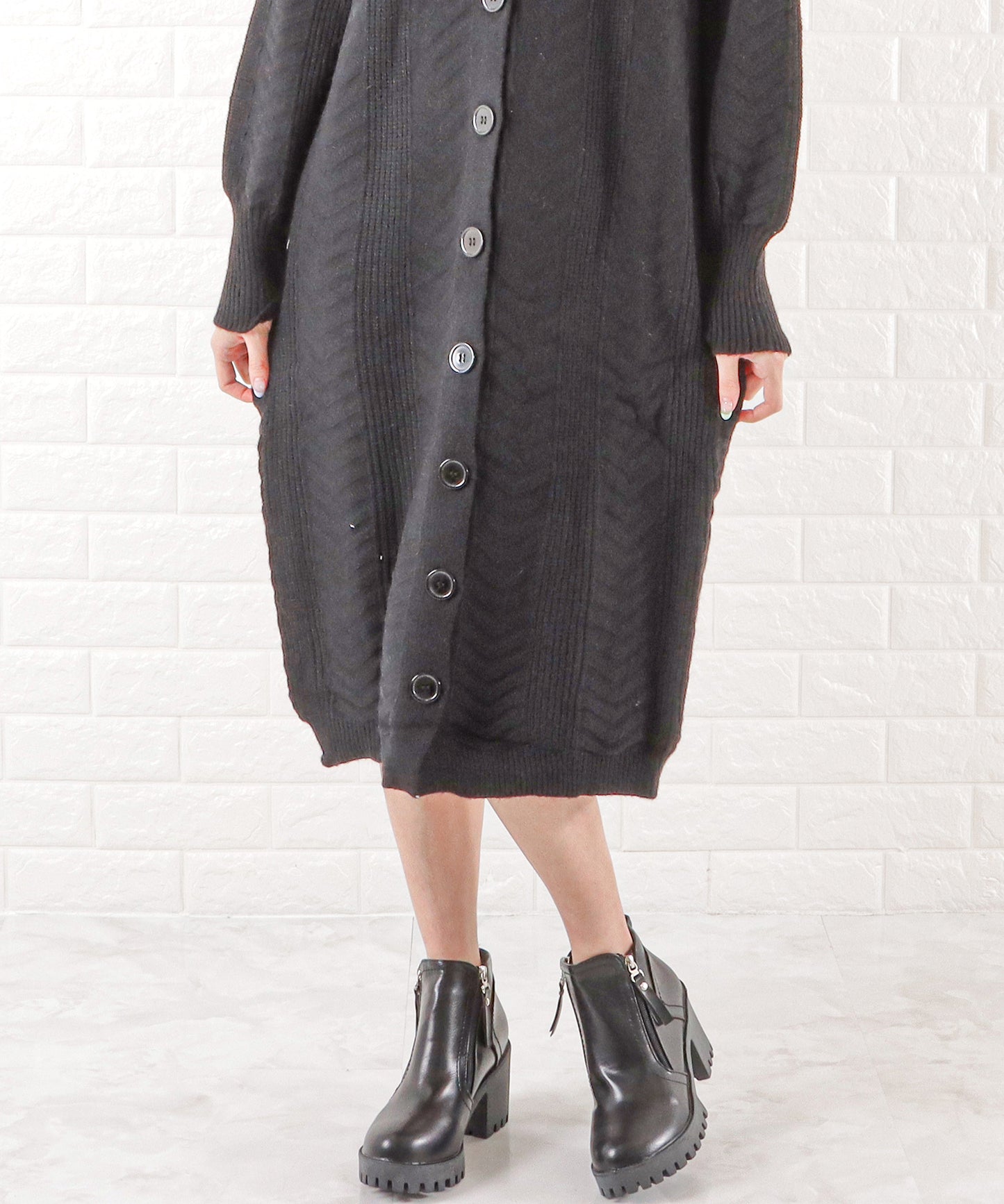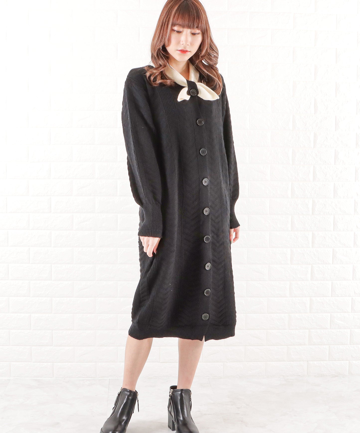ボウタイリボンがレトロでガーリーな印象のニットワンピース。