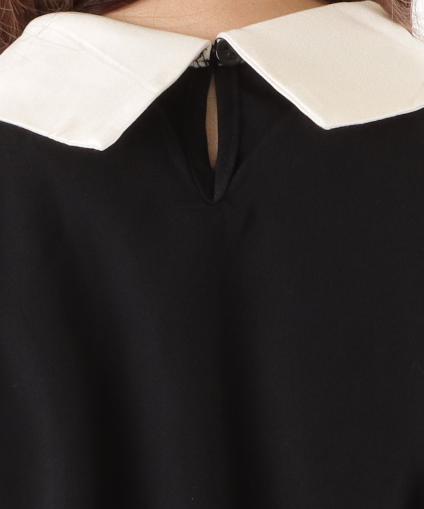 アシンメトリーな襟が目を惹くワンピース