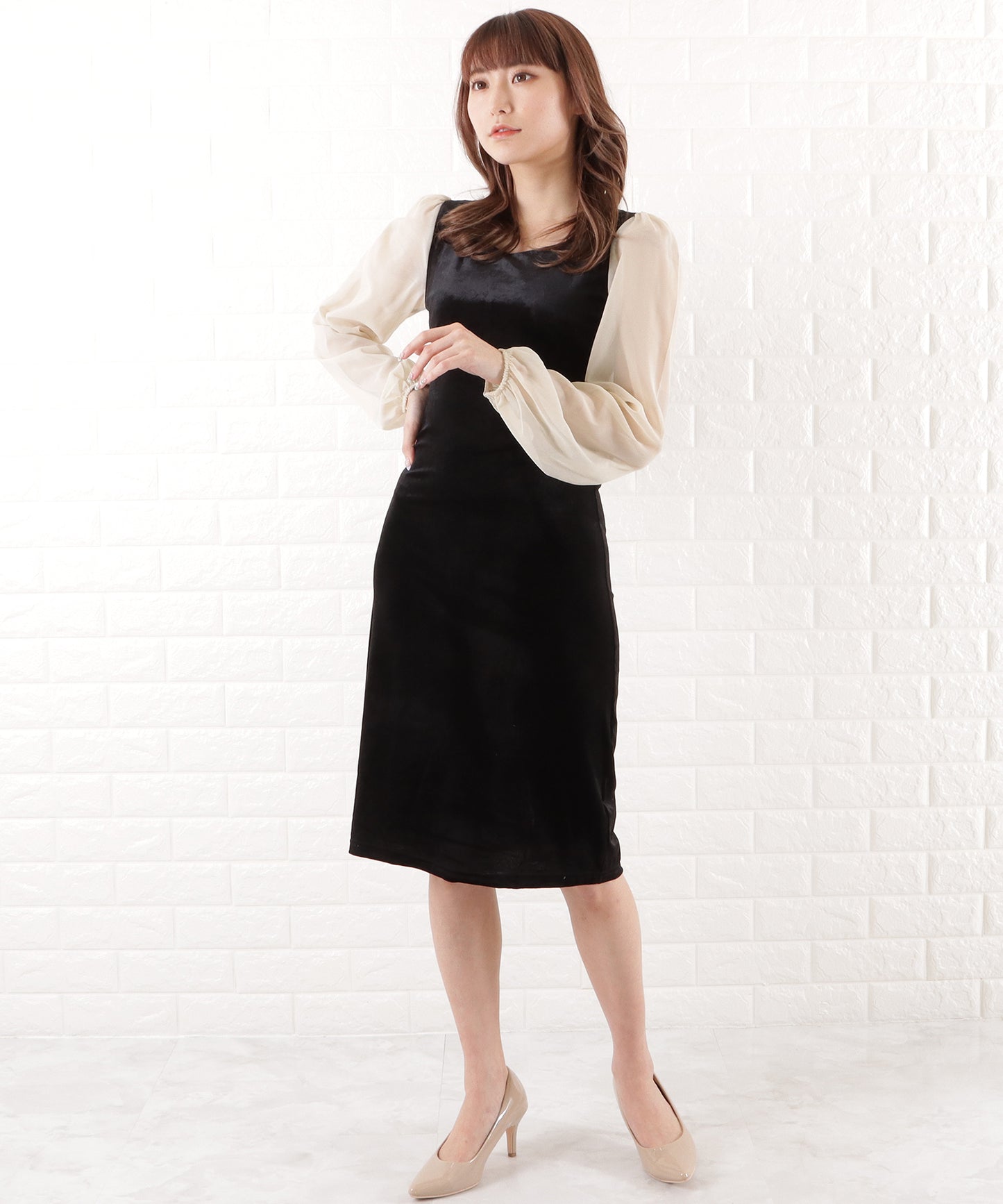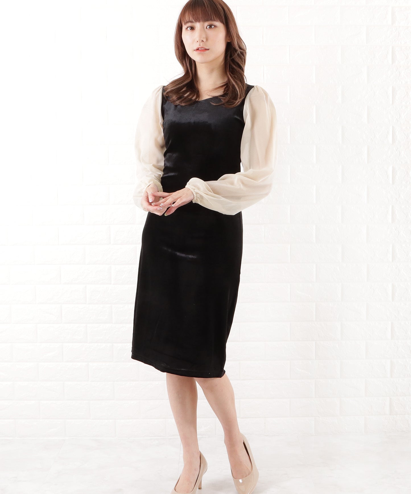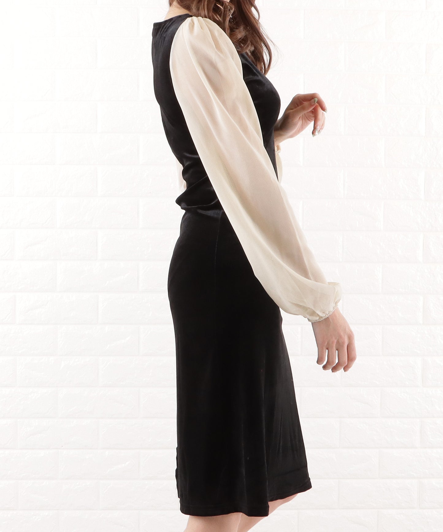 シアー袖タイトロングワンピース