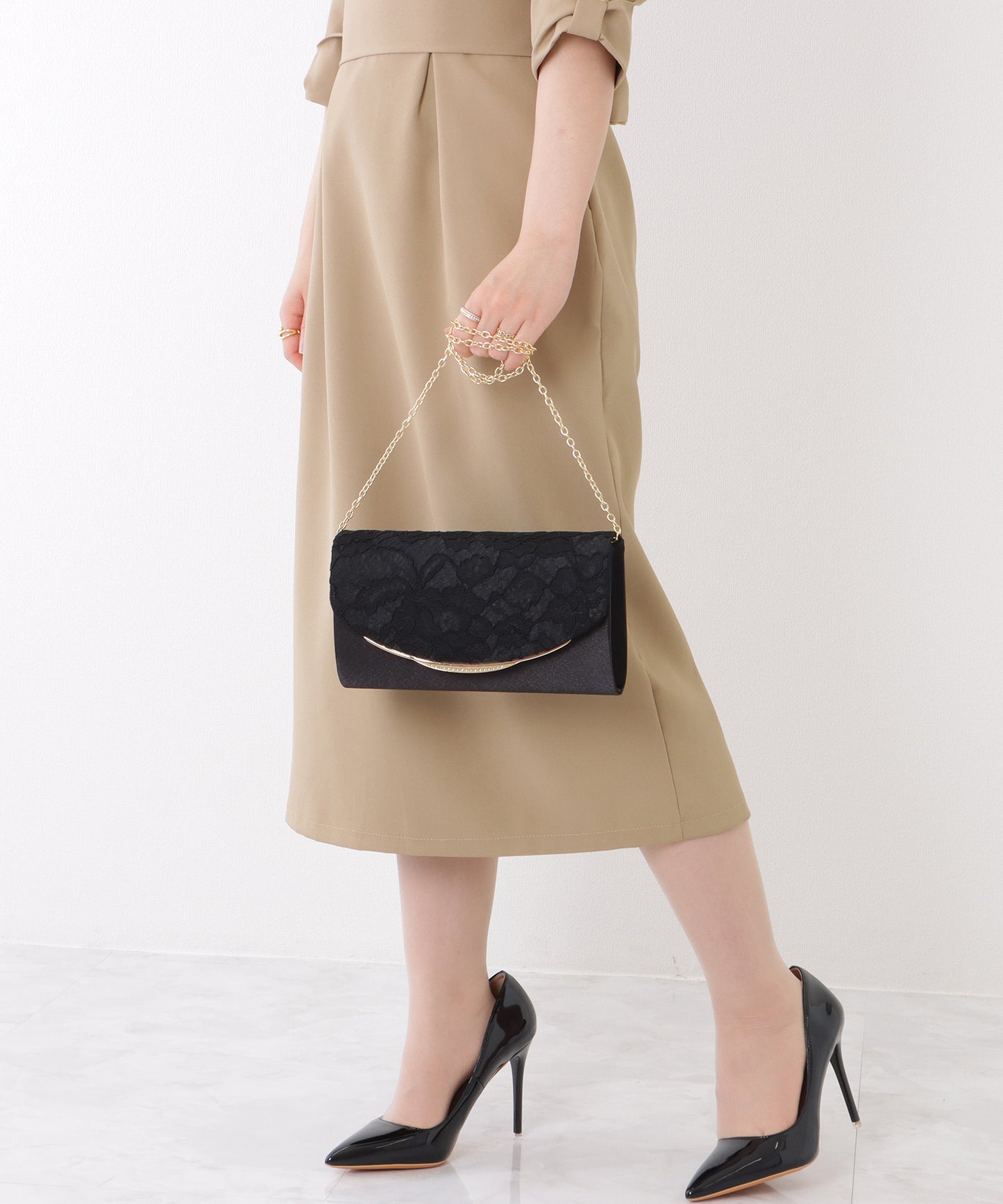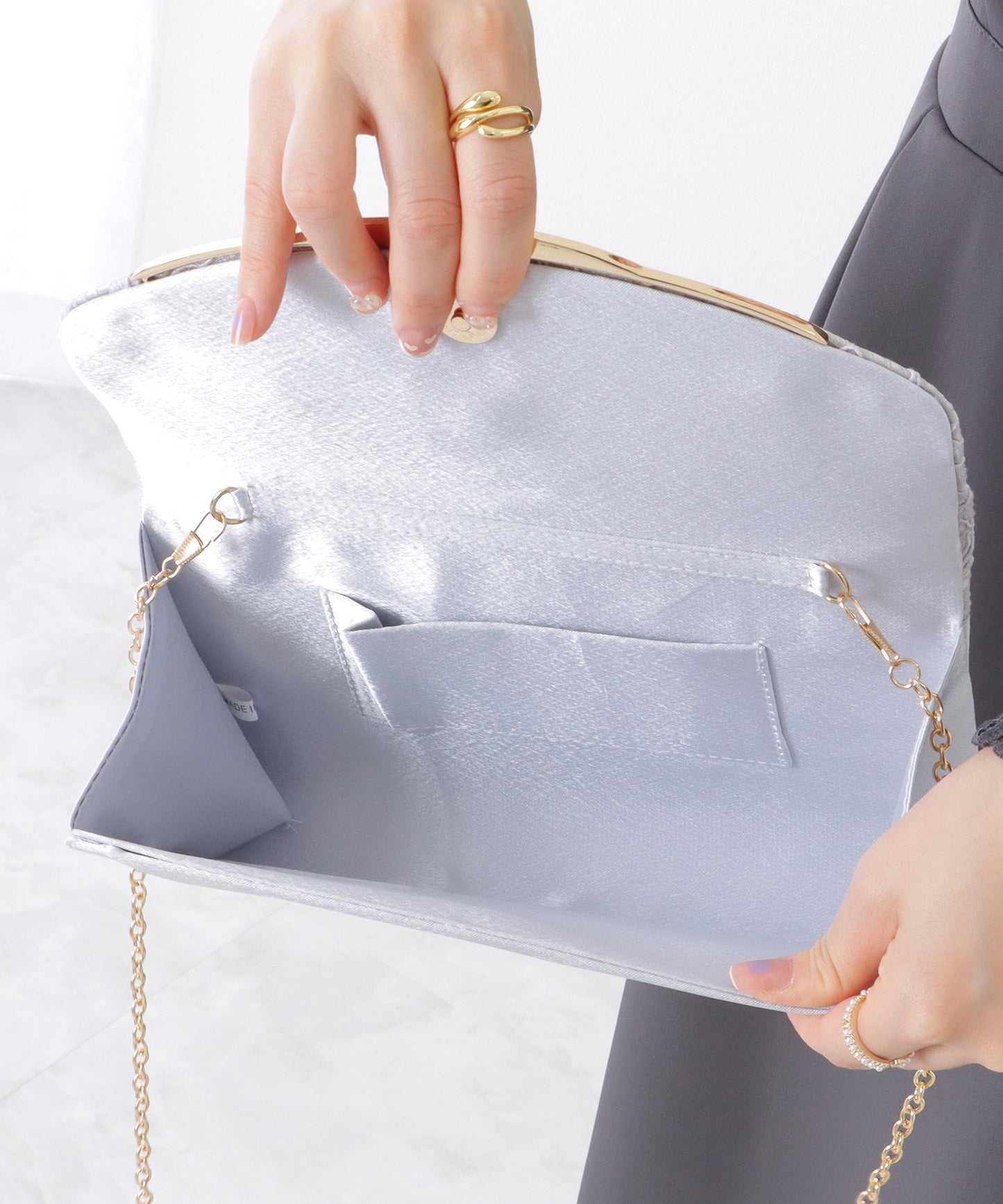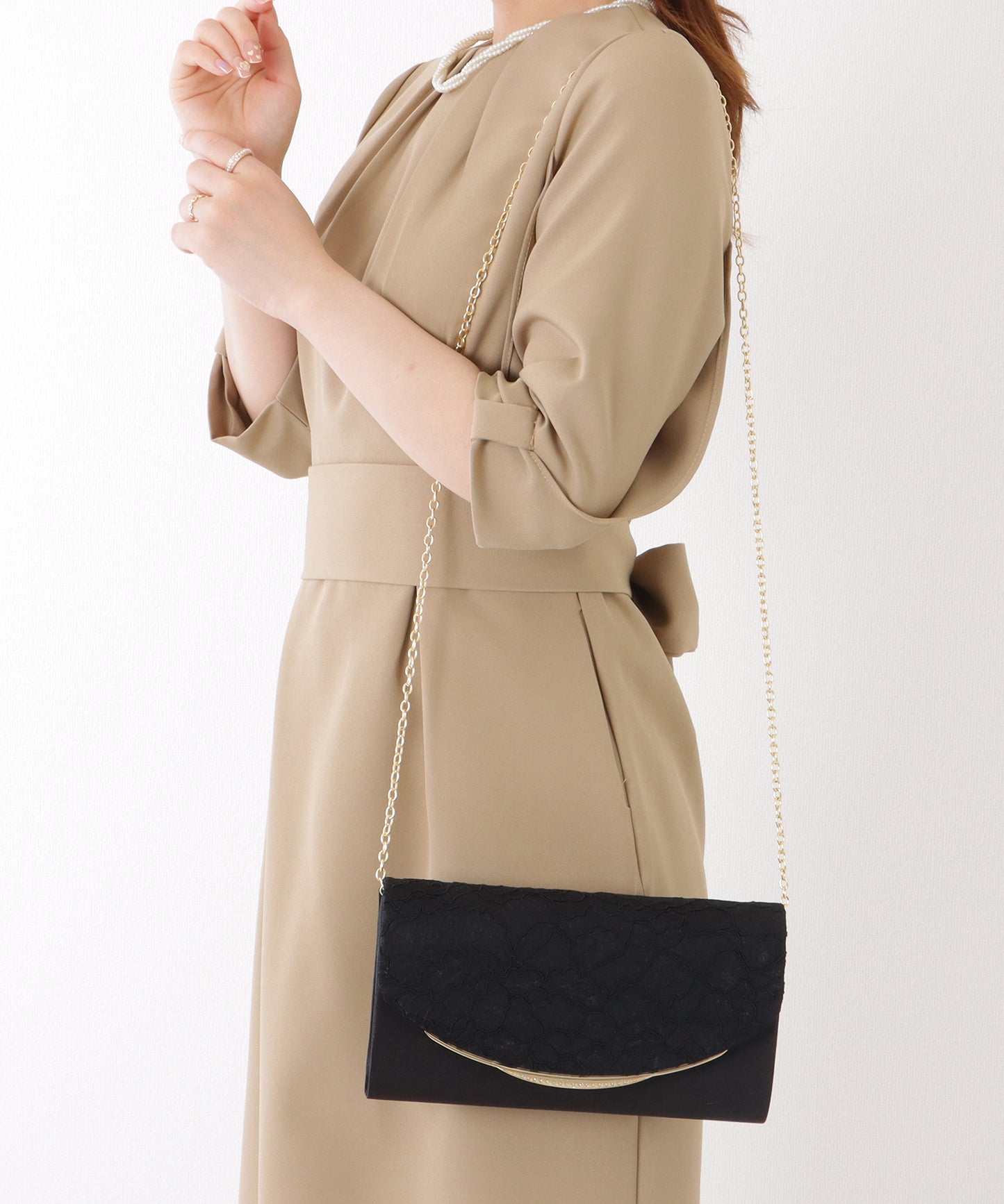 チェーン部分は中に入れることができるので、その日の装いに合わせて持ち方をアレンジできる、クラッチ×ショルダーの2WAY仕様となっています。