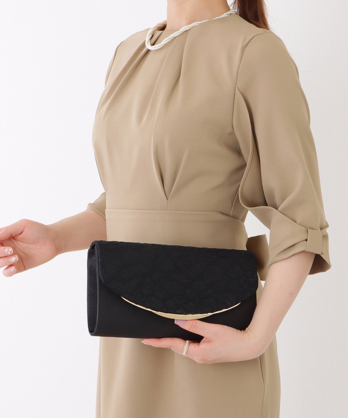 結婚式などのパーティーにはもちろん、スーツスタイルにも相性が良いので、七五三や卒入学などのセレモニーシーンにもお使いいただけます。